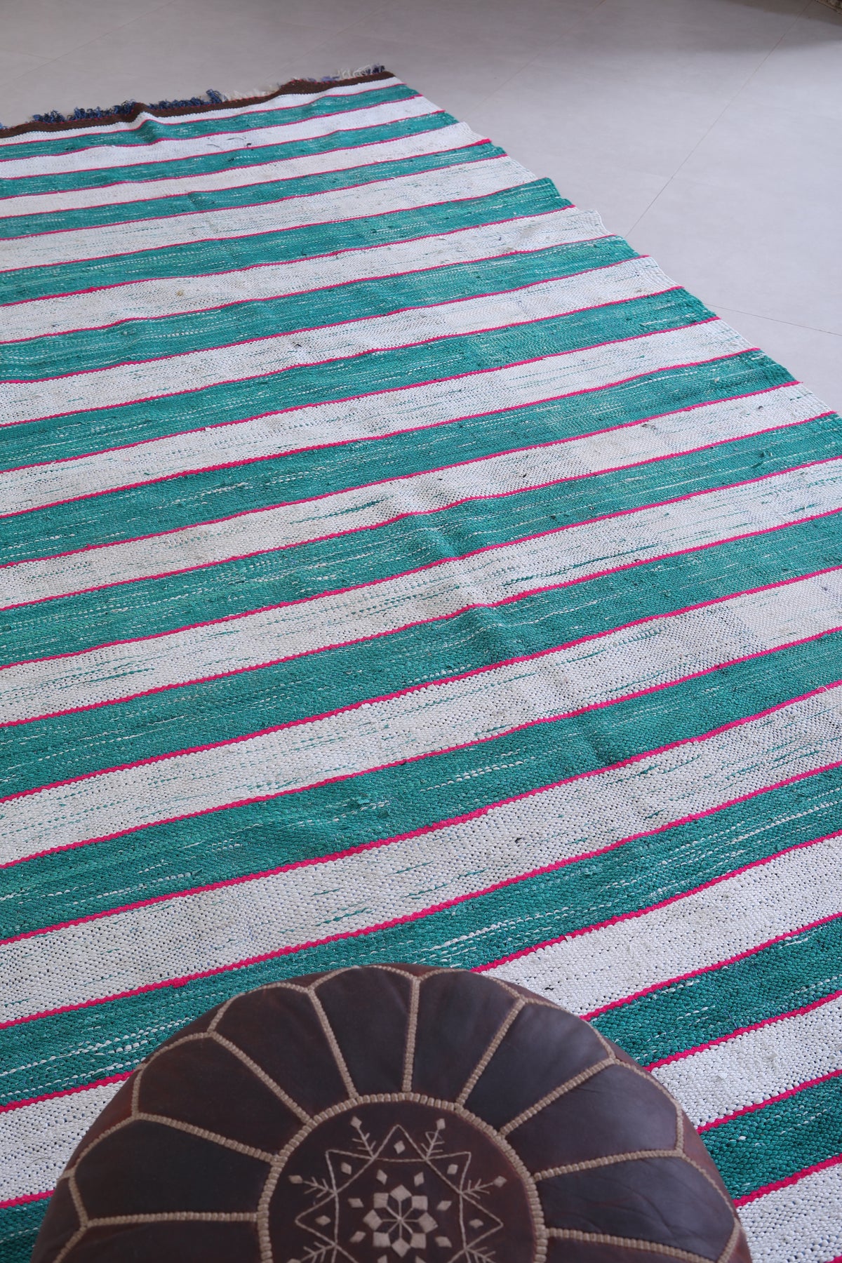 • Handwoven in Morocco using traditional flatweave Kilim techniques