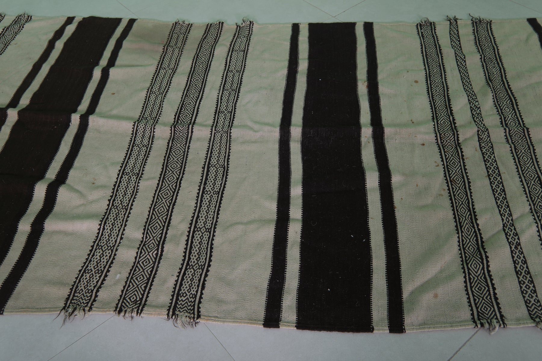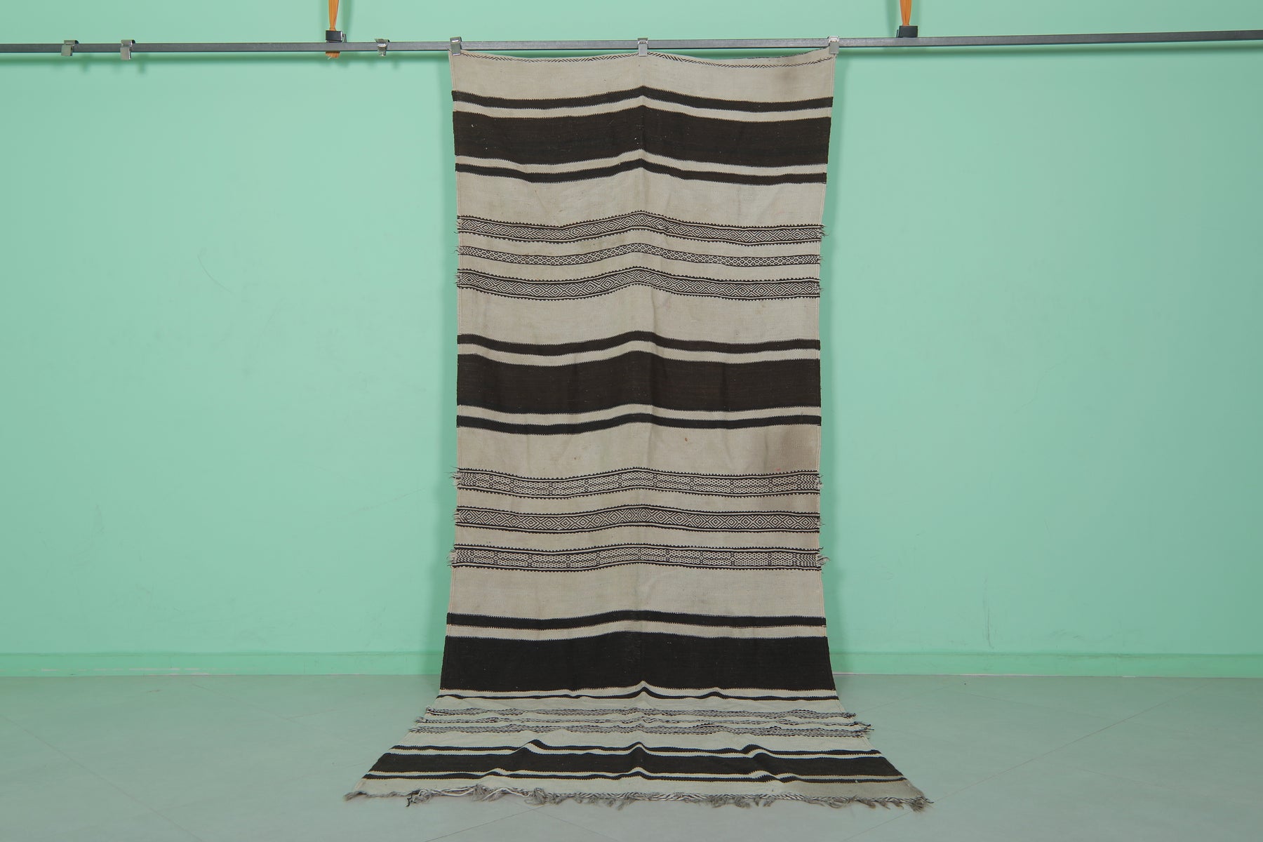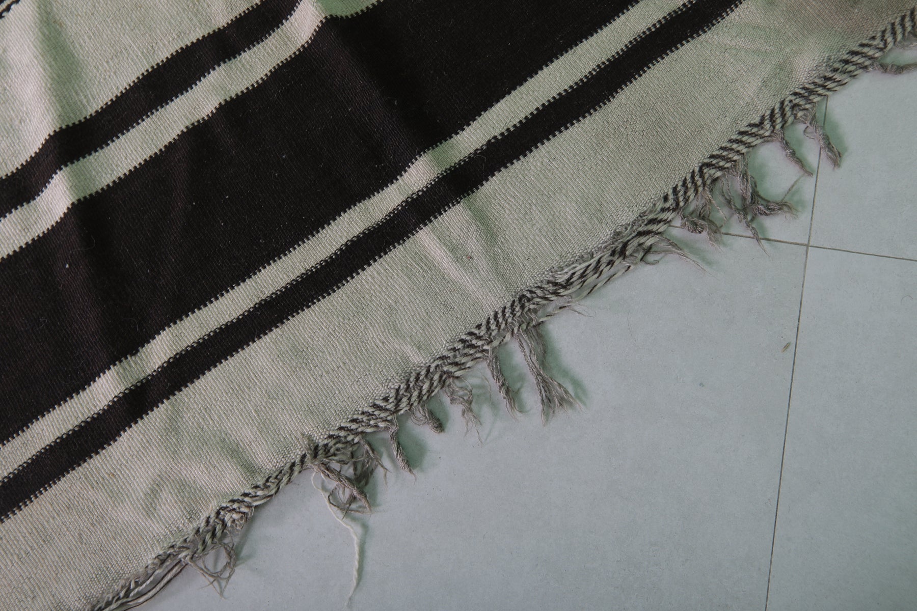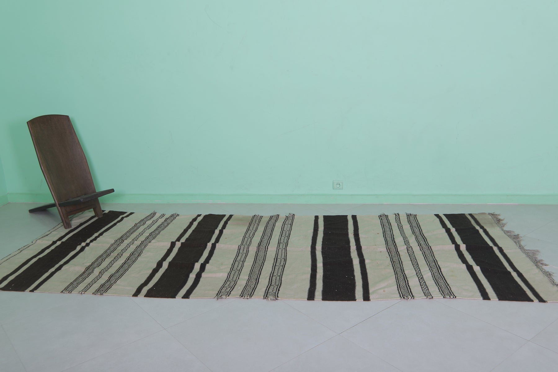 This 4.3 x 11 feet Striped Moroccan Kilim rug is a beautifully handwoven hallway runner featuring bold black and cream horizontal stripes. With a clean, elongated design rooted in Berber tradition, it adds both warmth and visual flow to hallways, corridors, or narrow living spaces.