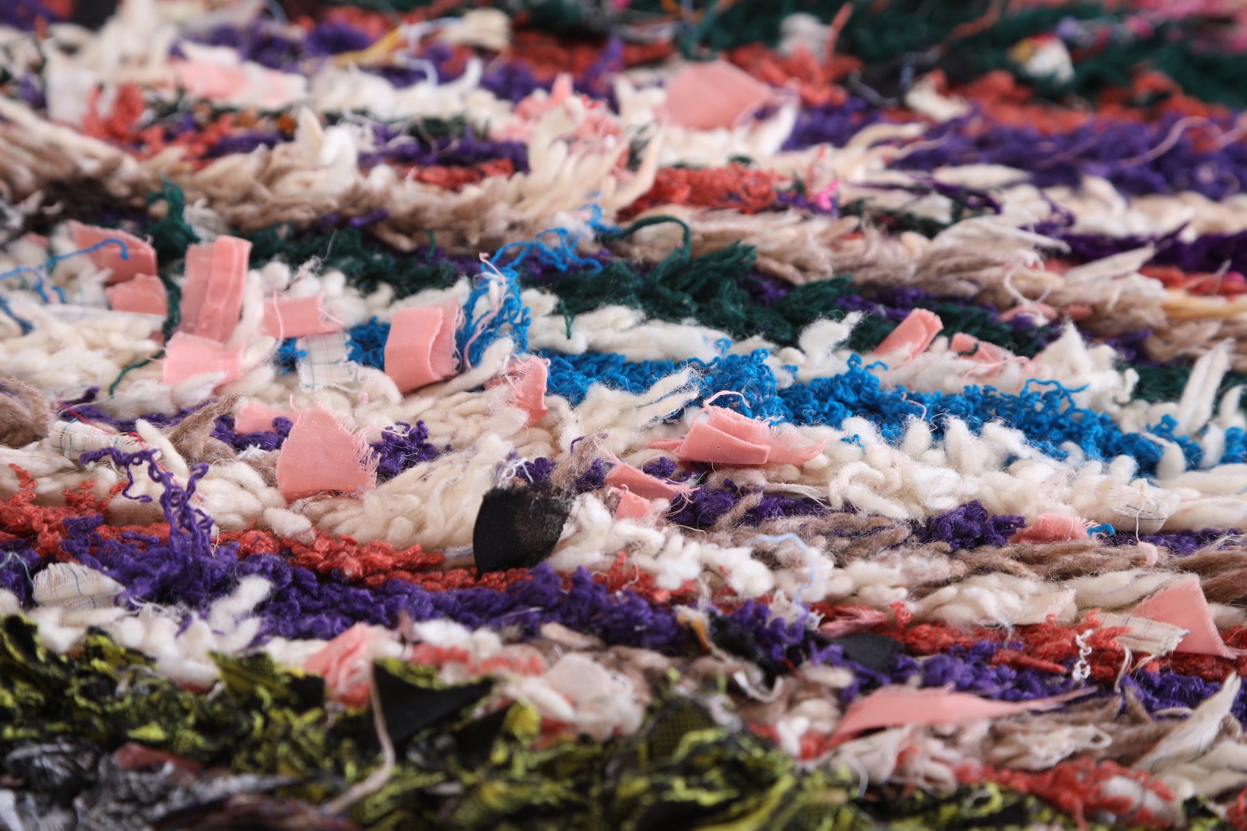 Add texture and color to your space with this Striped Moroccan Shag Rug (2 x 5.6 FT), a cozy handmade runner featuring layers of bold horizontal stripes and plush high-pile softness.