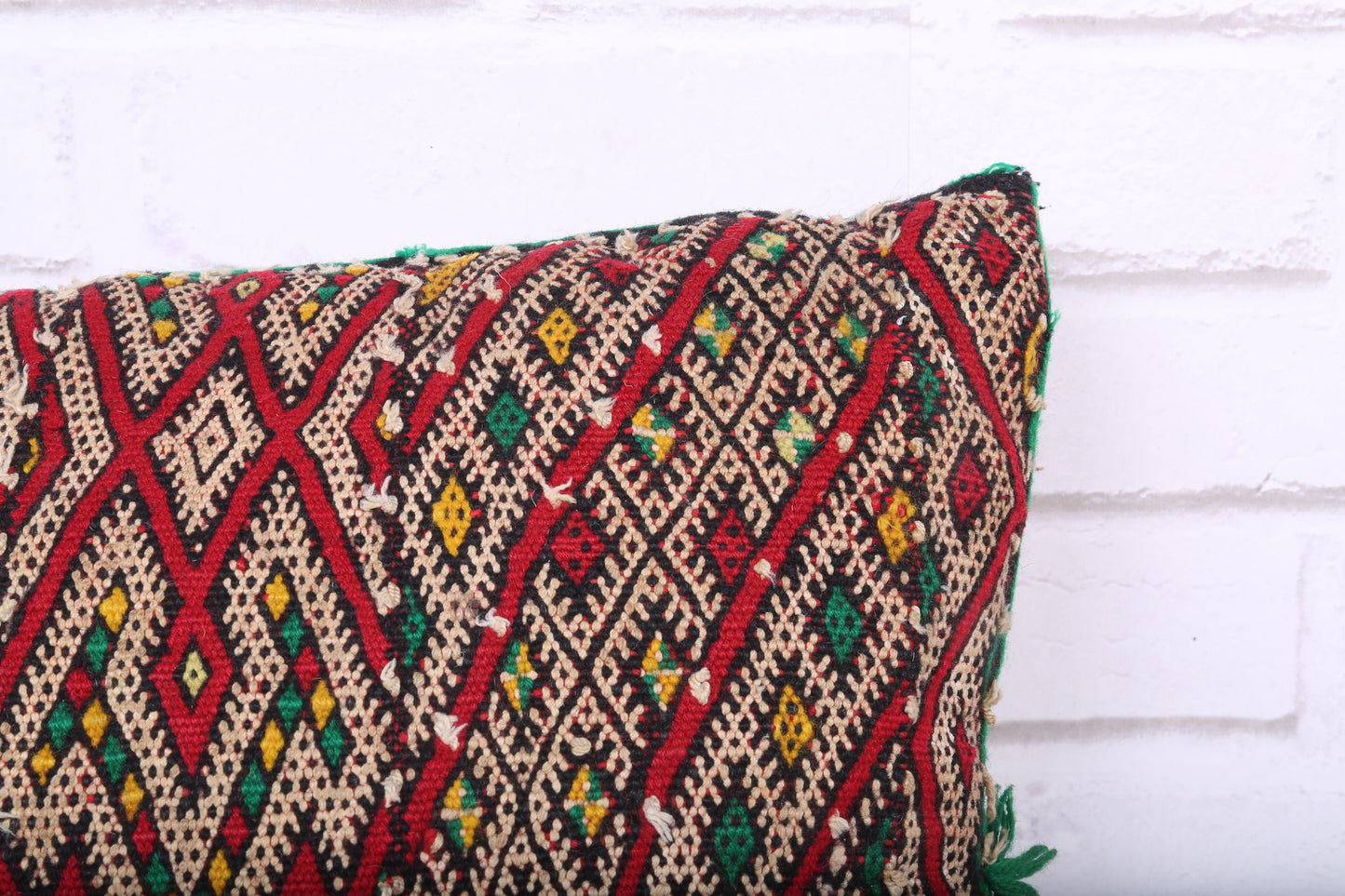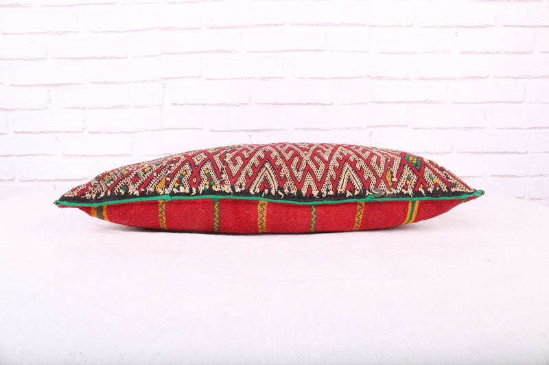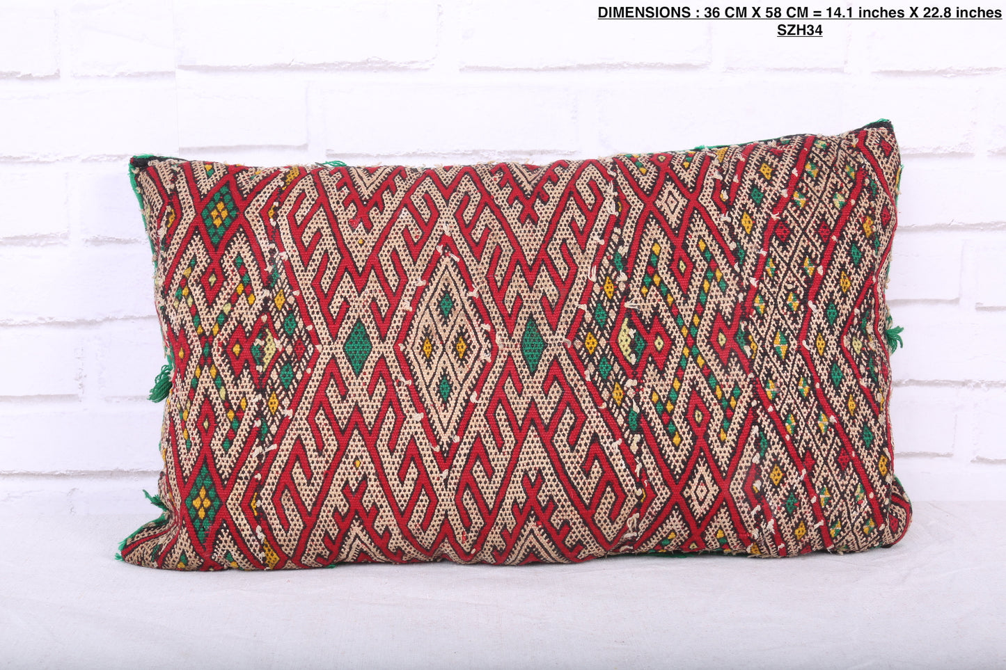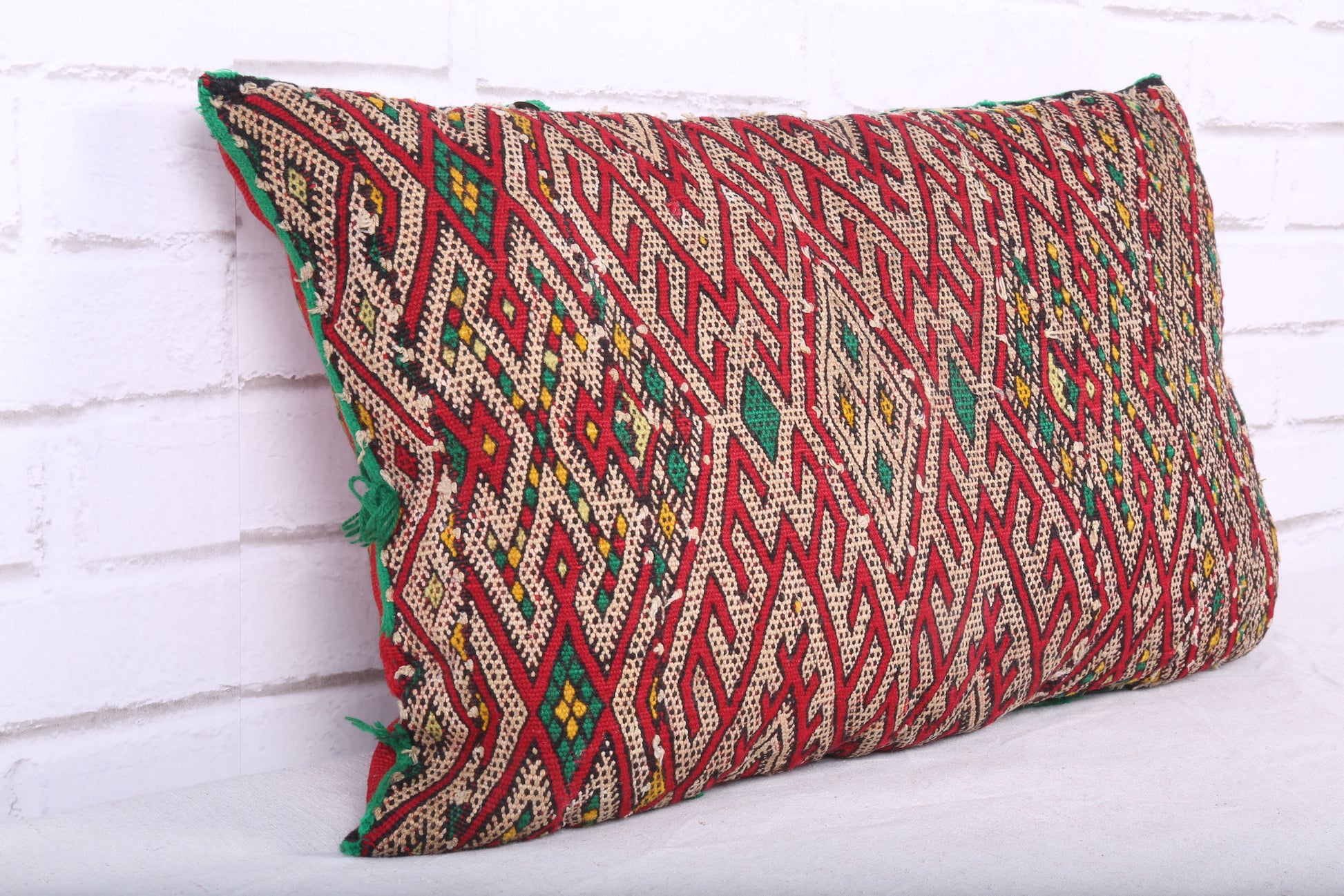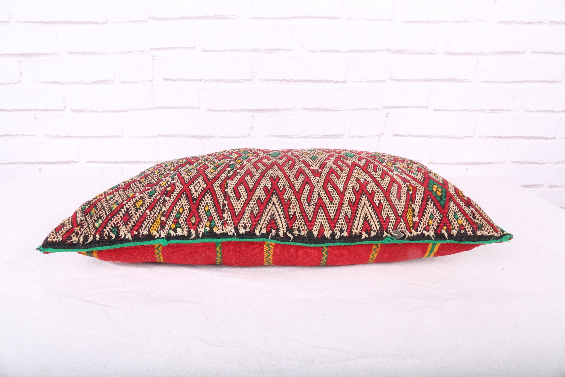 Expertly crafted by hand, this vintage Moroccan pillow offers a versatile and stylish addition to any space. Measuring 14.1 x 22.8 inches, it is filled with soft and comfortable material for a cozy feel. Perfect for adding a bohemian touch to your home decor or for use as a floor cushion.