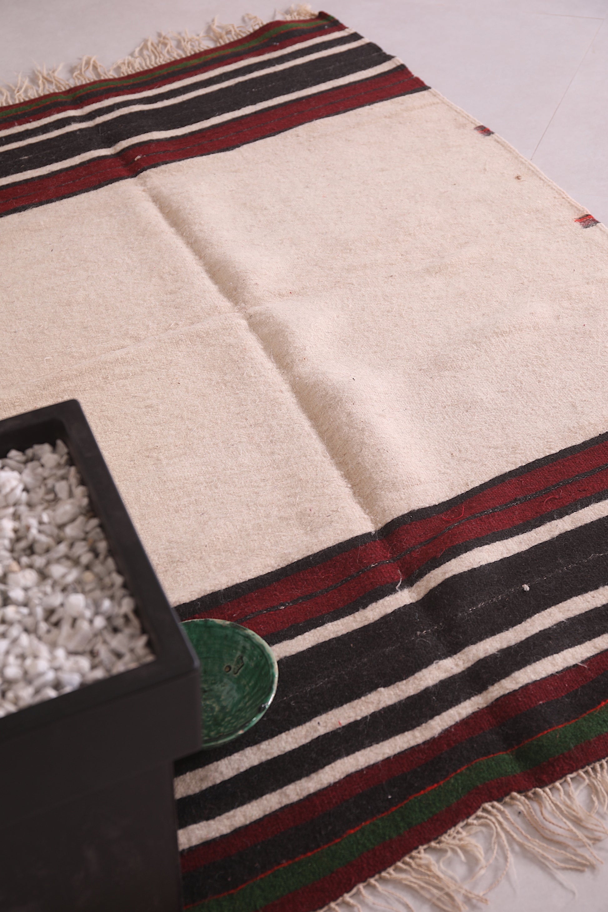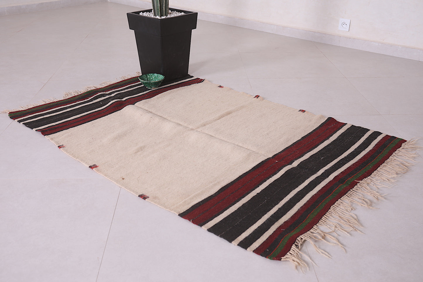 Moroccan Striped Rug 3.5 x 5.2 FT - Handwoven Neutral Tones