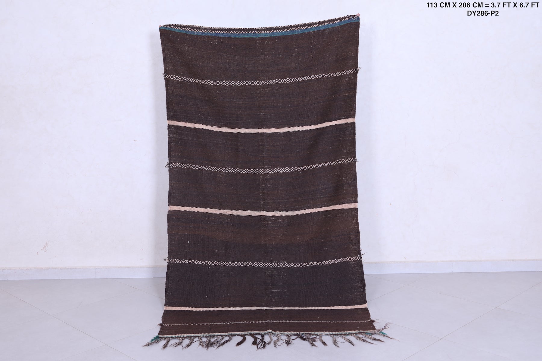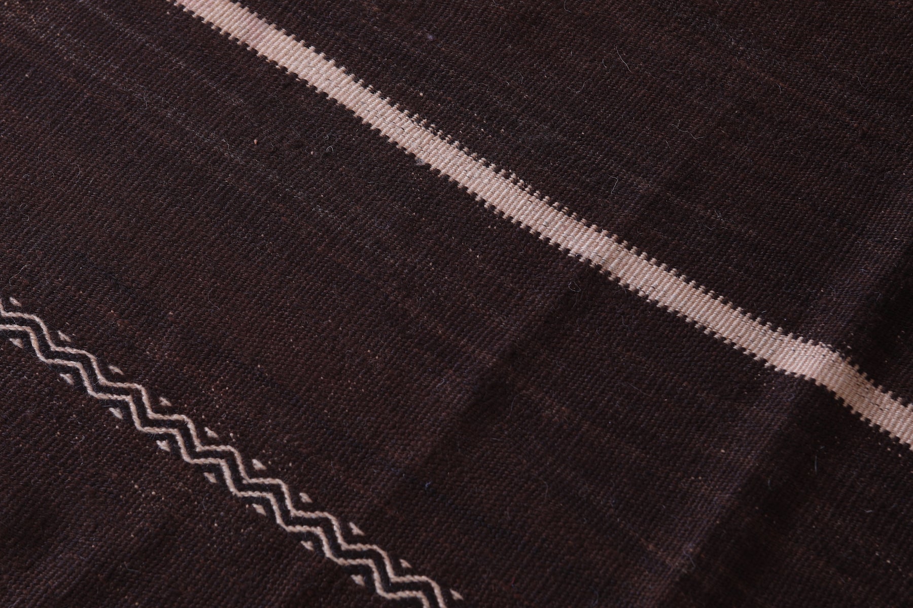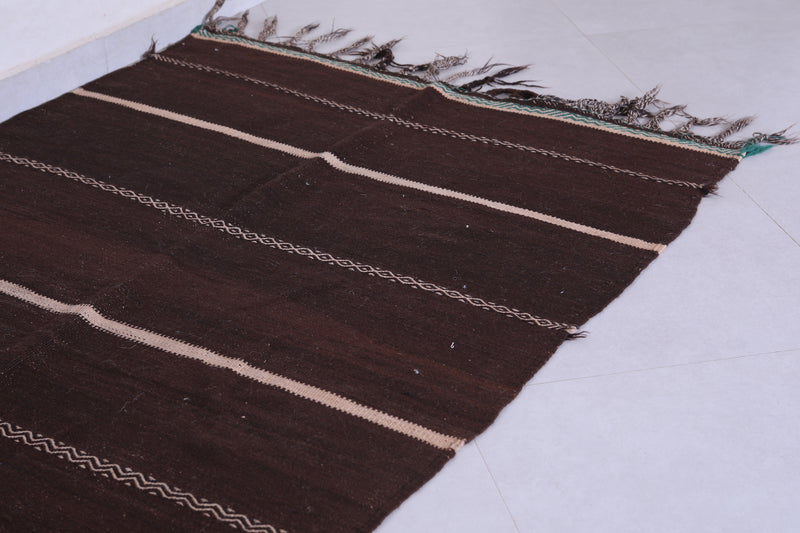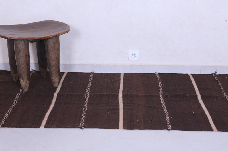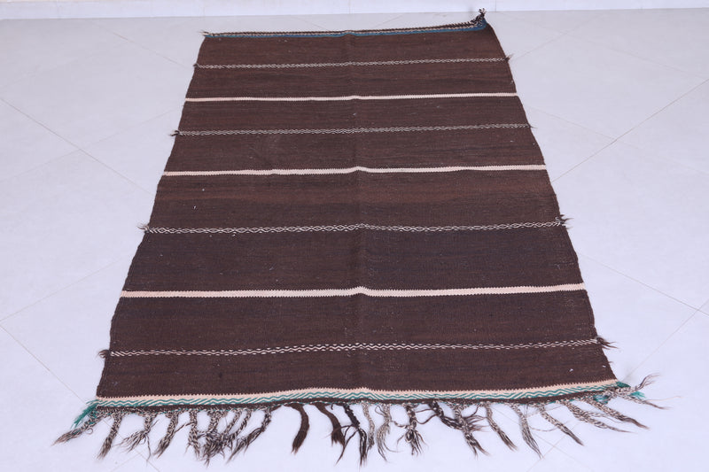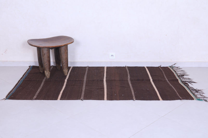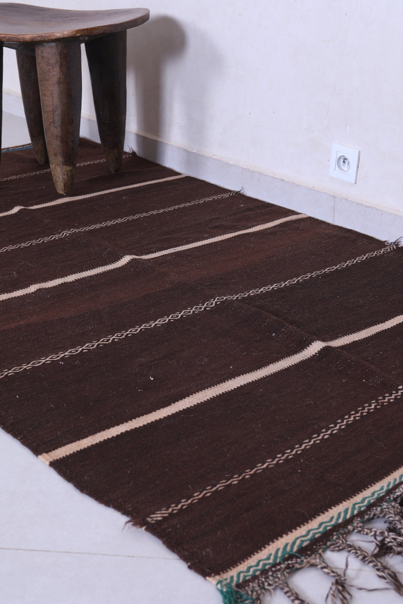 Traditional Moroccan Berber Kilim Rug - 3.7x6.7 ft Handwoven Brown Striped
