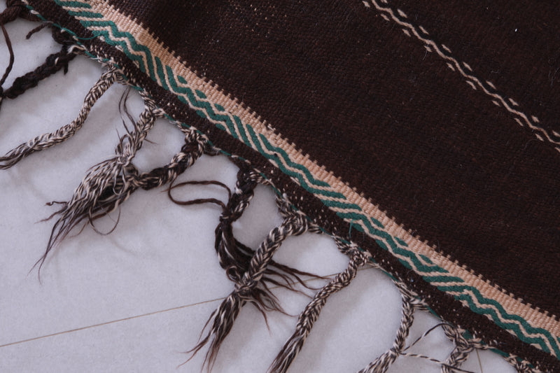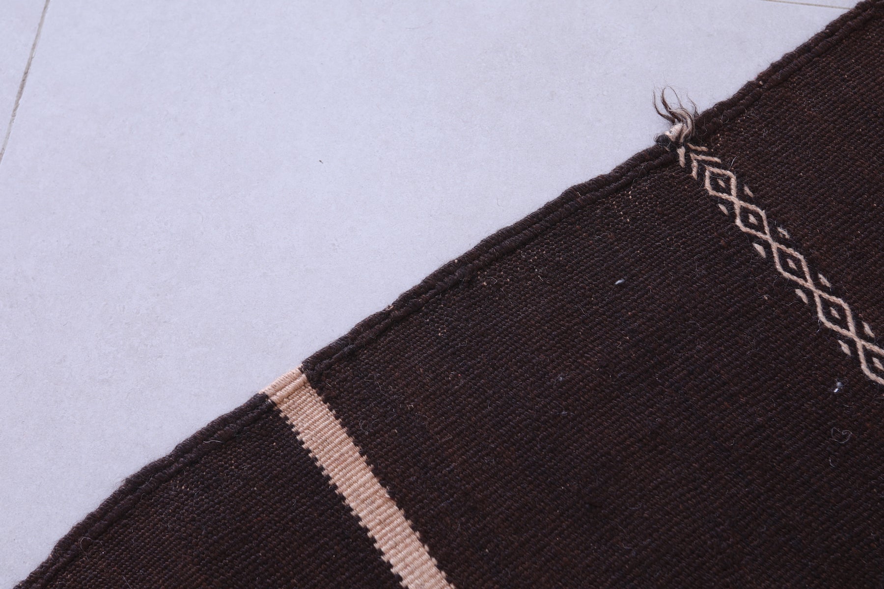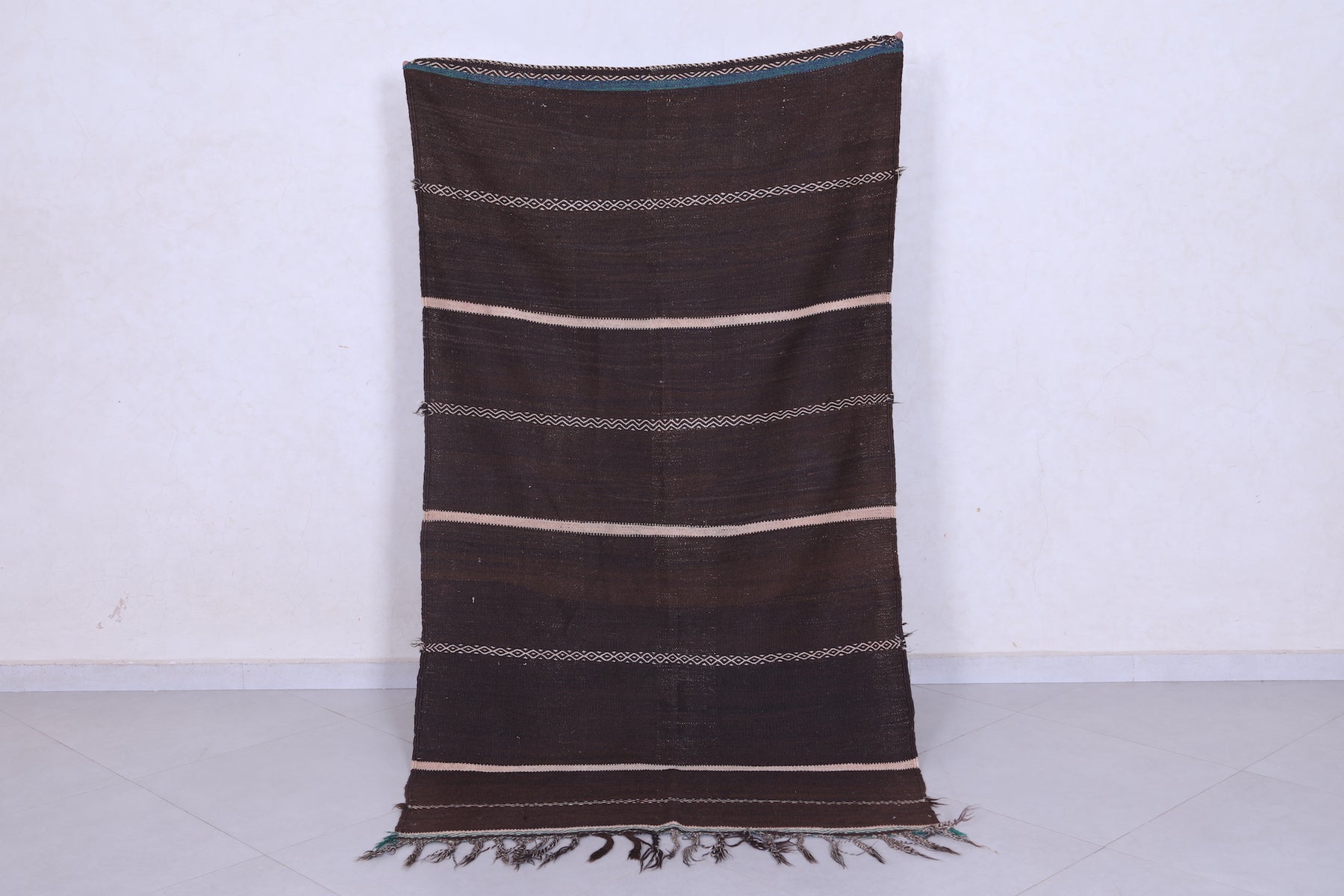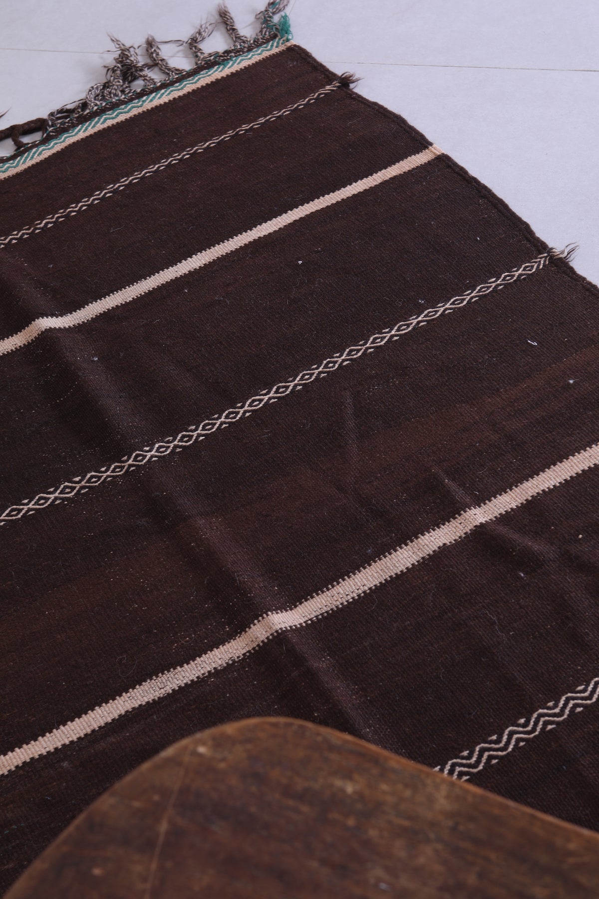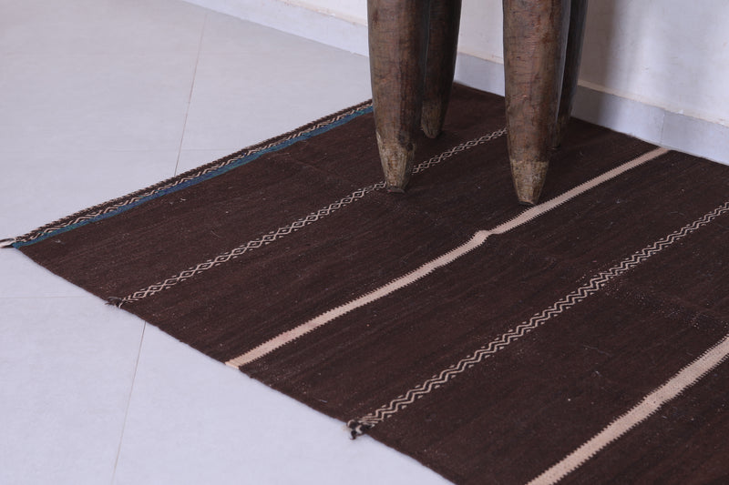 Traditional Moroccan Berber Kilim Rug - 3.7x6.7 ft Handwoven Brown Striped