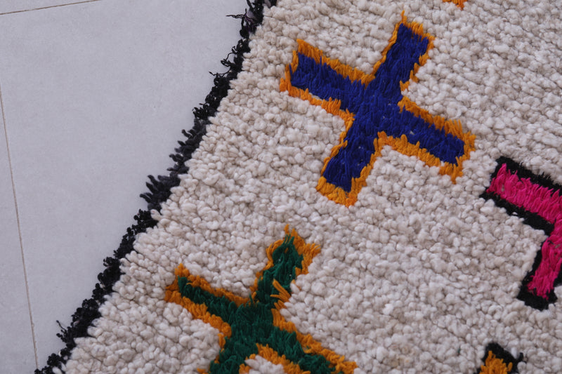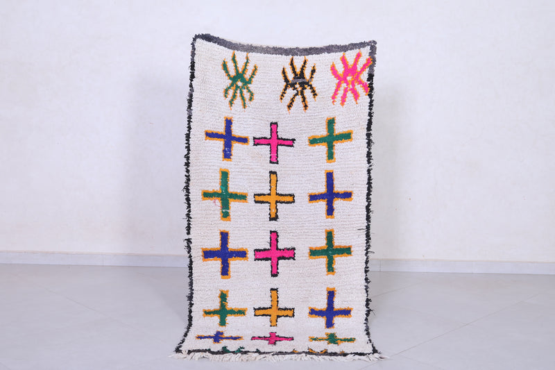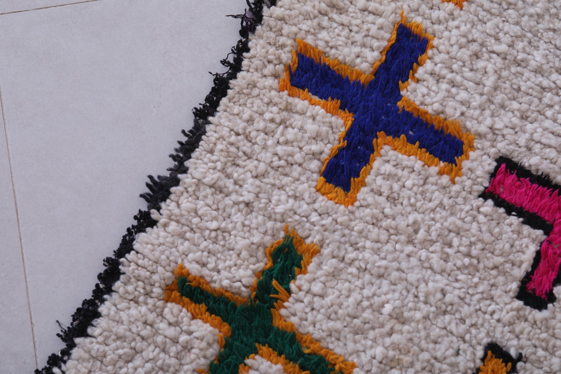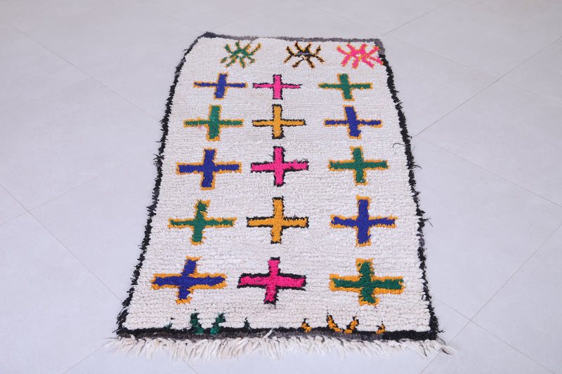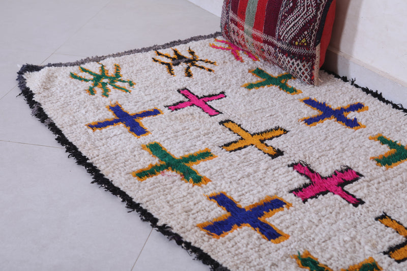 Infuse your space with playful tradition using this Tribal Berber Rug Shag (2.8 x 5.5 FT), featuring vibrant cross motifs on a creamy ivory field with bold black framing.