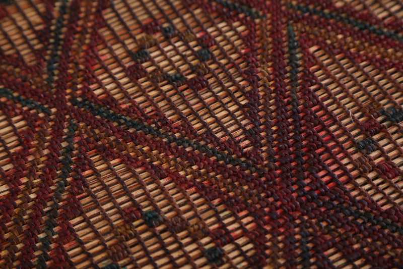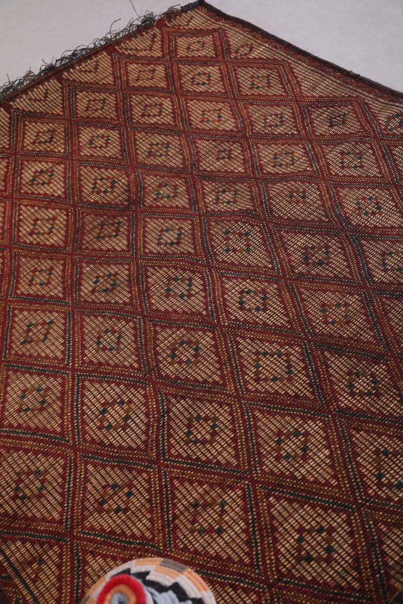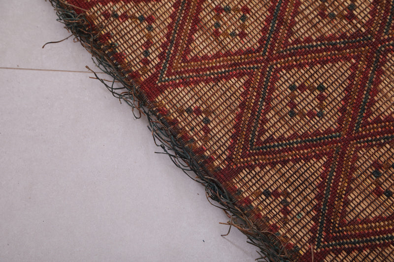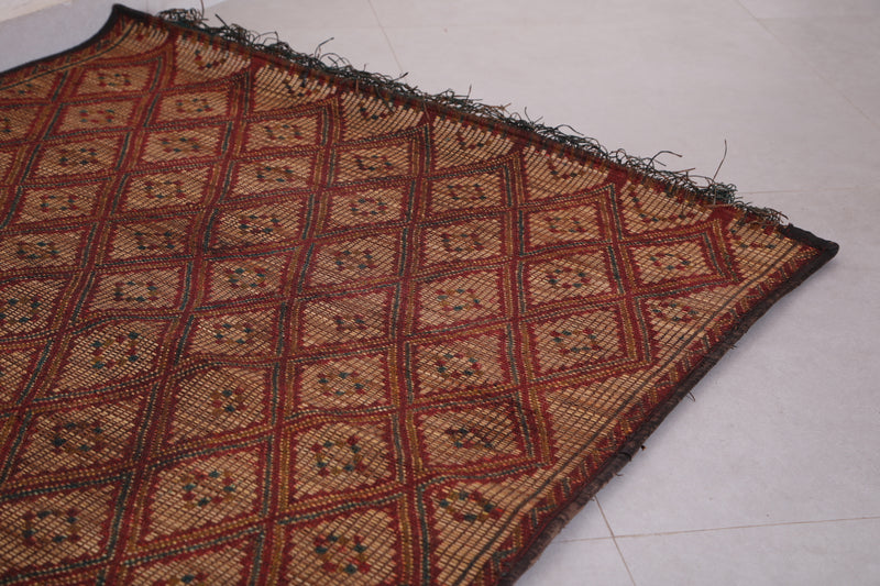 Bring authentic Moroccan craftsmanship into your home with this Vintage Handmade Tuareg Rug. Carefully handwoven by experienced artisans using natural reed fibers, this beautiful piece combines traditional artistry with durable quality. Its bold geometric patterns and earthy tones add texture, warmth, and cultural charm, making it a versatile accent for living rooms, entryways, or creative spaces.