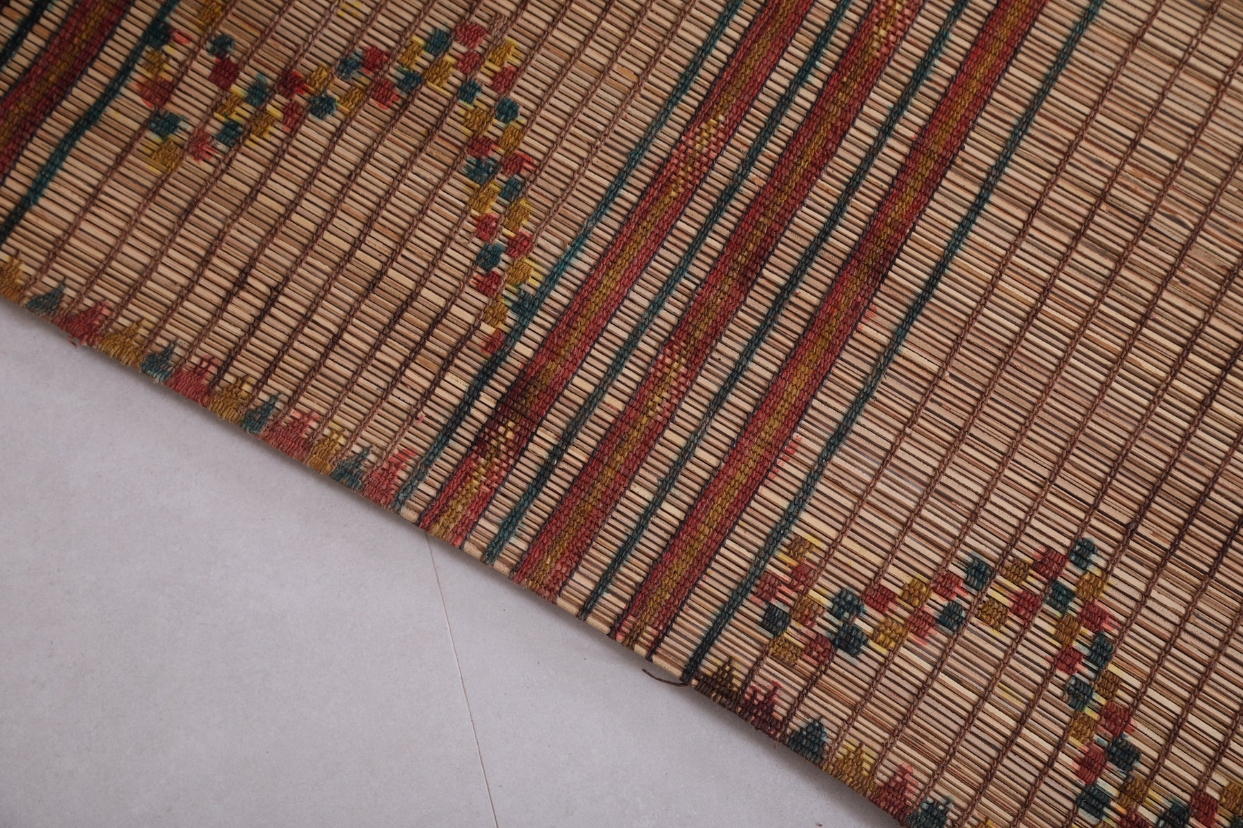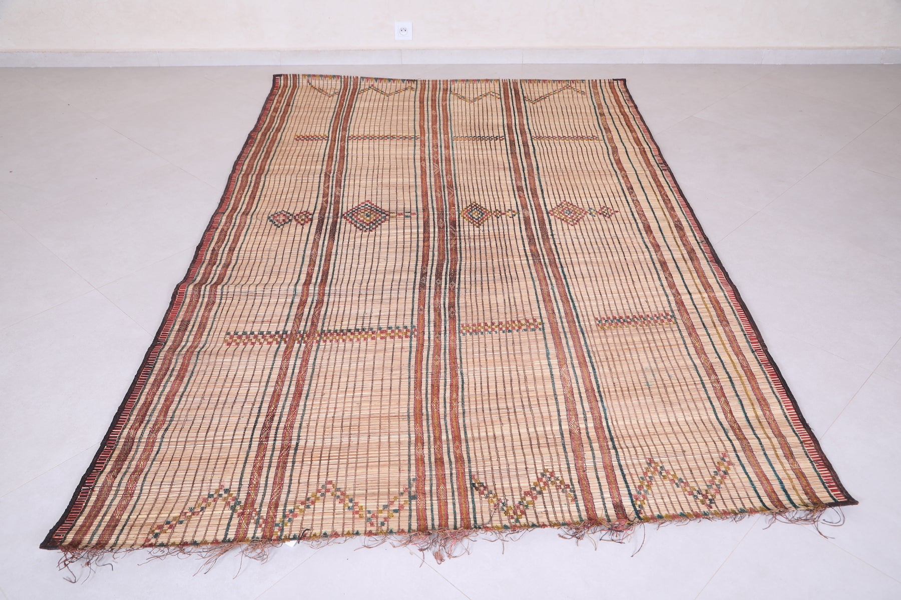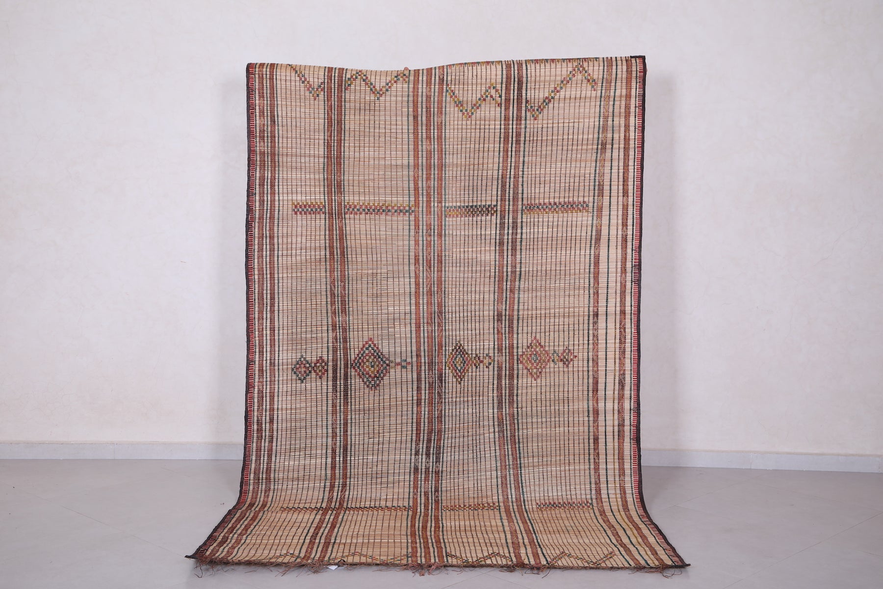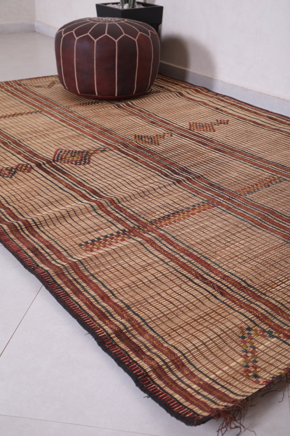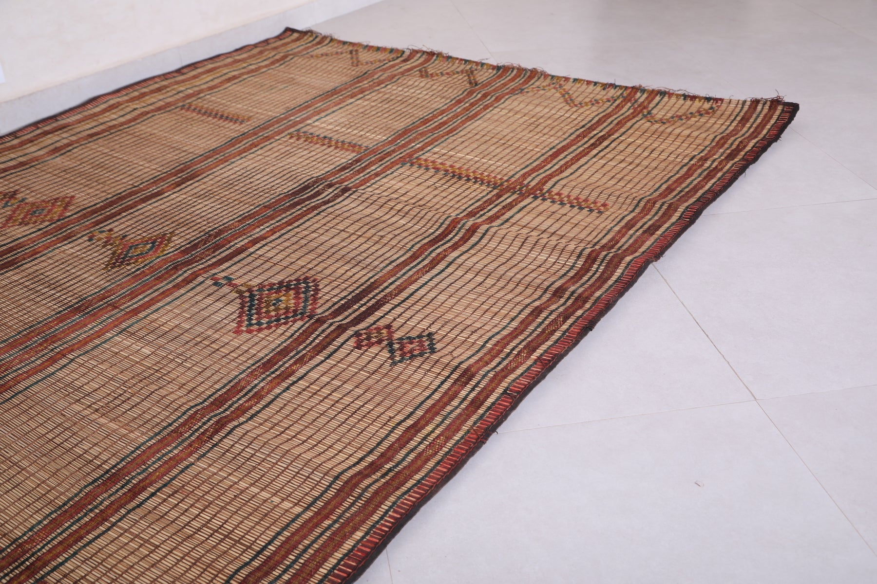 Add timeless elegance and cultural charm to your home with this Vintage Handmade Tuareg Rug. Expertly crafted by skilled artisans using natural reed fibers, this unique piece brings authentic craftsmanship and lasting durability into your space. Its intricate geometric patterns and warm, earthy tones add texture and character, making it a perfect accent for living rooms, hallways, or creative corners.