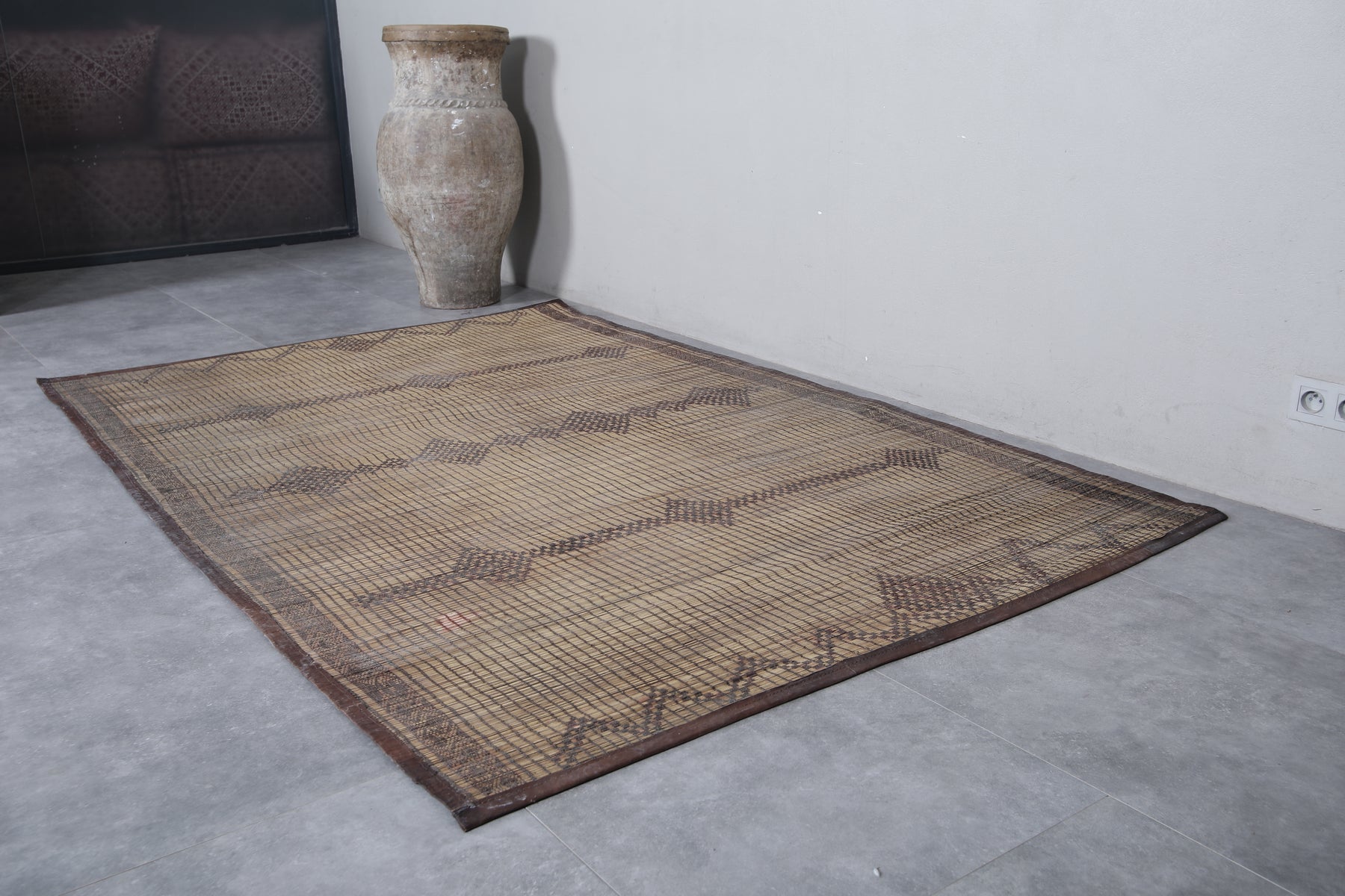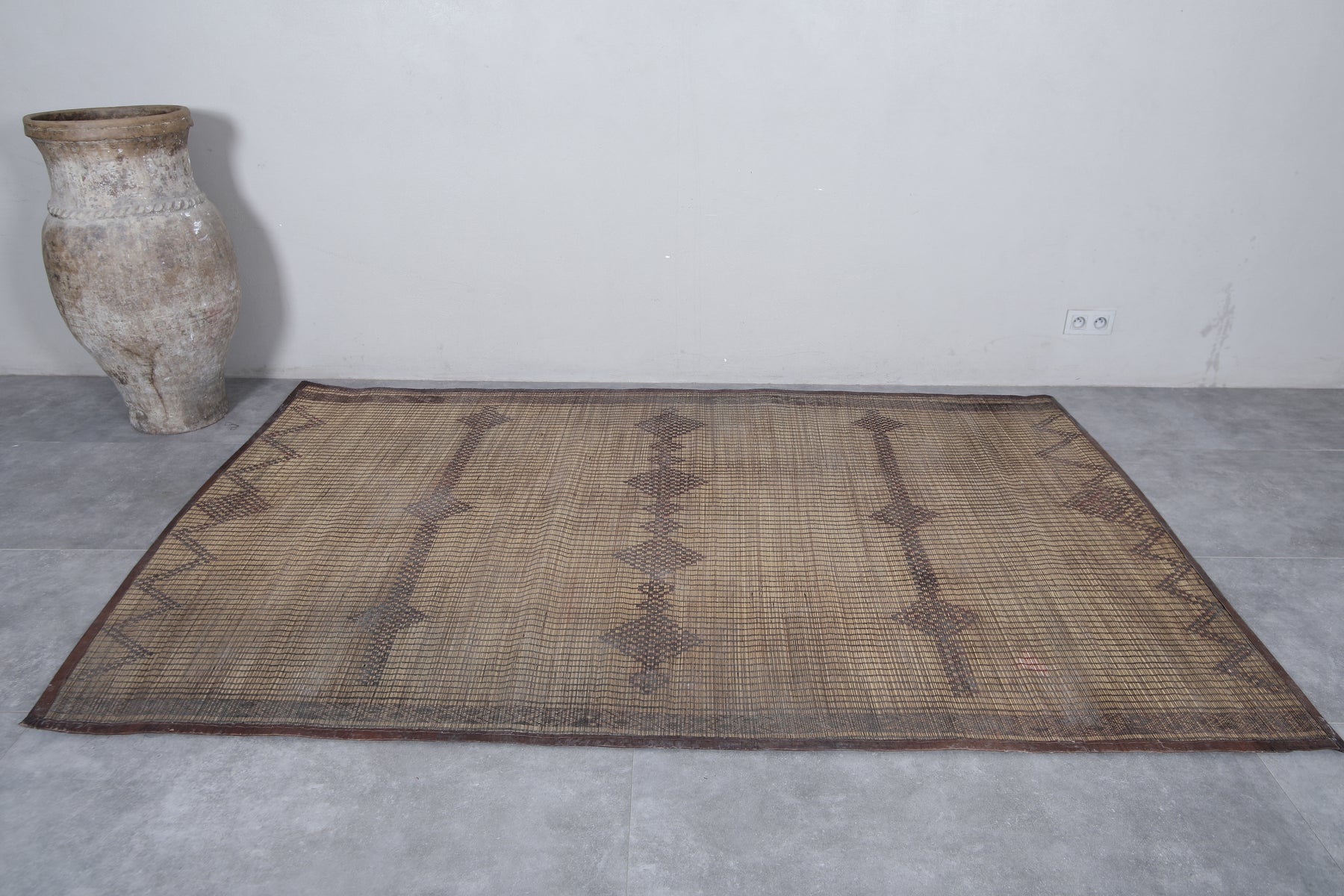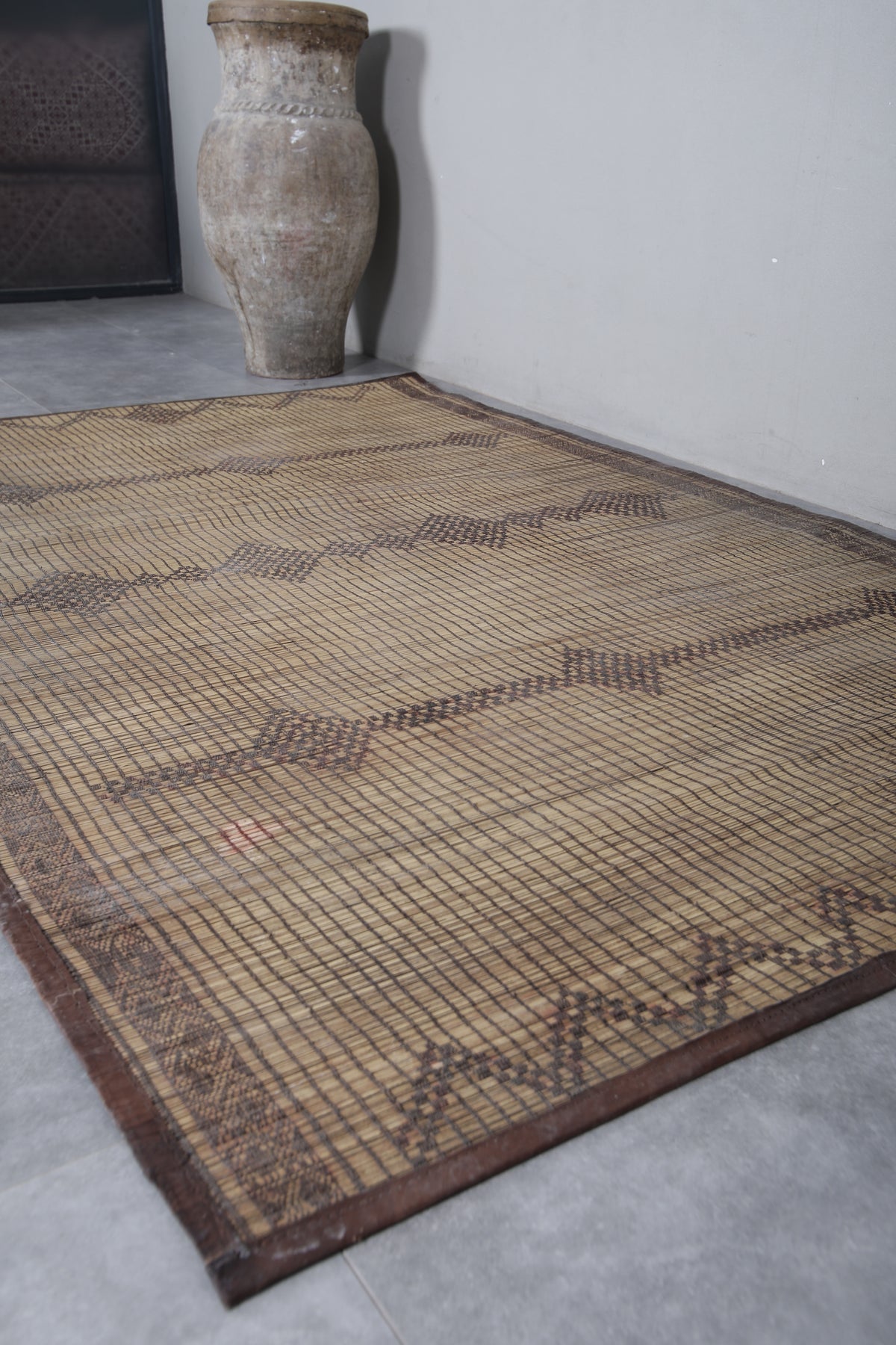 Add a touch of timeless artistry to your space with this Vintage Handmade Tuareg Rug. Carefully woven by skilled artisans using natural reed fibers, this one-of-a-kind piece blends traditional craftsmanship with lasting durability. Its earthy tones and intricate geometric patterns bring warmth, texture, and cultural charm, making it the perfect accent for living rooms, entryways, or creative spaces.
