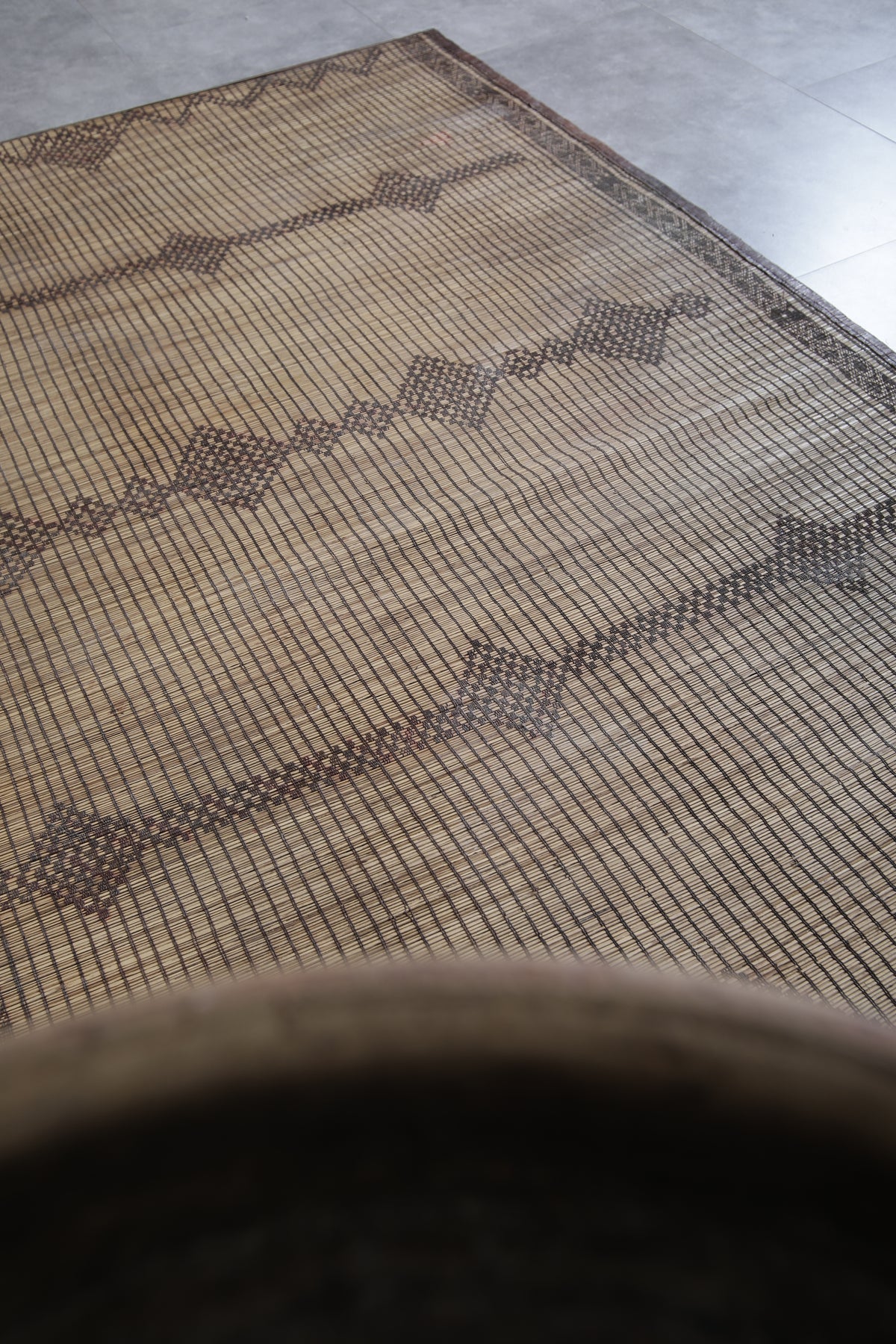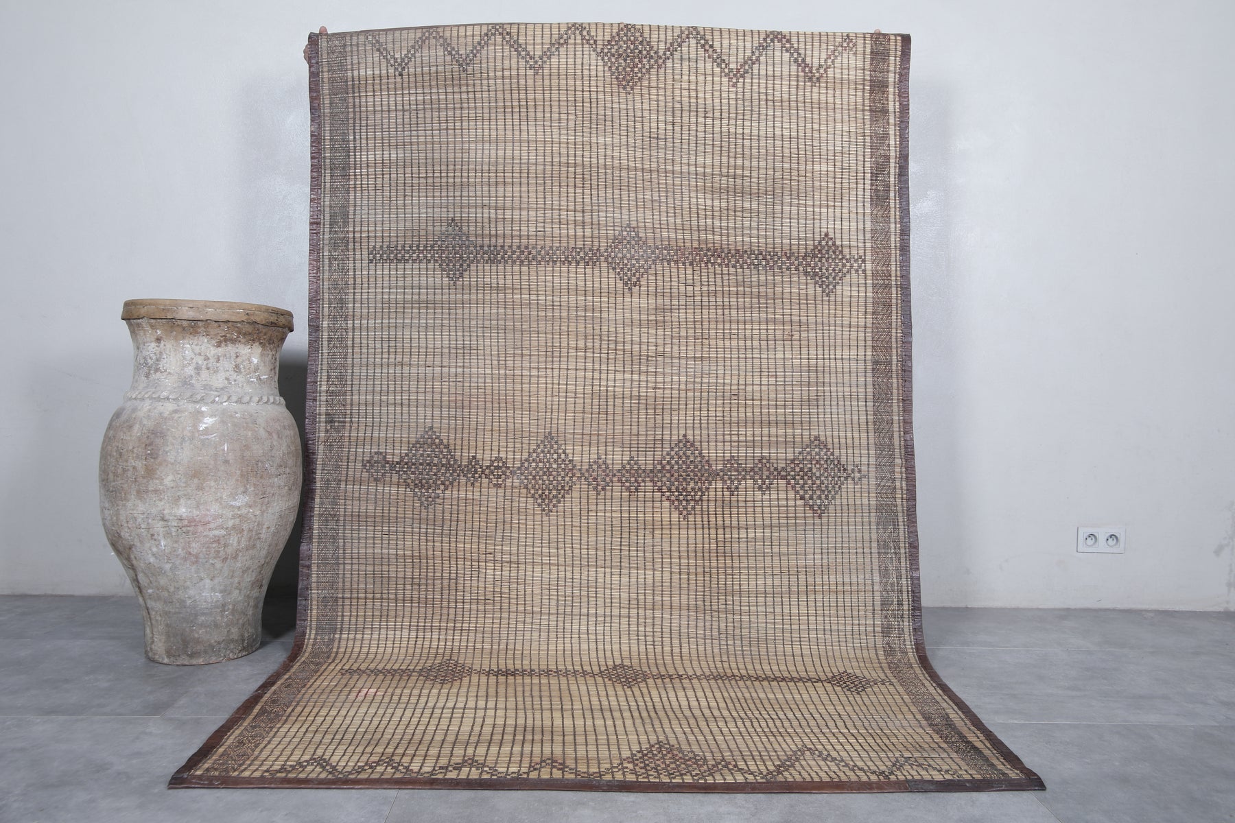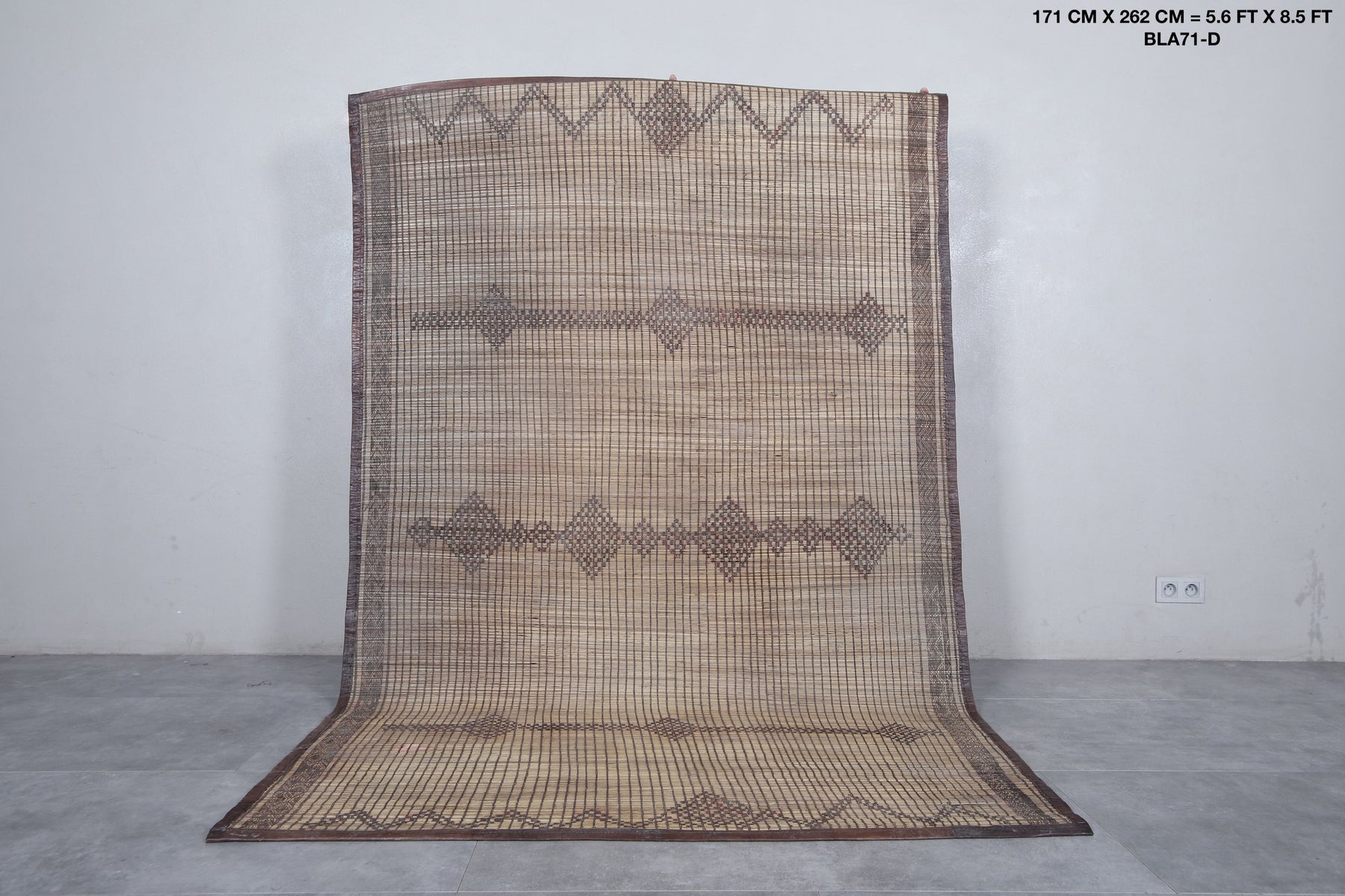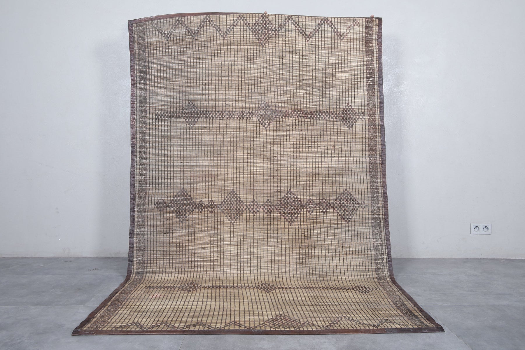 Add a touch of timeless artistry to your space with this Vintage Handmade Tuareg Rug. Carefully woven by skilled artisans using natural reed fibers, this one-of-a-kind piece blends traditional craftsmanship with lasting durability. Its earthy tones and intricate geometric patterns bring warmth, texture, and cultural charm, making it the perfect accent for living rooms, entryways, or creative spaces.
