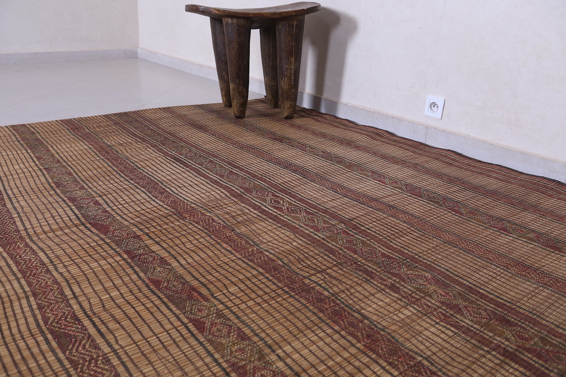 Add a touch of heritage and handcrafted beauty to your home with this artisan-made Tuareg Rug. Woven using natural reed fibers, this piece combines traditional craftsmanship with durable quality and timeless style. Its intricate patterns and rich textures bring warmth and cultural depth to any room, making it the perfect accent for both modern and traditional spaces.