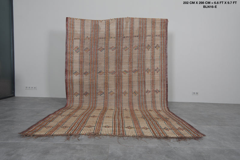 Bring timeless craftsmanship into your home with this authentic Tuareg rug, handwoven by skilled artisans using traditional techniques. Featuring intricate geometric patterns and earthy tones, this rug beautifully blends cultural heritage with modern versatility. Crafted from durable natural materials, it offers lasting quality and warmth, making it perfect for living rooms, dining areas, or entryways. Its versatile design complements bohemian, rustic, and contemporary interiors alike.