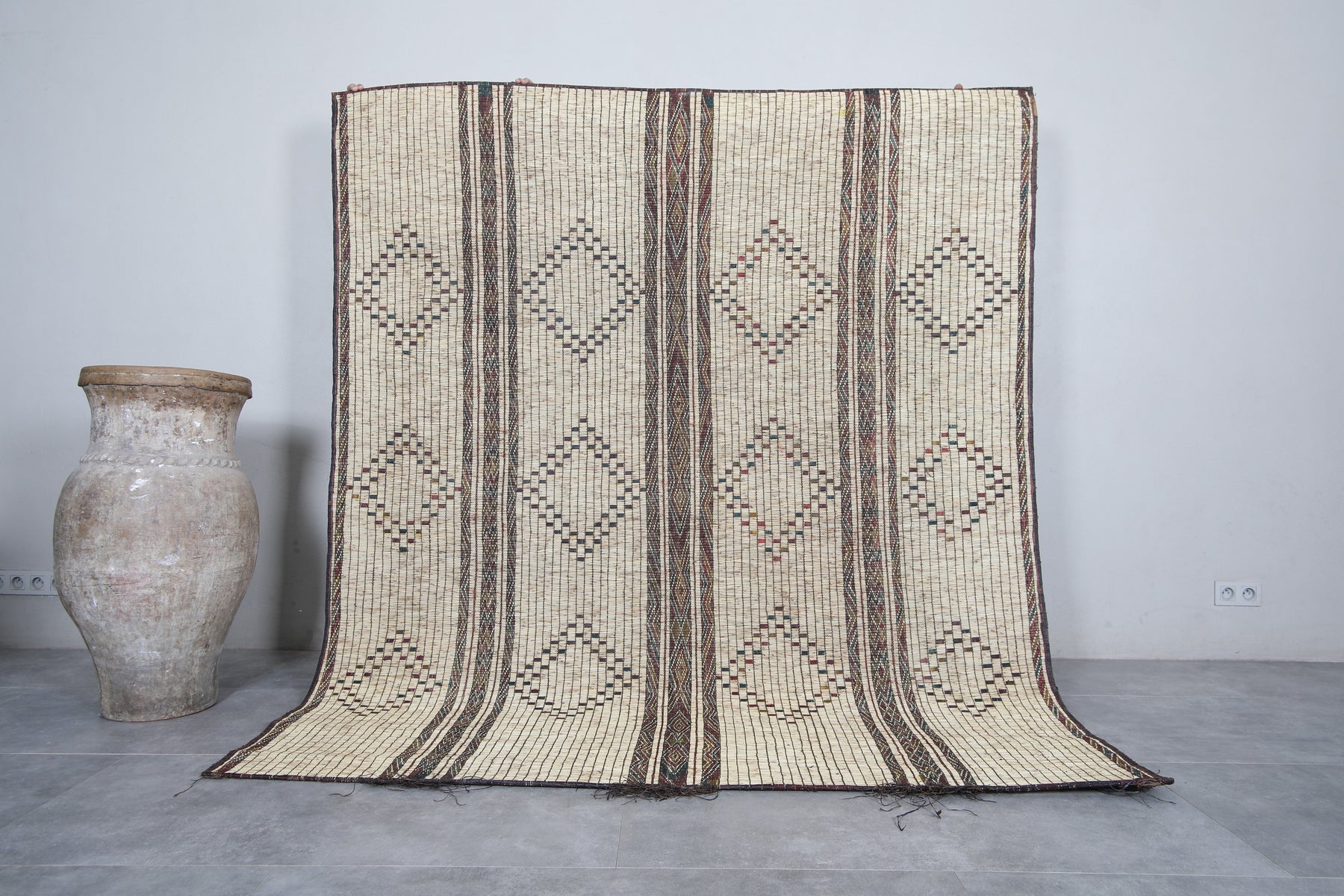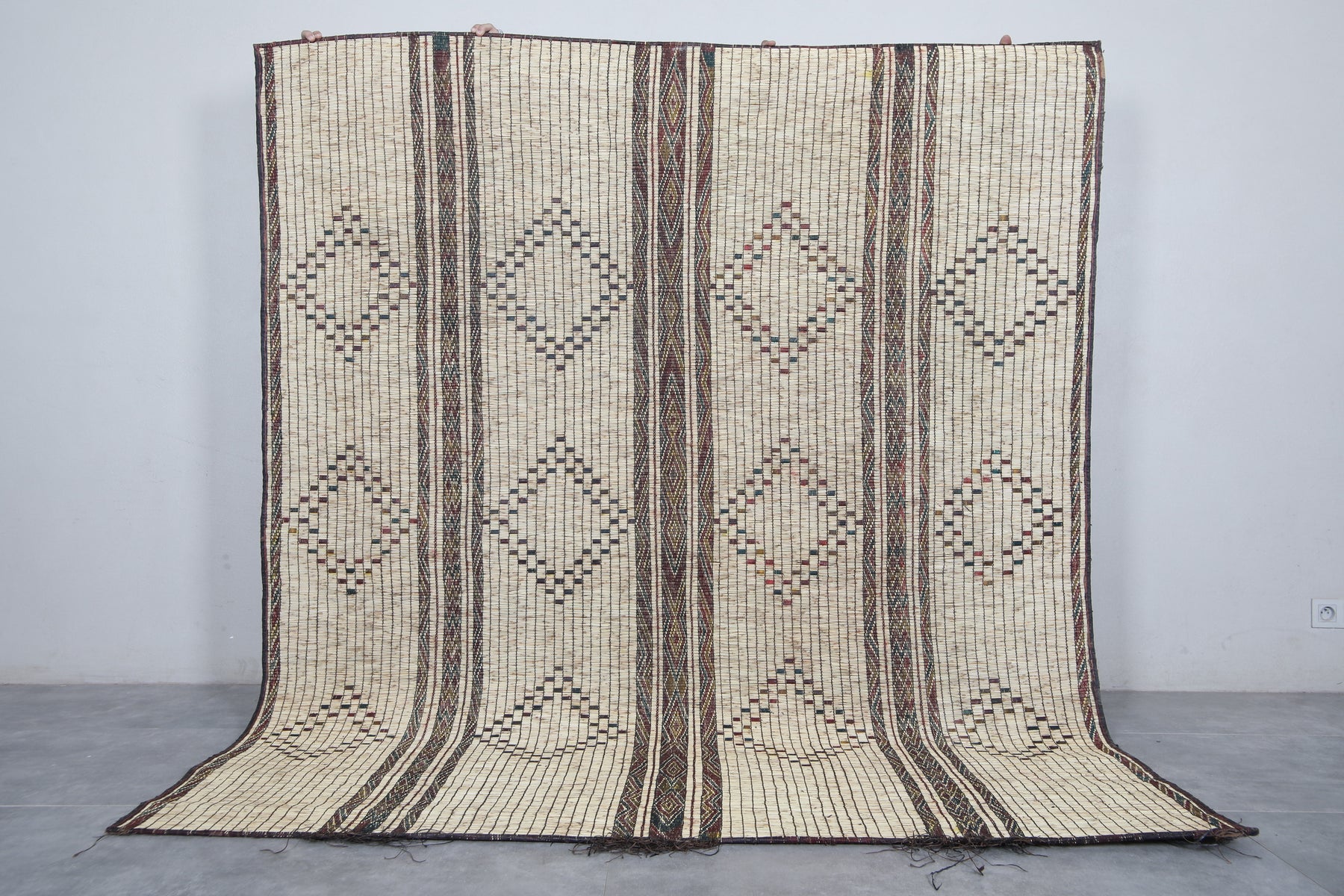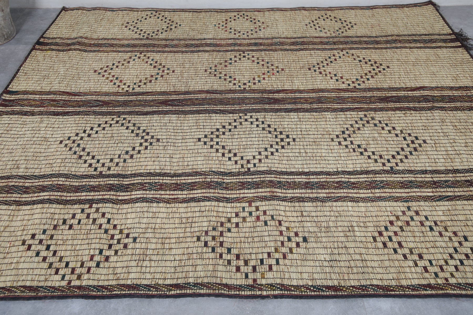 Expertly hand-woven by the Tuareg people, this 6.9 X 8.3 feet rug is a stunning addition to any home. Made from high-quality reed, it boasts durability and a unique, intricate design. Elevate your space with this beautiful, cultural piece.