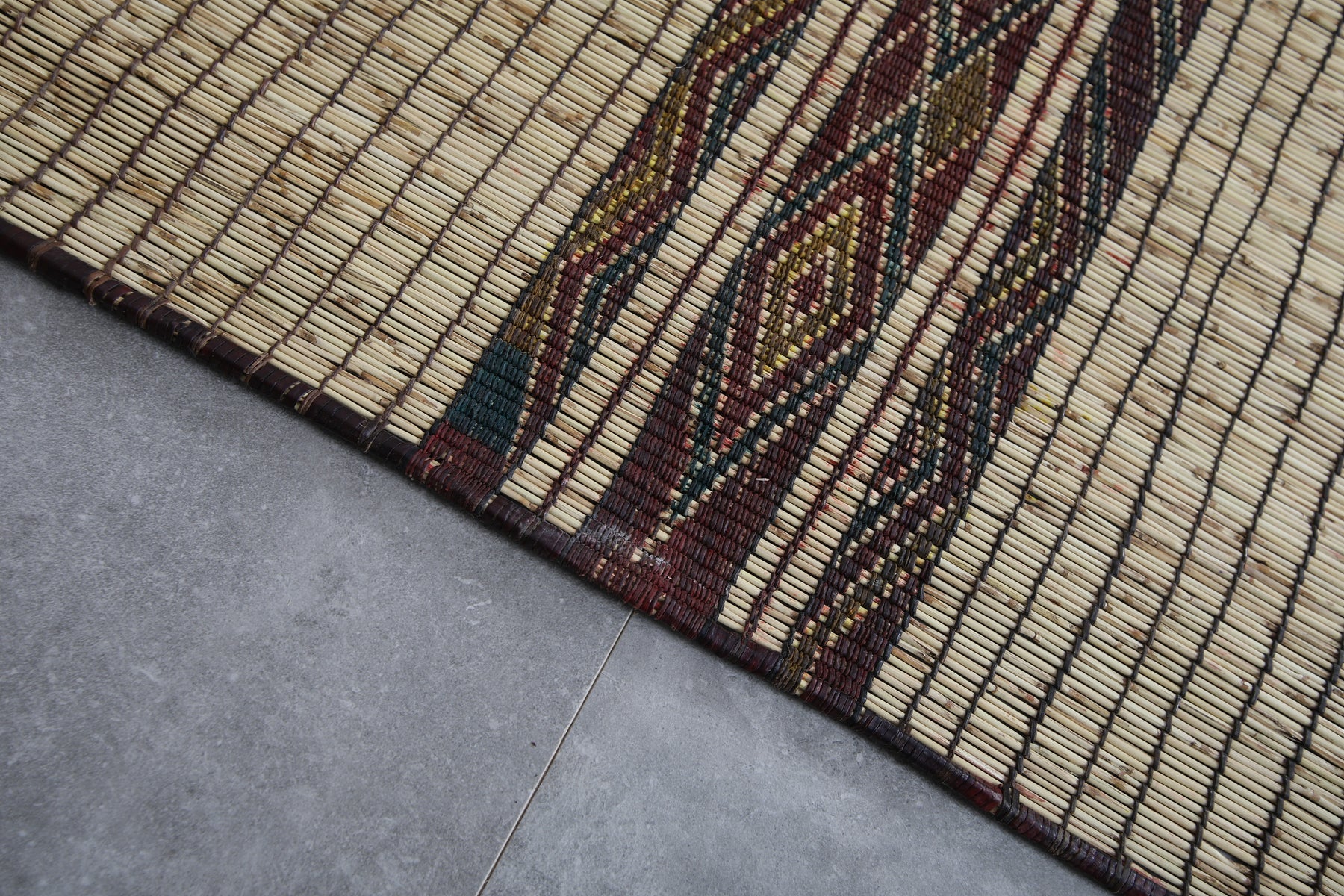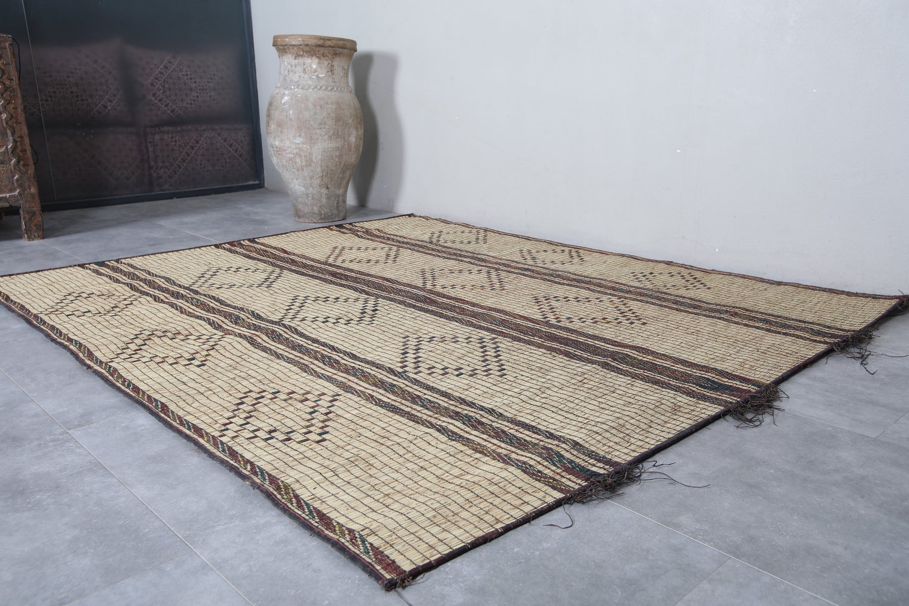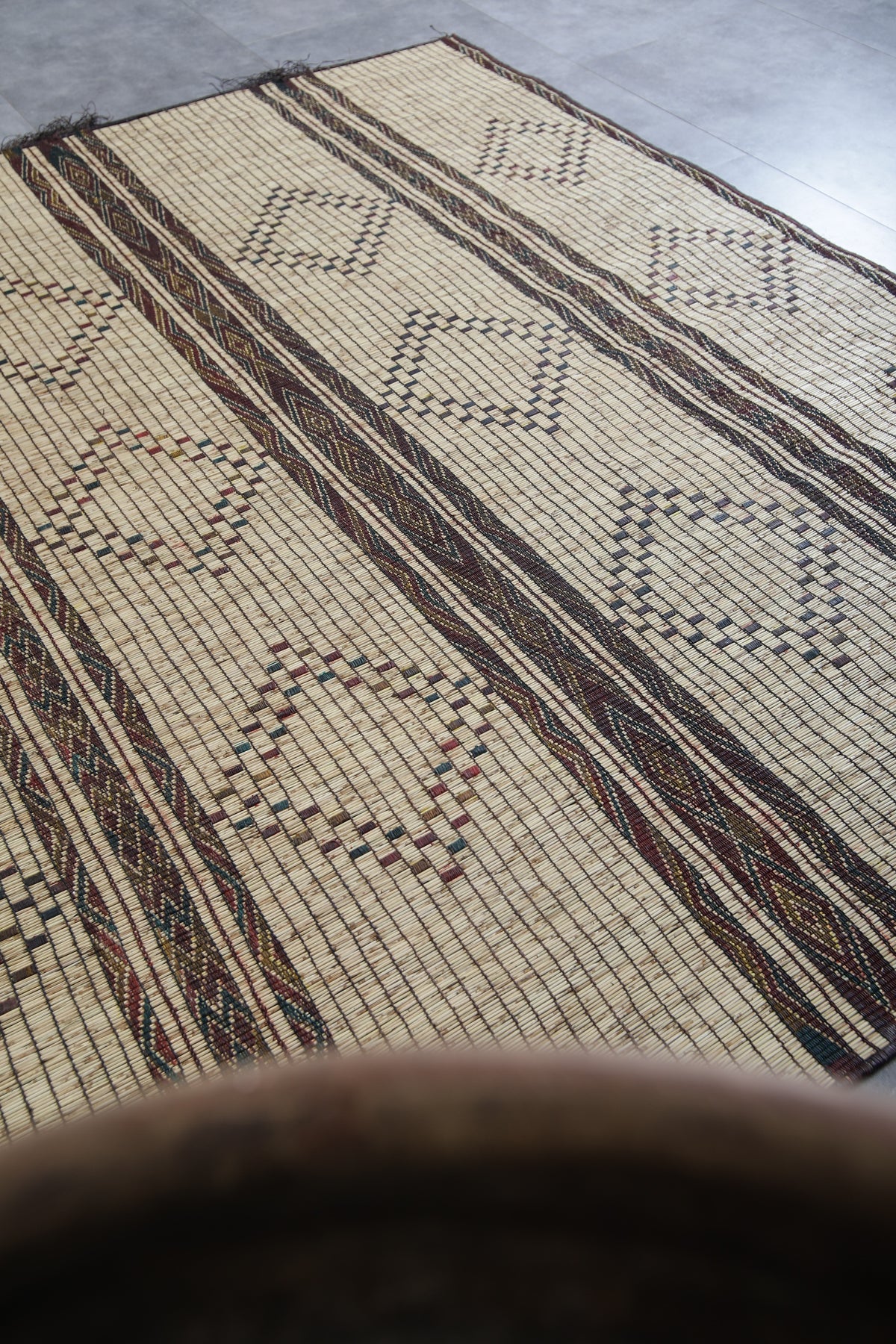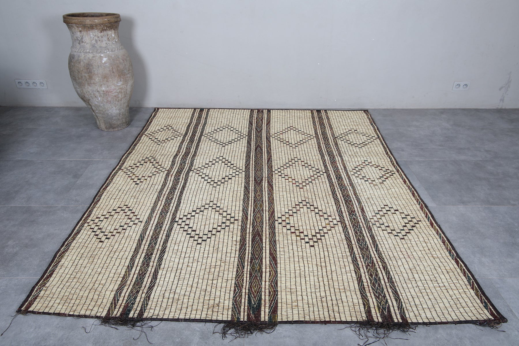 Expertly hand-woven by the Tuareg people, this 6.9 X 8.3 feet rug is a stunning addition to any home. Made from high-quality reed, it boasts durability and a unique, intricate design. Elevate your space with this beautiful, cultural piece.