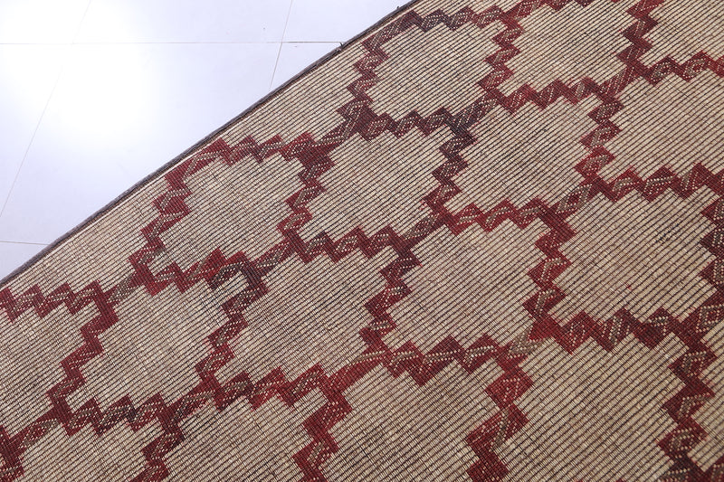 Make a bold statement in your home with this handcrafted Tuareg Rug, showcasing expert craftsmanship and timeless design. Woven by skilled artisans using natural reed fibers, this piece blends cultural tradition with durable functionality. Its striking geometric patterns and warm tones add rich texture and artistic flair to any space, whether used as an accent piece or a focal point. This one-of-a-kind rug brings heritage and beauty into your décor.