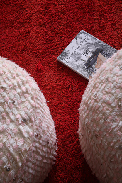 These Two Moroccan round berber poufs are made by a Very Old Moroccan rug.