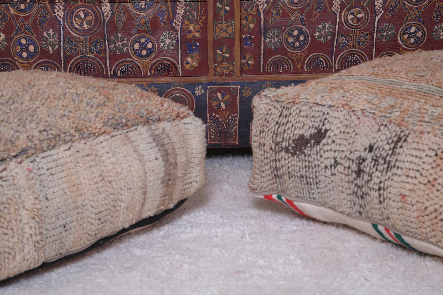 These two Berber Moroccan azilal poufs are made by Very Old Moroccan rug.
