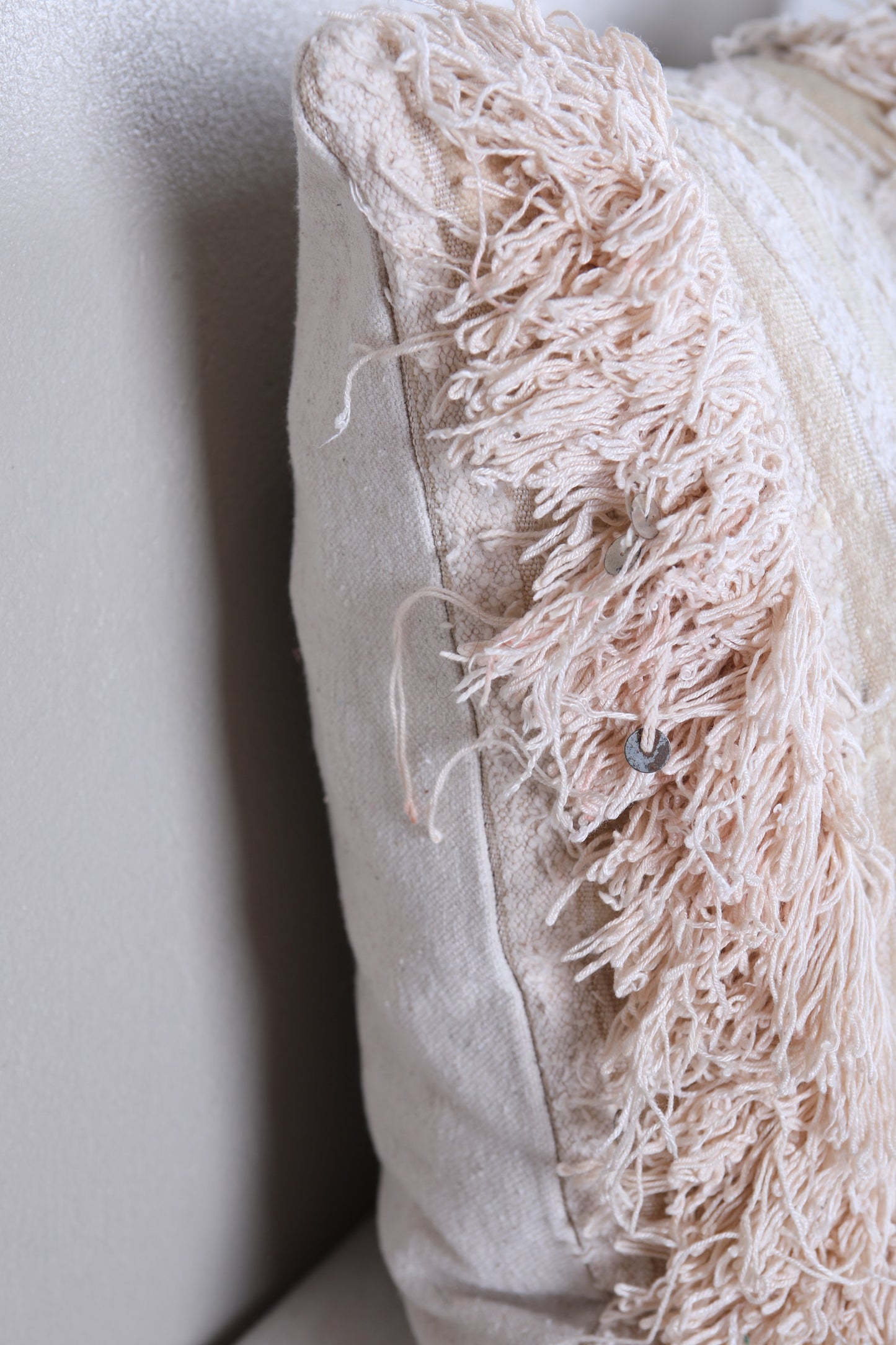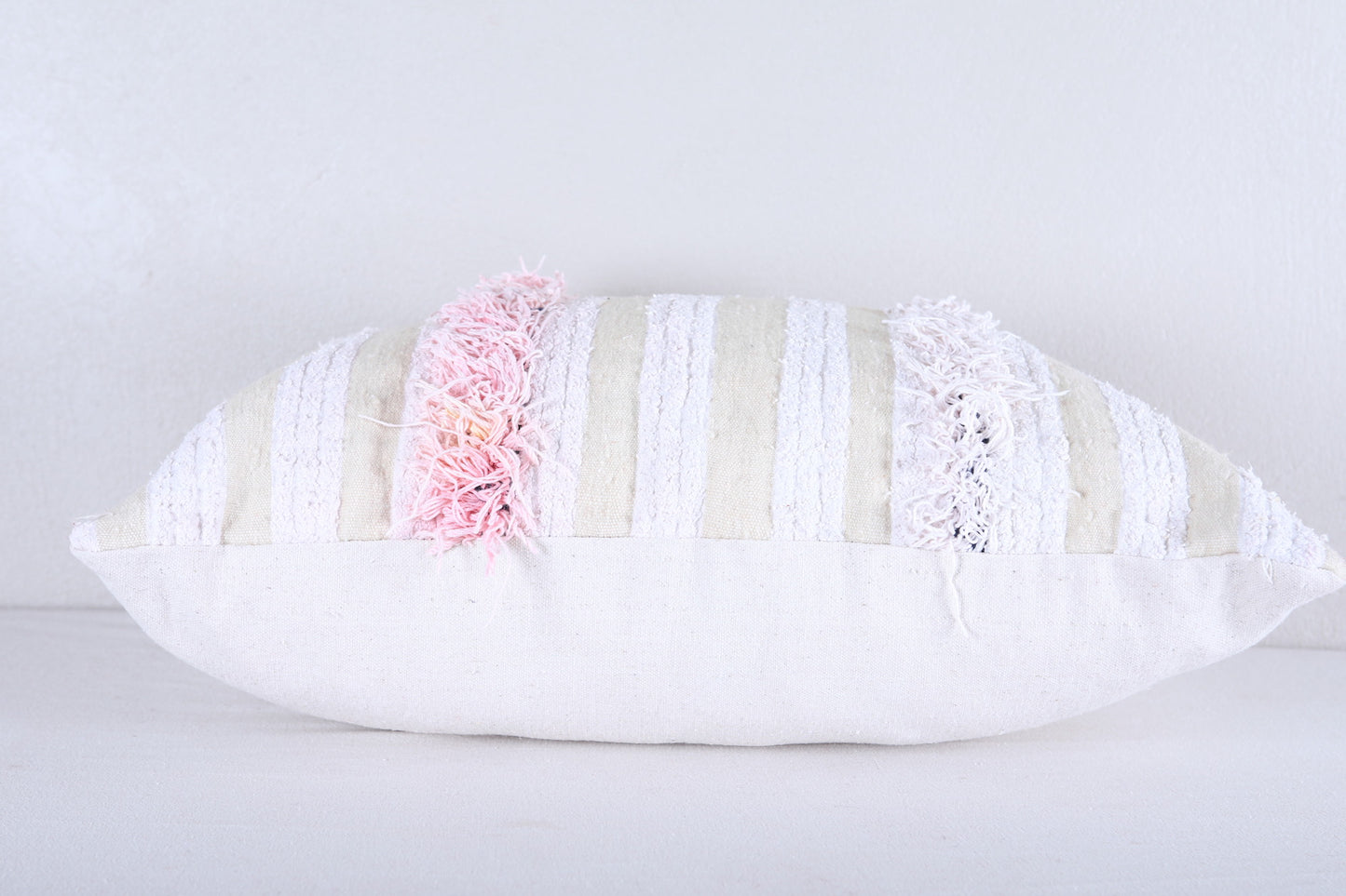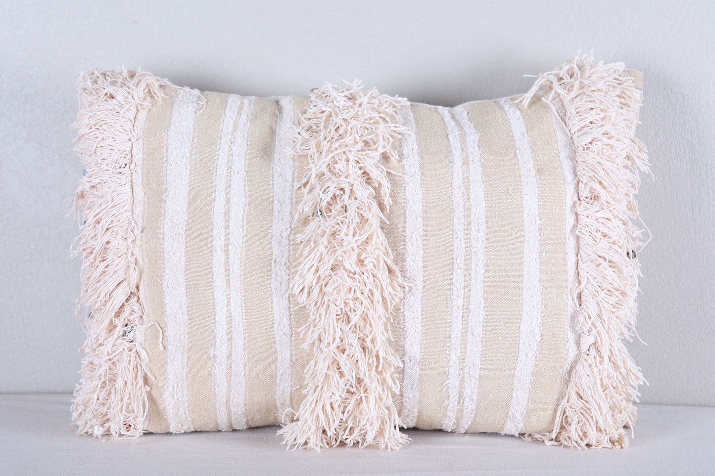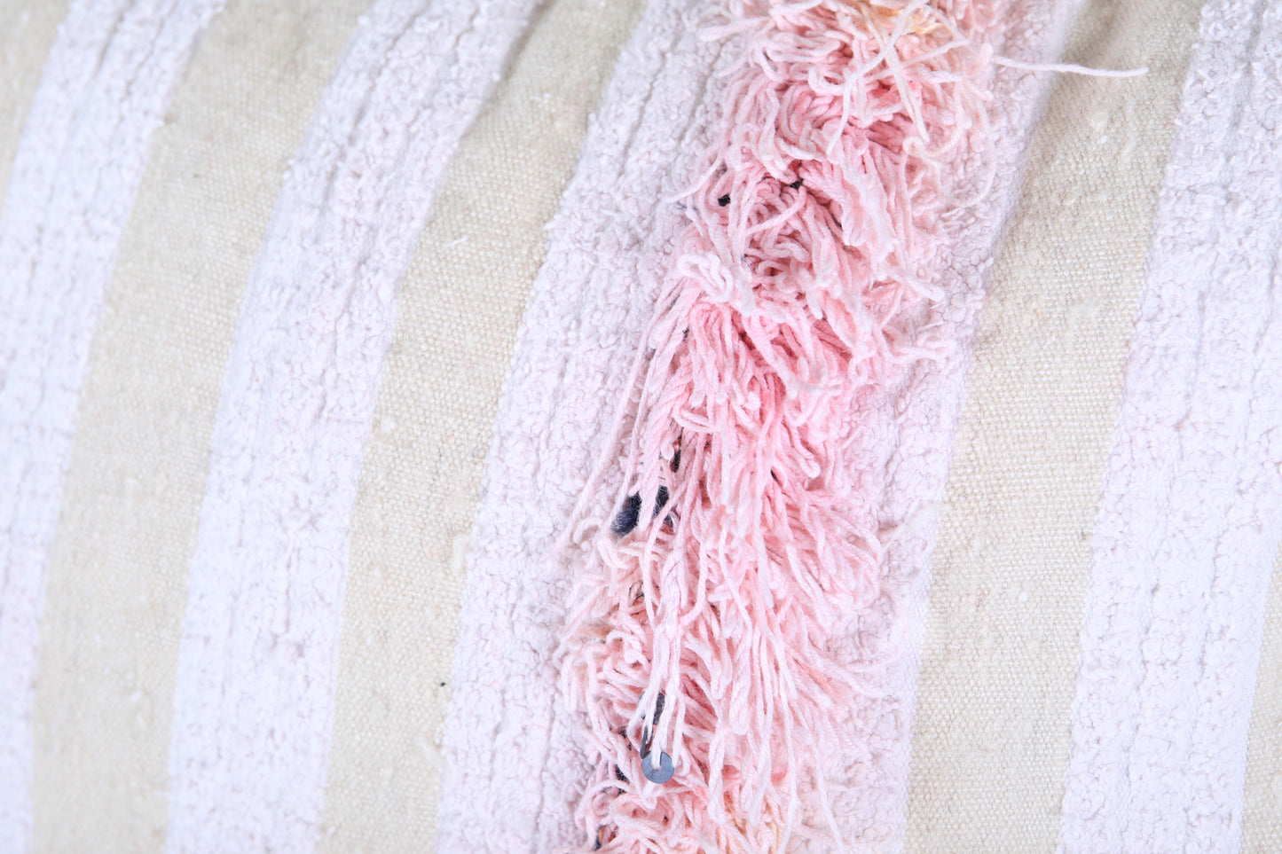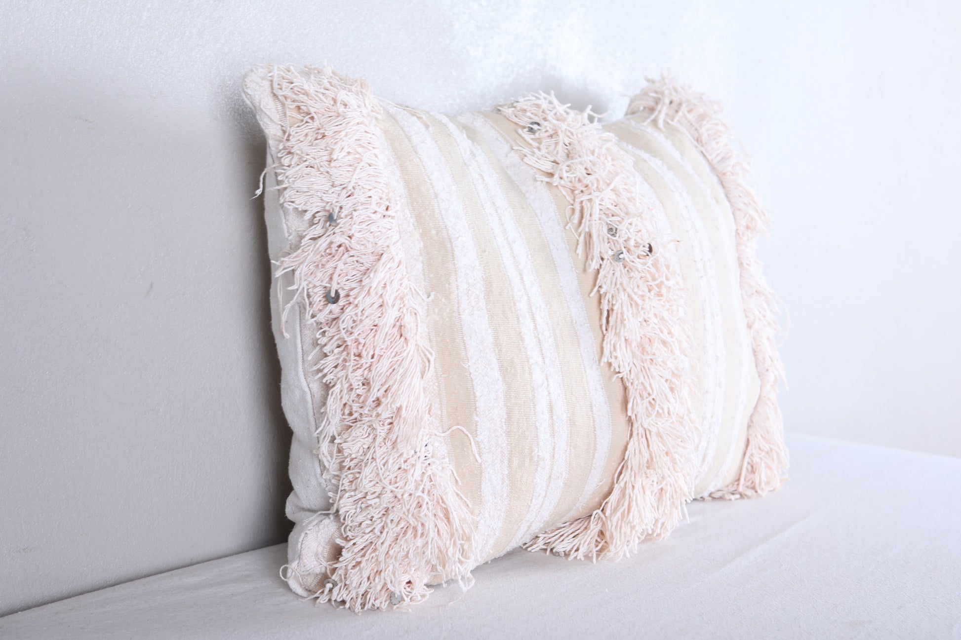 These Two Moroccan pillows provide both style and comfort with their unique vintage kilim rug design and handmade construction. Measuring 16.9 x 23.6 inches, they are filled for maximum support. Upgrade your home decor with these elegant throw pillows from Morocco.