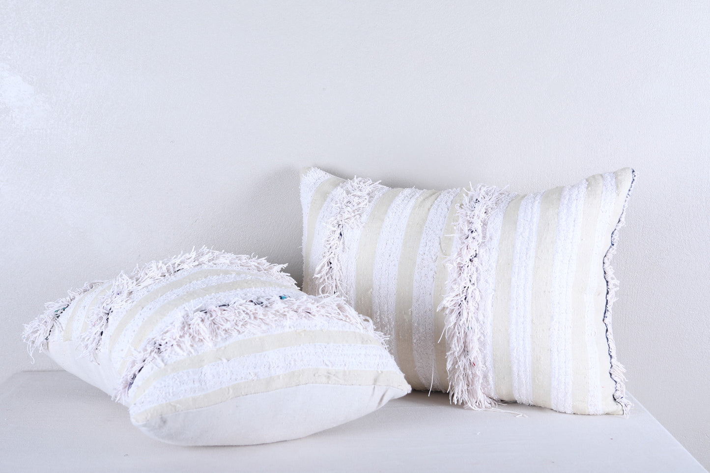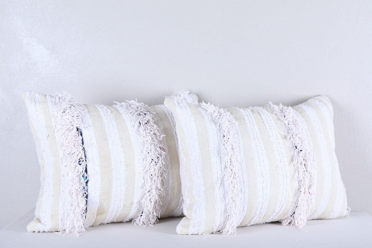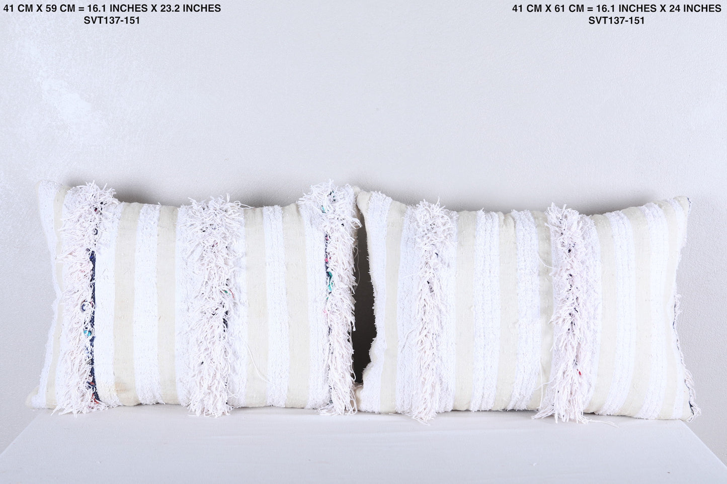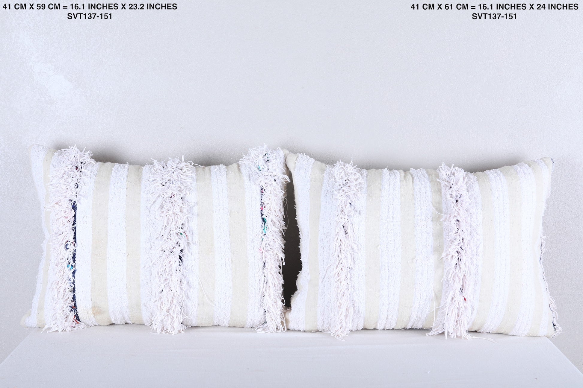 These two handwoven kilim pillows are made from carefully selected Moroccan wool. Each pillow is unique due to the intricate weaving patterns, adding a touch of style and sophistication to any room. They are comfortable, lightweight and durable, making them an excellent addition to any home.