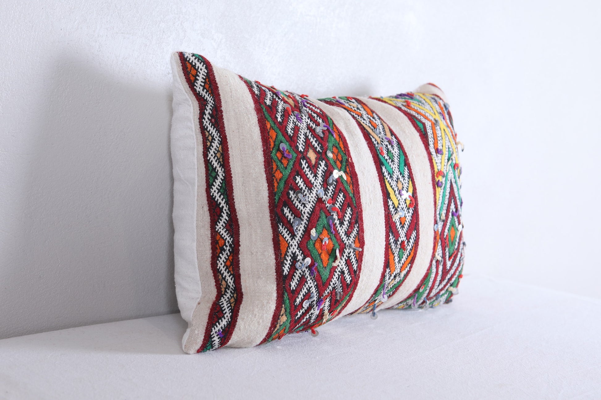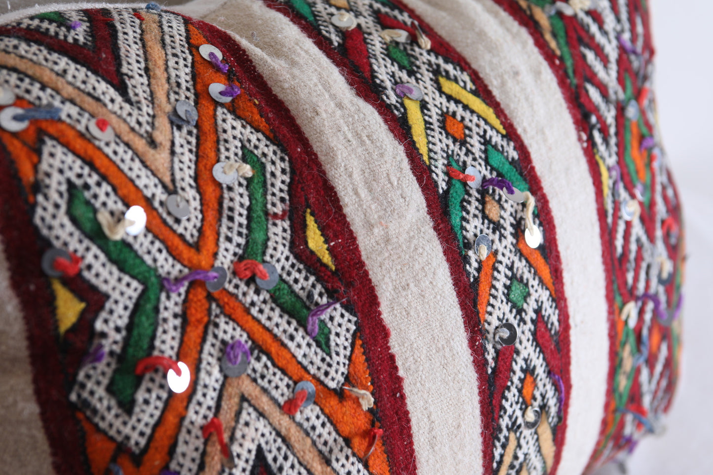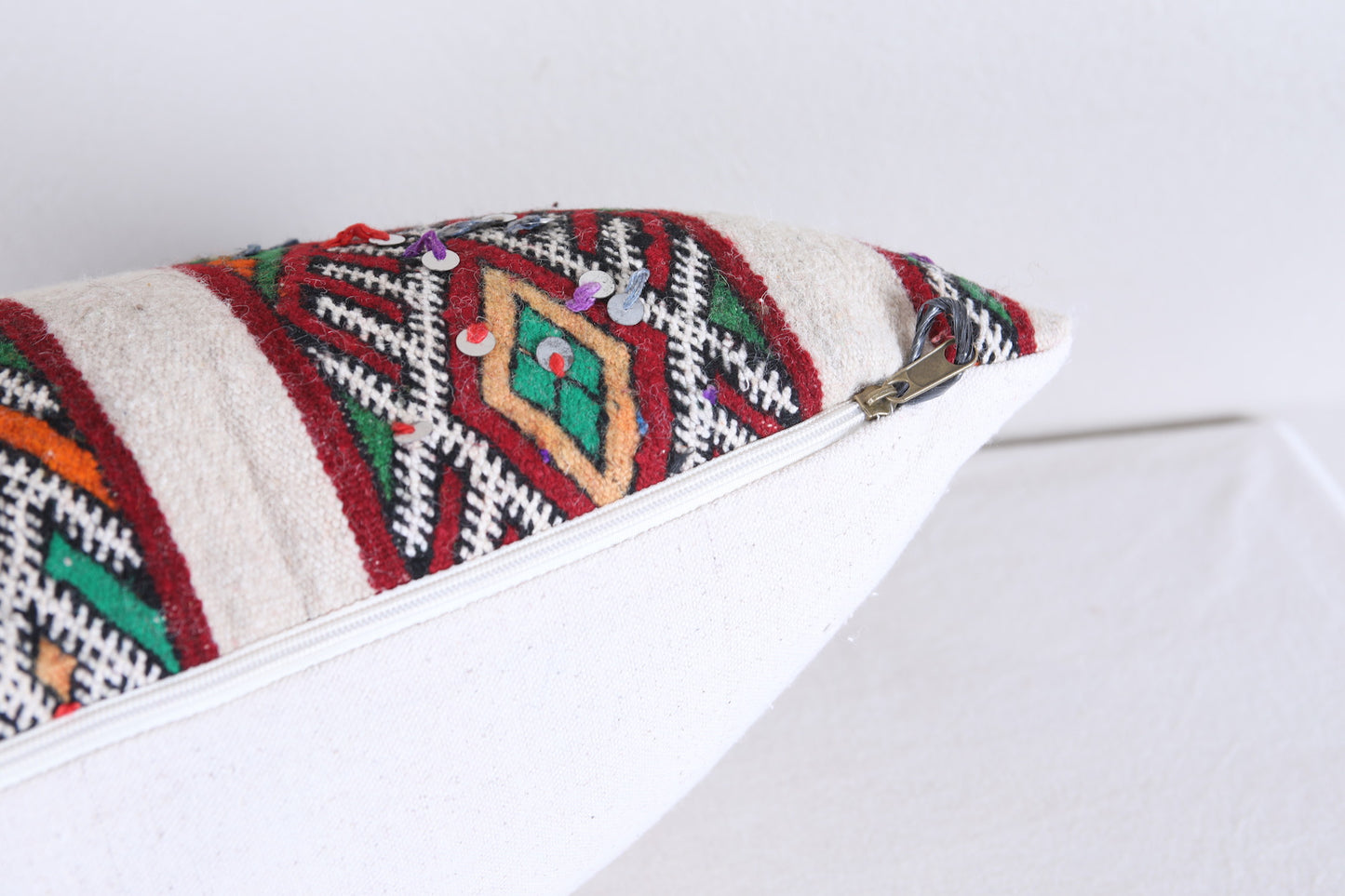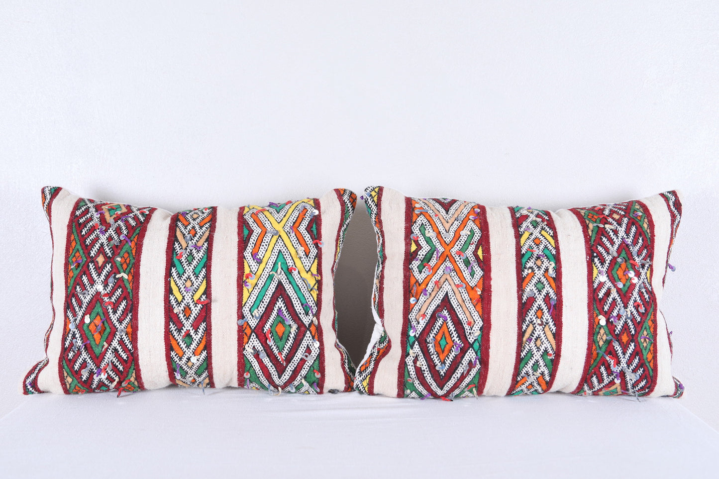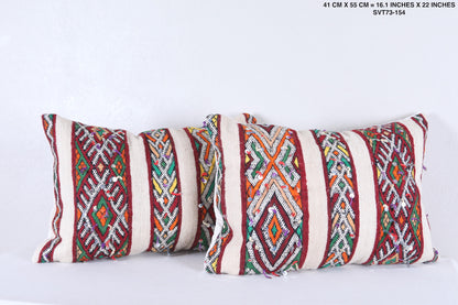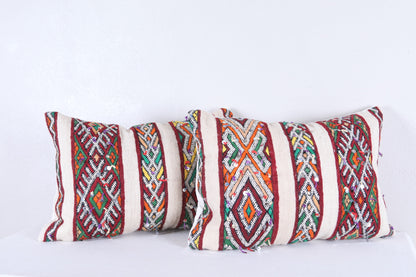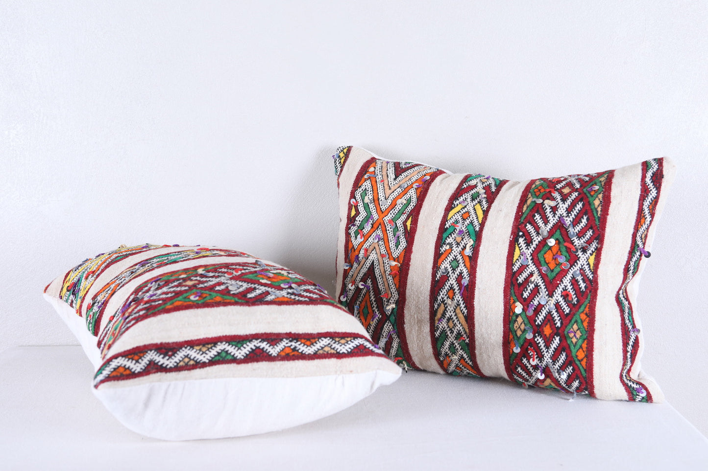 Add a stylish touch to your home décor with these two moroccan handwoven kilim pillows. Meticulously handwoven using traditional techniques and quality materials, these pillows will bring a touch of luxury and comfort to your home. The vivid colors and intricate patterns add unique visual character to any room. Perfect for those who appreciate traditional craftsmanship.