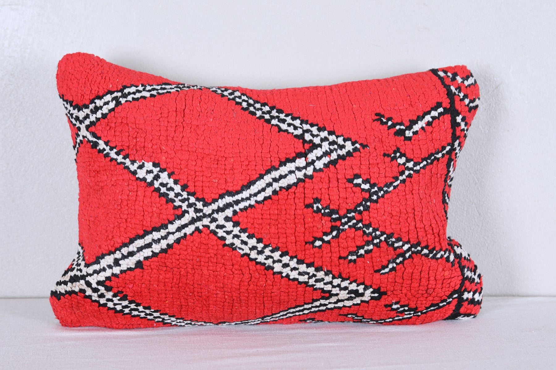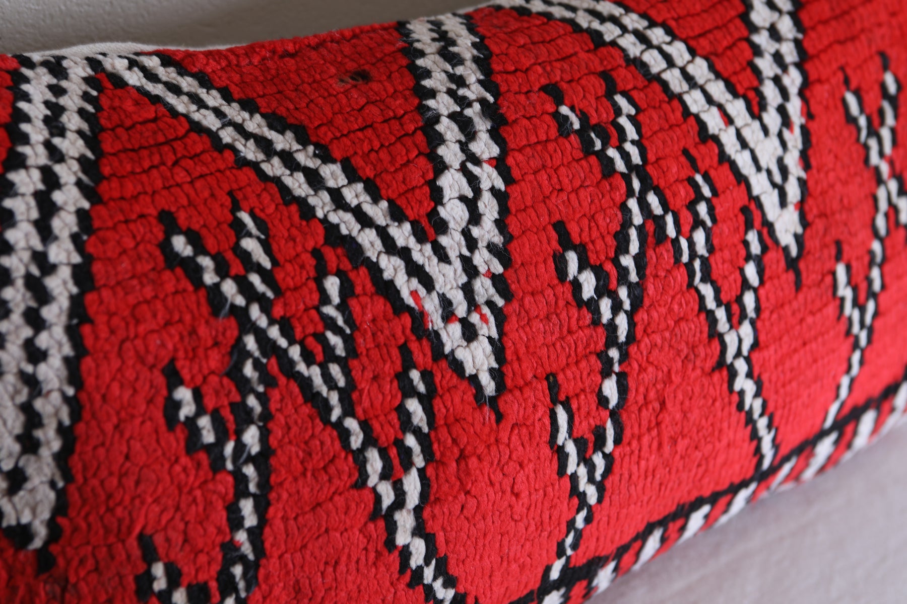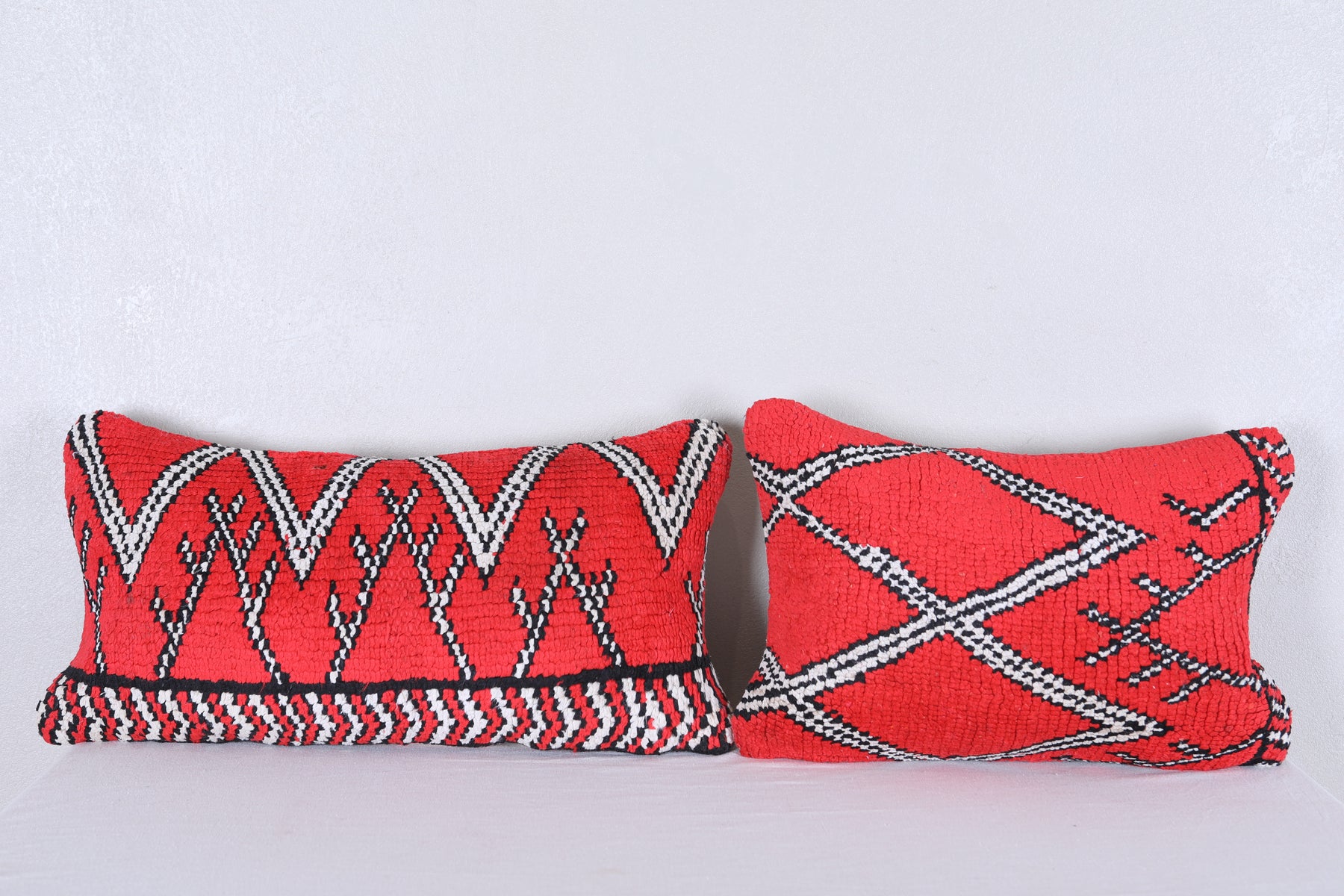 Enhance your home decor with this set of 2 beautifully crafted Handmade Vintage Red Moroccan Pillows. Expertly filled and adorned with unique rug details, these decorative pillows bring a touch of Morocco to any room. Each piece is one of a kind and adds a stylish and cozy element to your space. ] PILLOW 1 : 31 CM X 61 CM = 12.2 INCHES X 24 INCHES