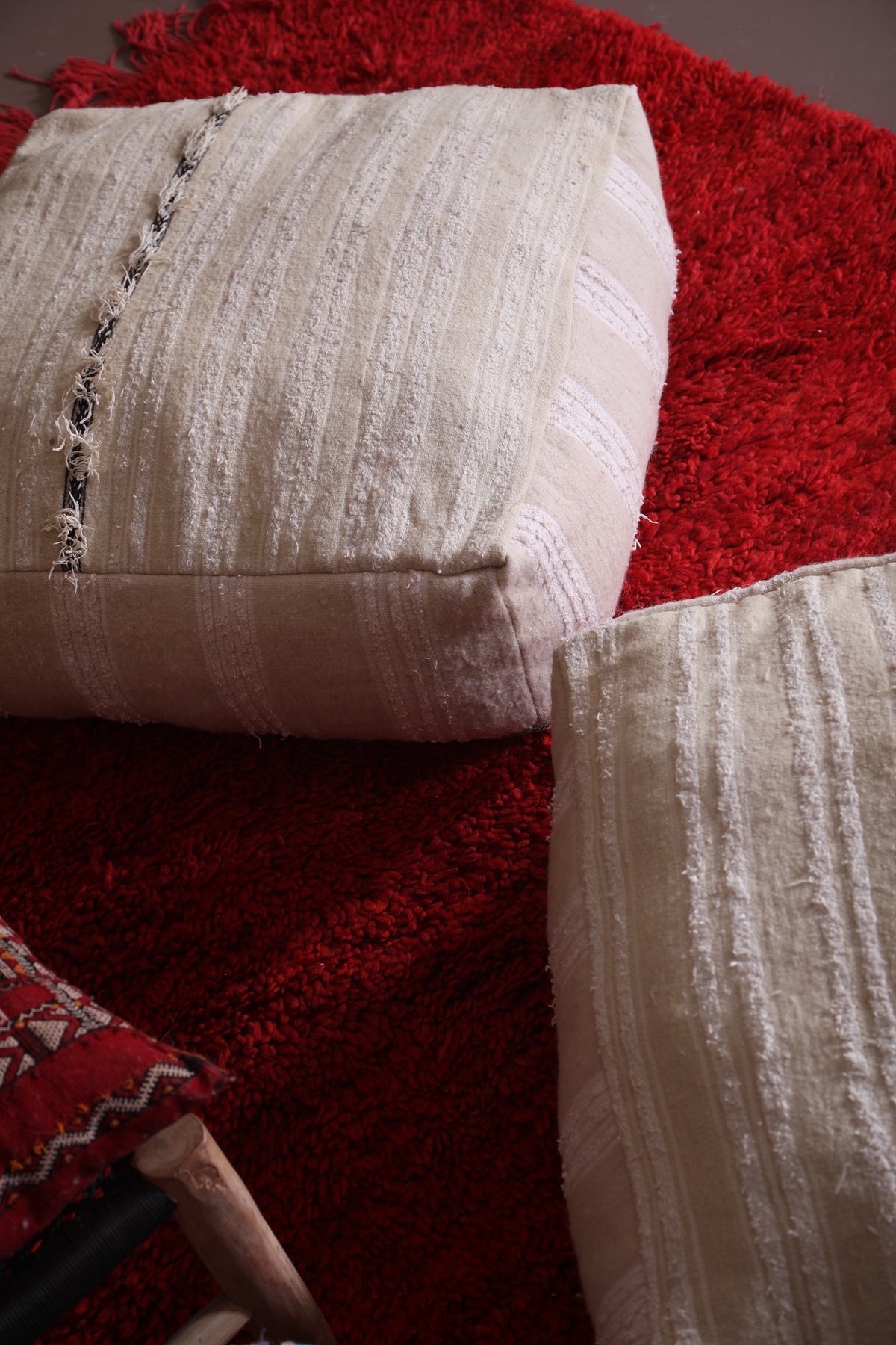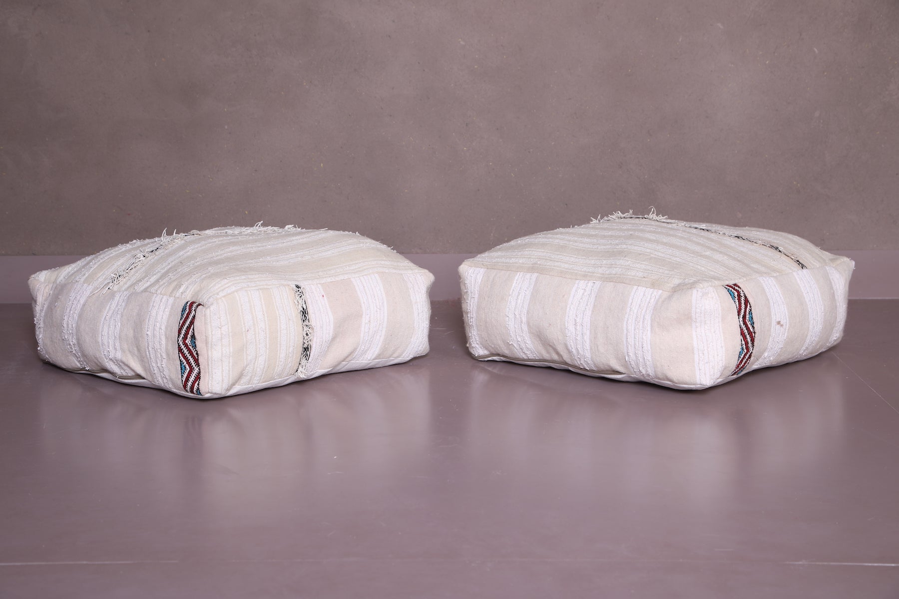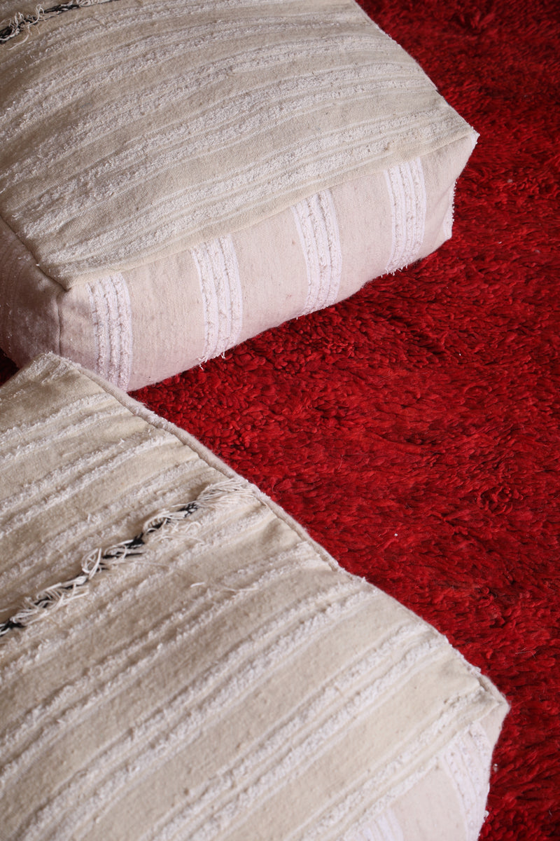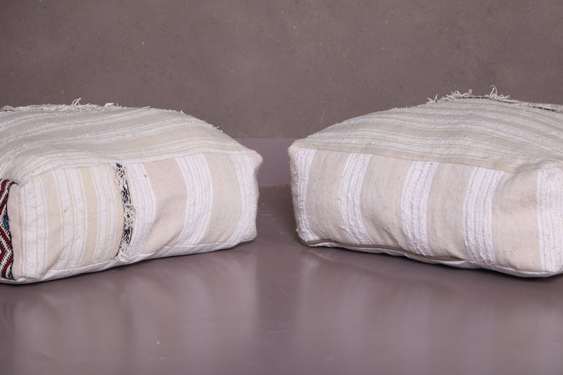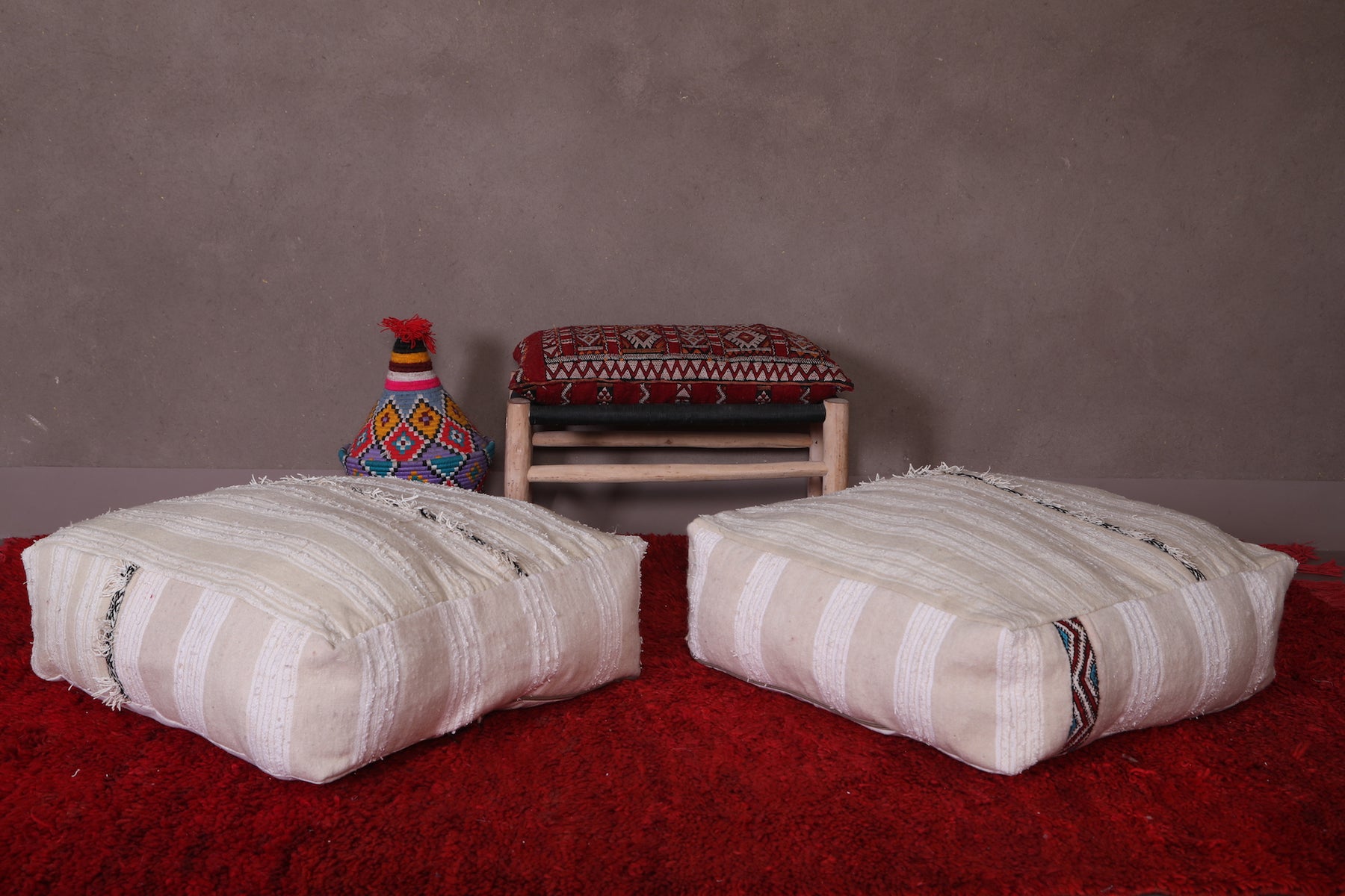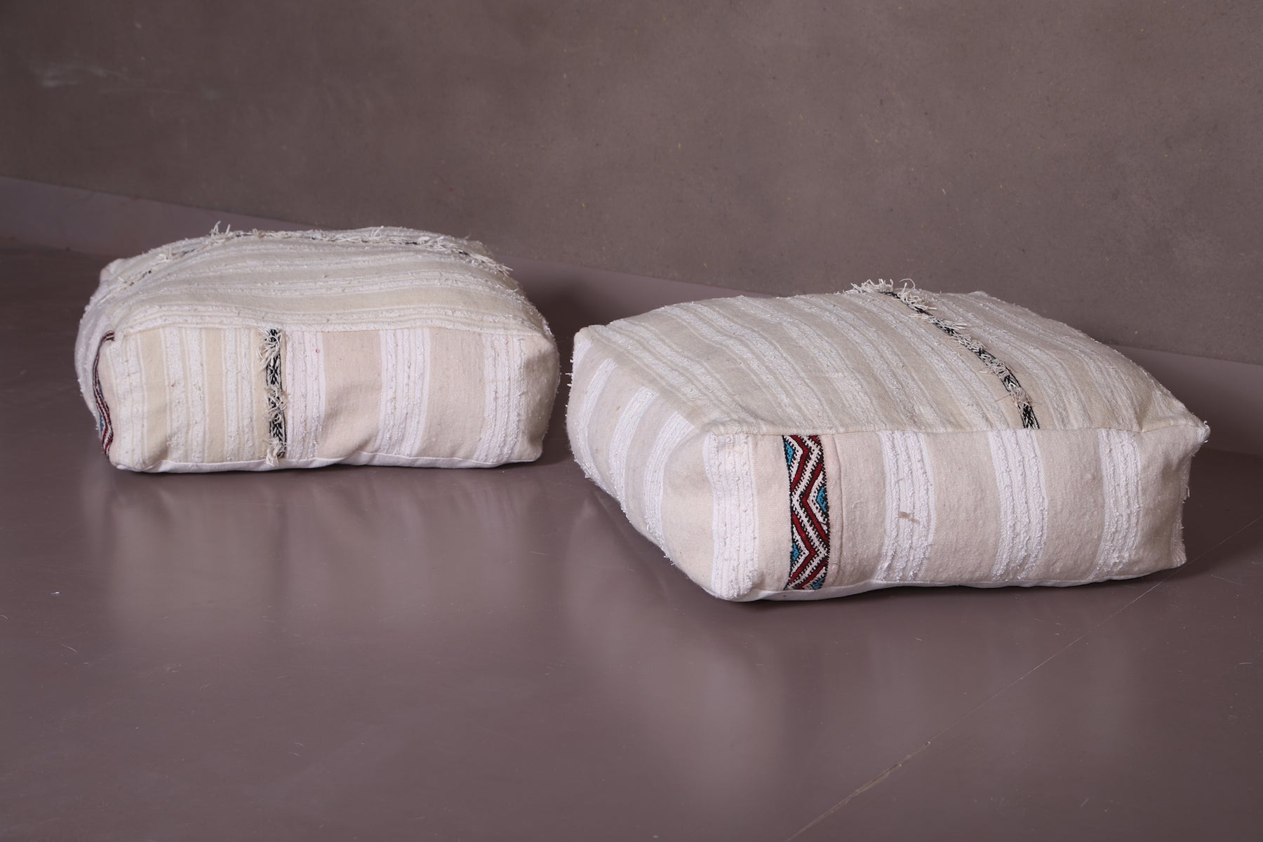 These twoMoroccan handwoven poufs are made by Very Old Moroccan rug.