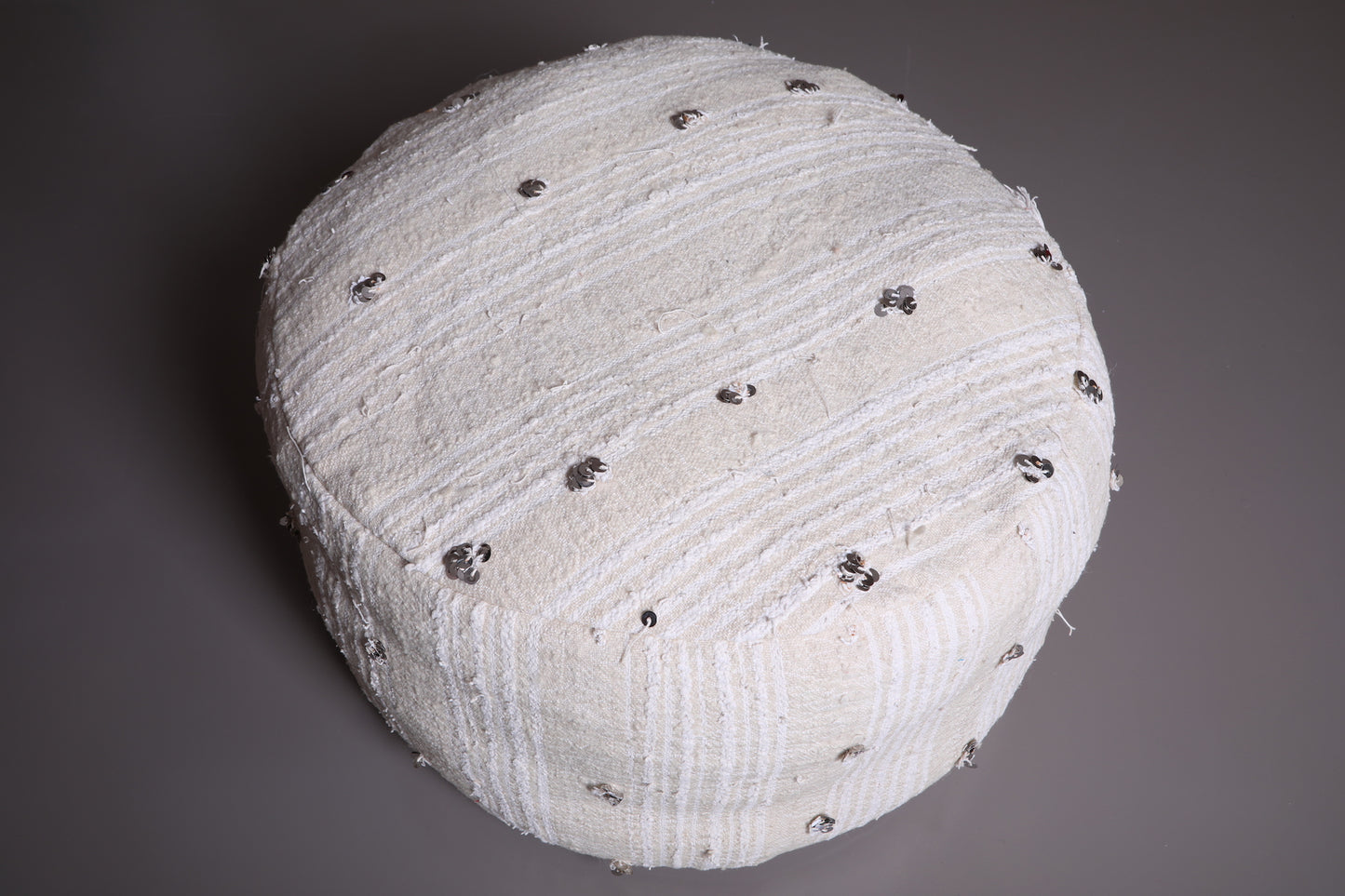 A beautiful example of Moroccan craftsmanship, these round poufs are versatile additions to any room—bringing warmth, culture, and subtle shine.