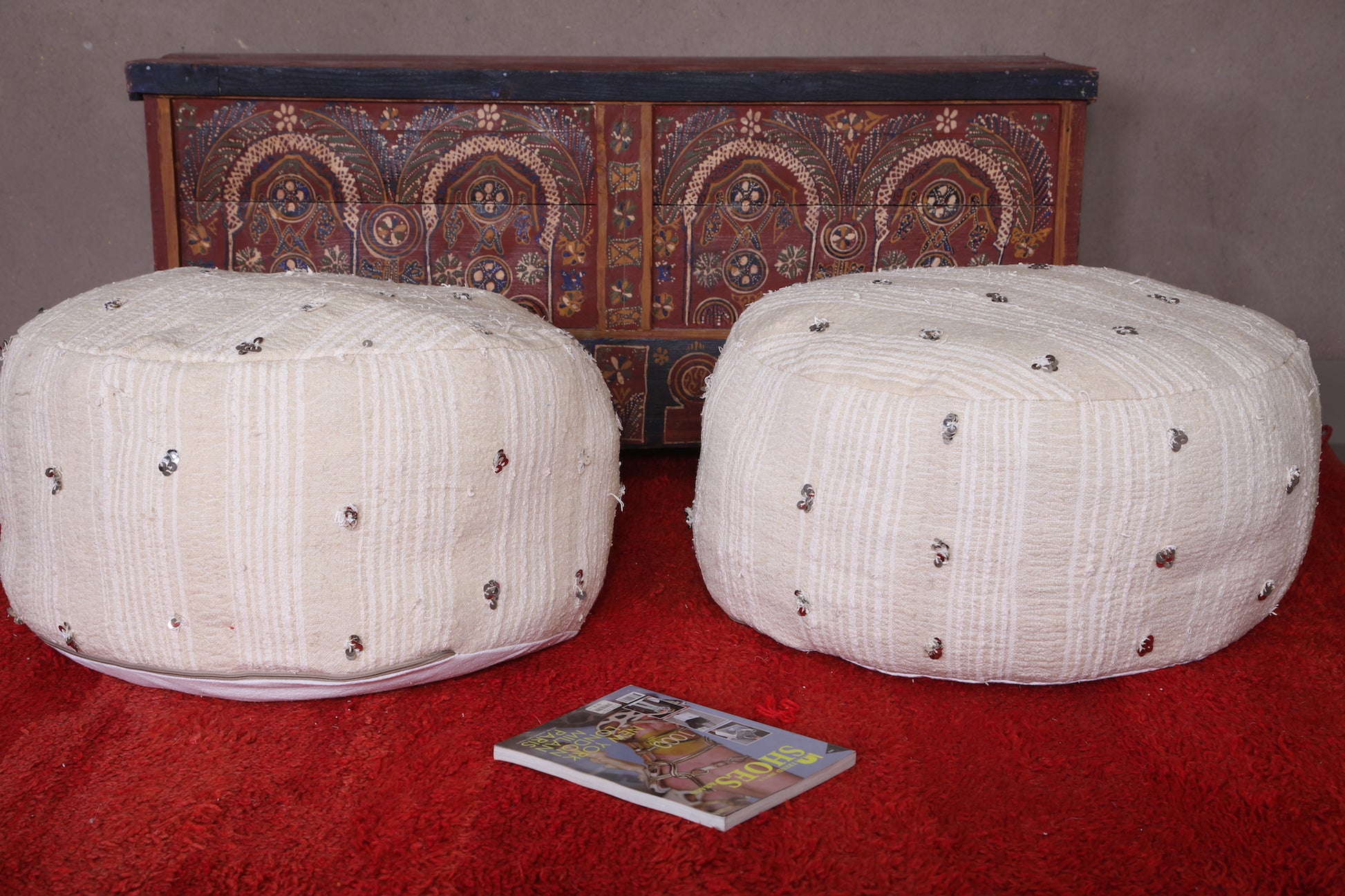 These two moroccan Round poufs are made by Very Old moroccan rug.