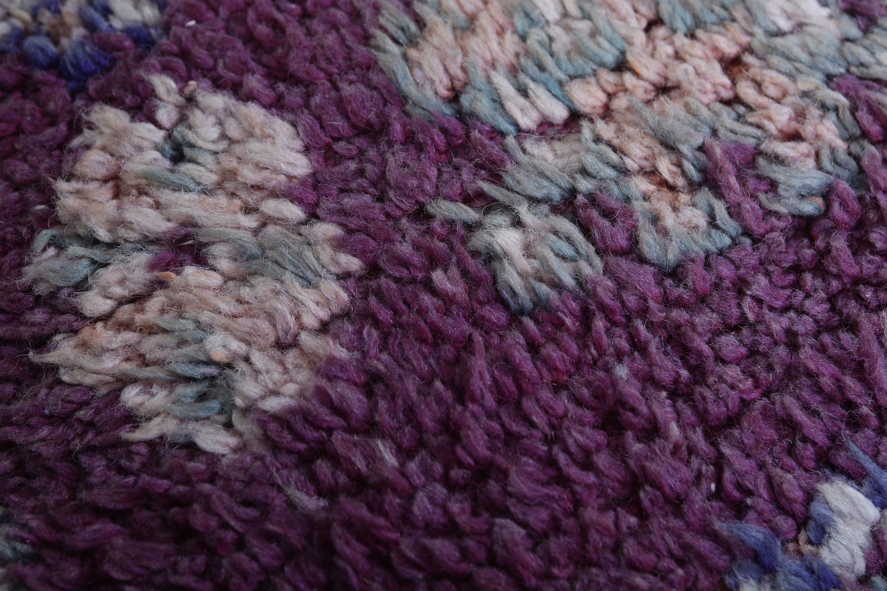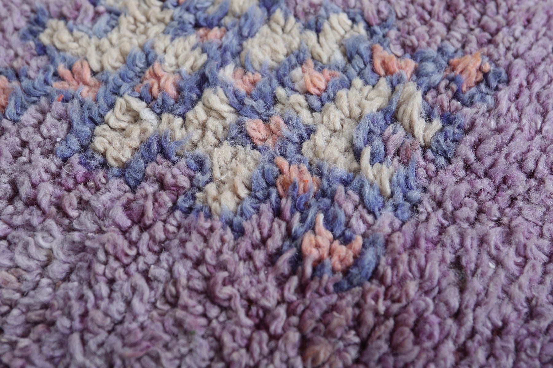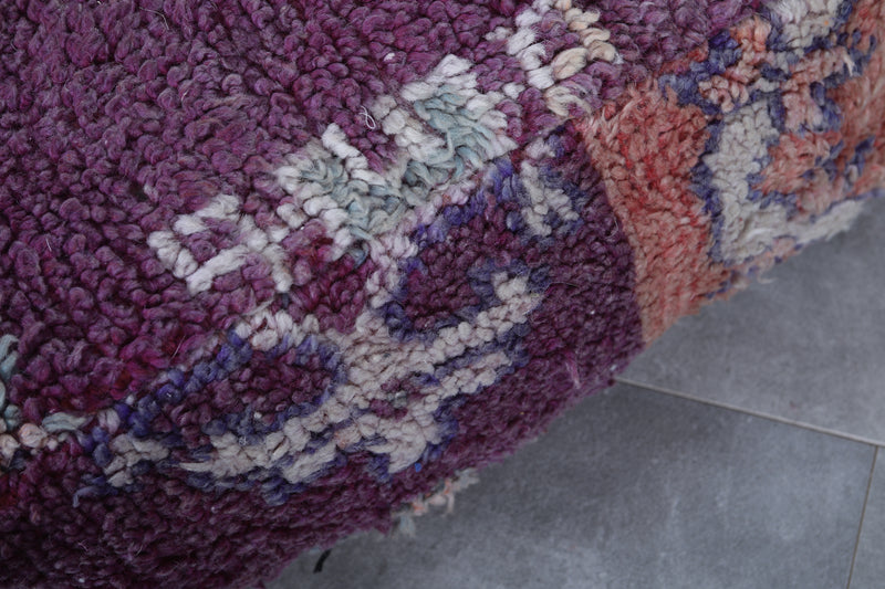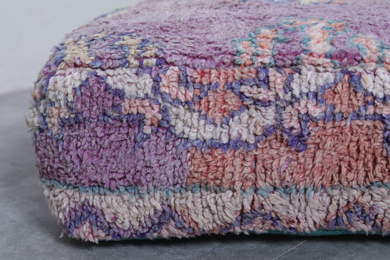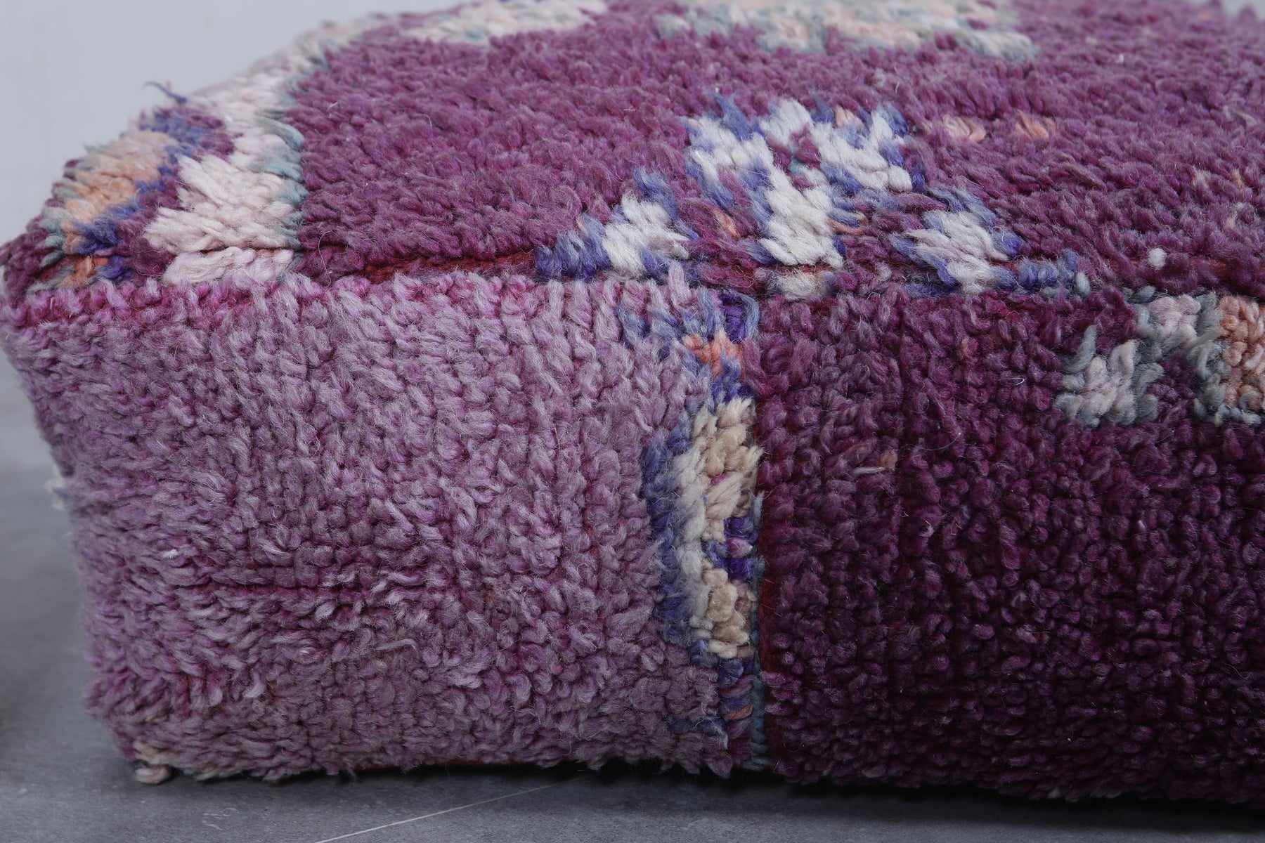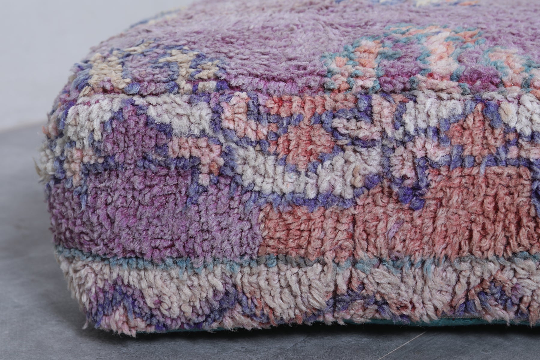 Add a burst of color and texture to your space with this set of two Moroccan vintage ottoman poufs, handcrafted from repurposed Boucherouite rugs. These one-of-a-kind floor cushions blend vivid purples, soft peach tones, and intricate tribal patterns—each piece telling its own story through bold hues and abstract Berber symbolism. Whether placed in a cozy reading nook or as extra seating in a living room, they deliver both style and comfort.