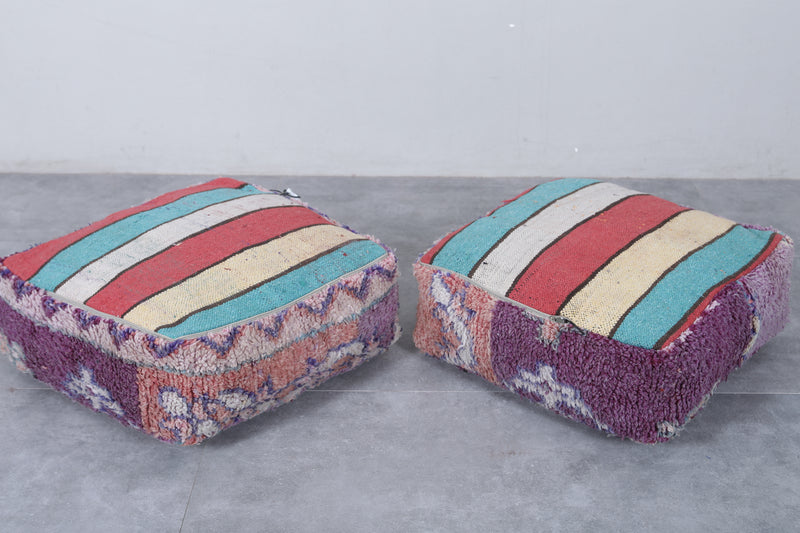 Two Moroccan vintage ottoman pouf - kilim pouf