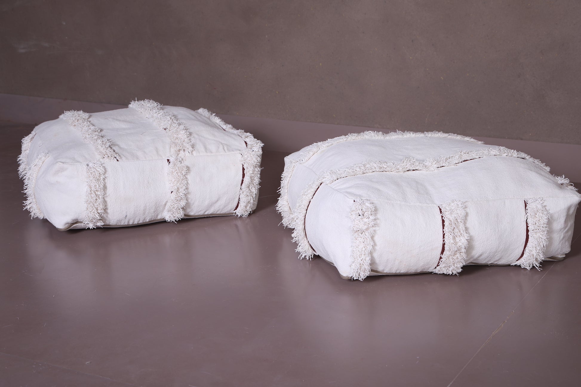 These two handwoven Berber poufs are made by a Very Old Moroccan rug.