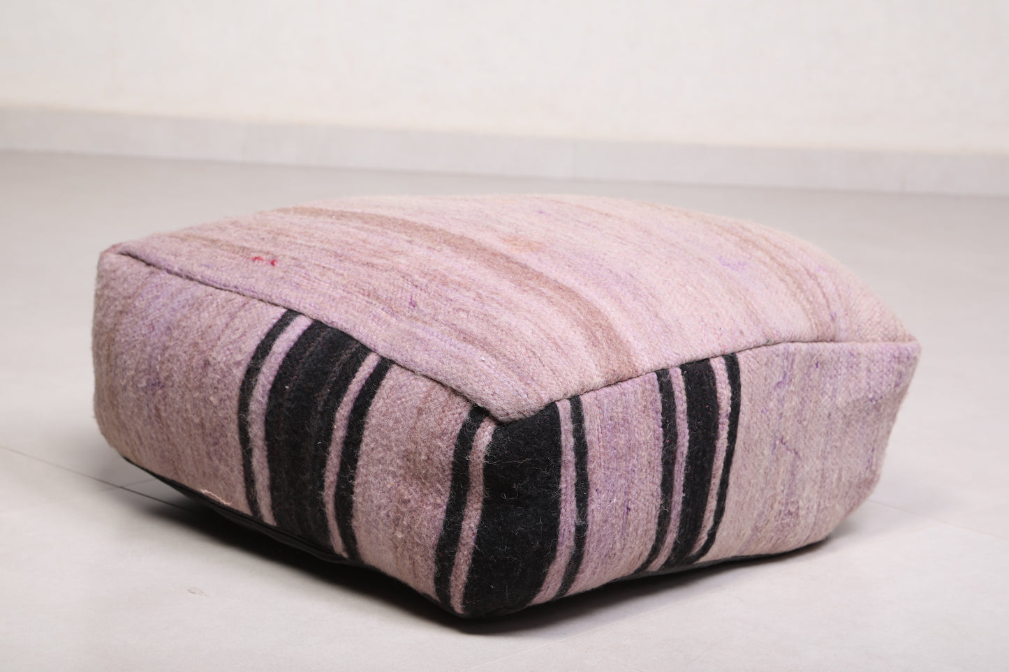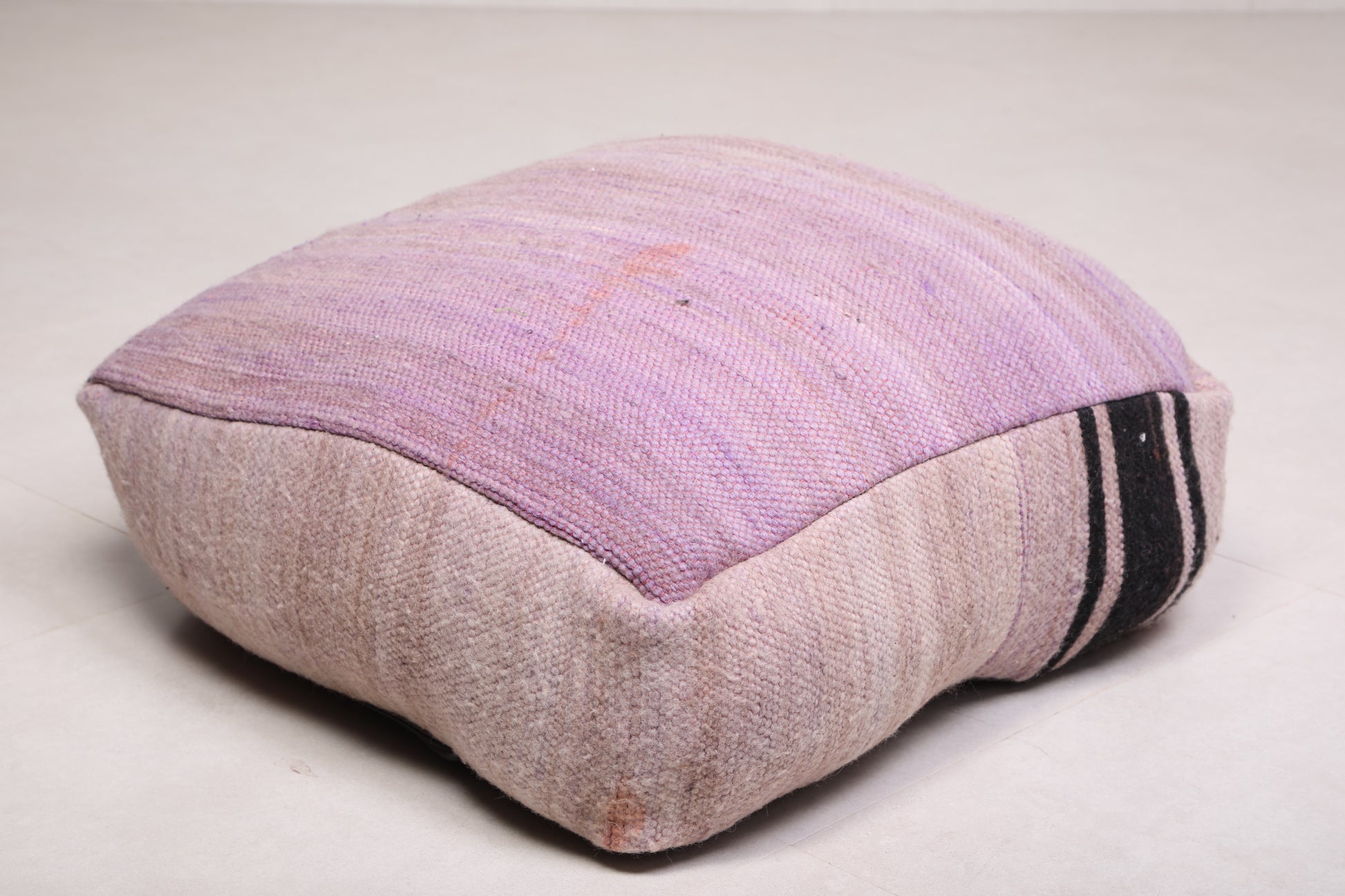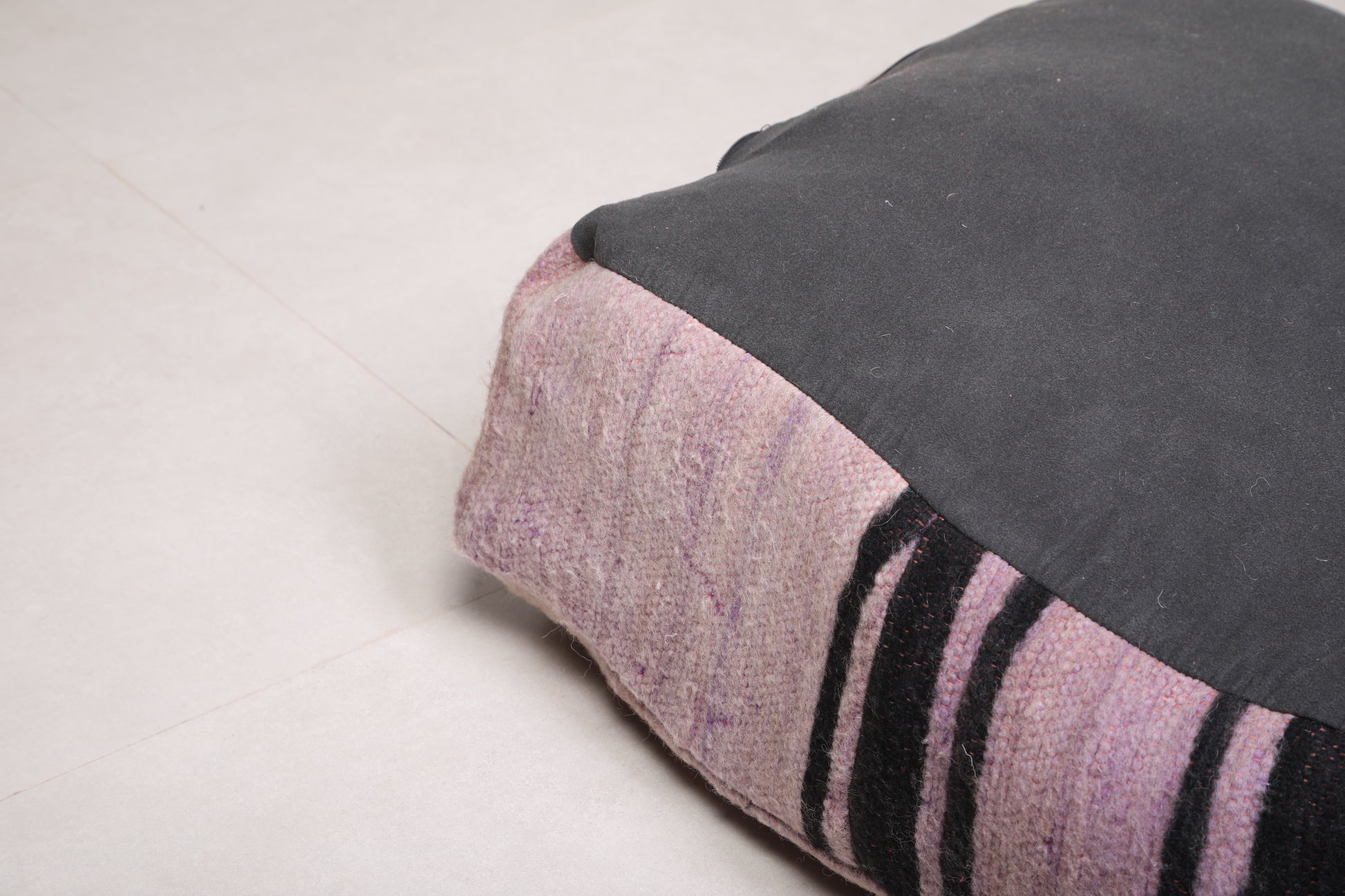 Add a soft bohemian charm to your home with this stunning pair of handmade Moroccan Kilim poufs in dusty purple tones. Handcrafted from vintage wool textiles, each pouf offers a subtle blend of earthy lavender, blush, and black striping—perfect for grounding your space with understated texture.