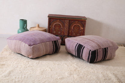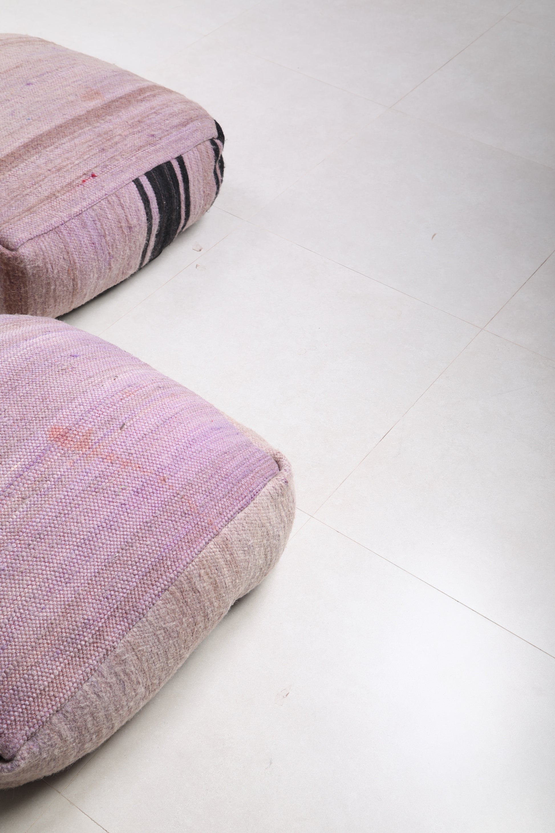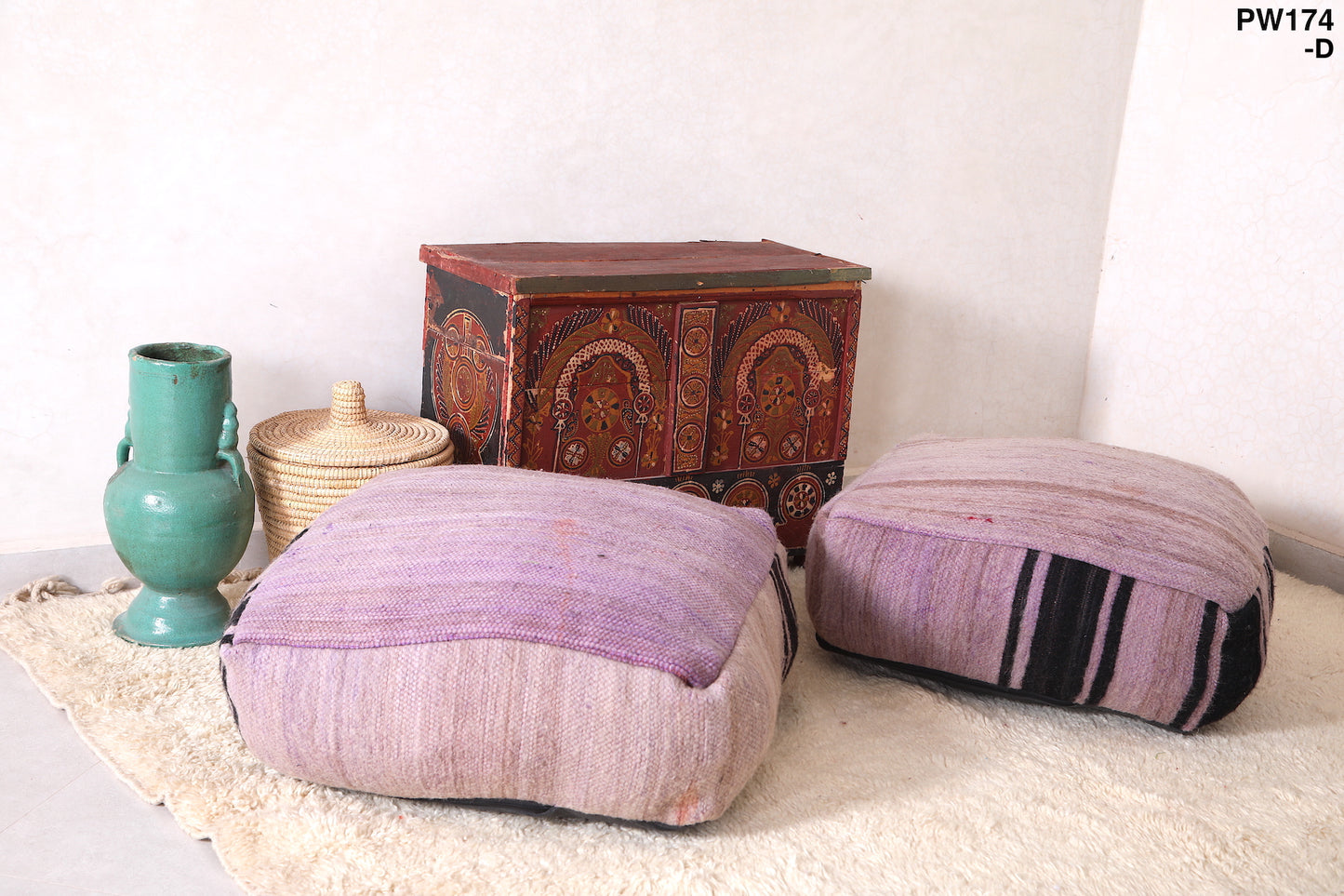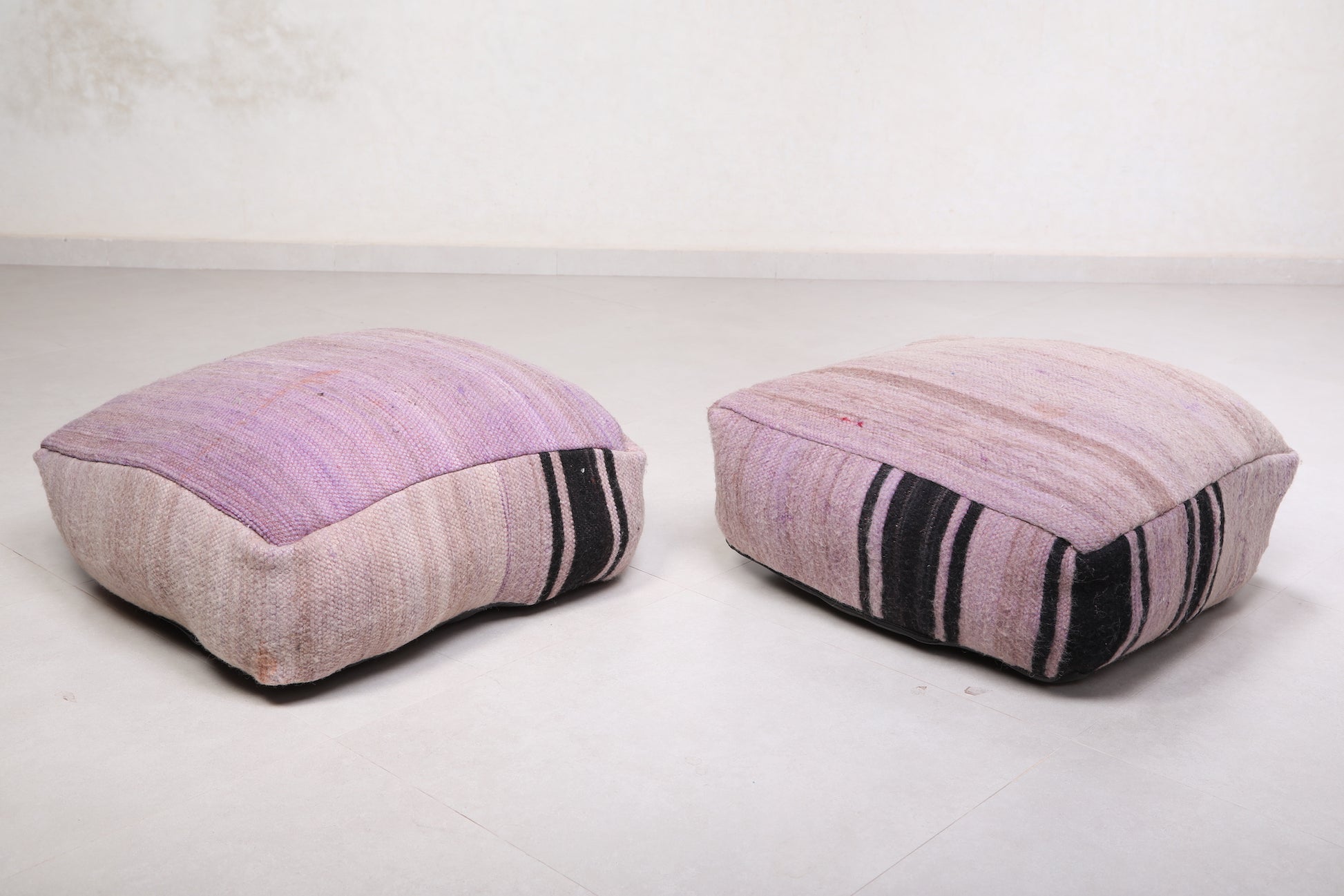 These two moroccan kilim poufs are made by a Very Old Moroccan rug.