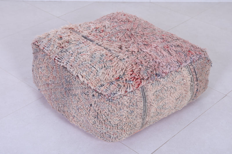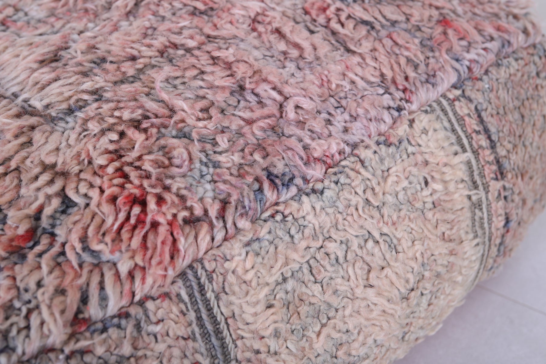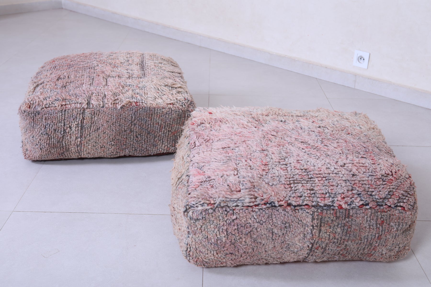 Elevate your seating area with this subtle and timeless pair of vintage Moroccan poufs, handmade from soft-hued Boucherouite rugs. With a gentle mix of blush, peach, and dusty blue tones, these poufs bring warmth and texture into your space while keeping the aesthetic refined and neutral. Their light palette and delicate detailing make them ideal for minimal, Scandinavian, or boho-chic interiors.