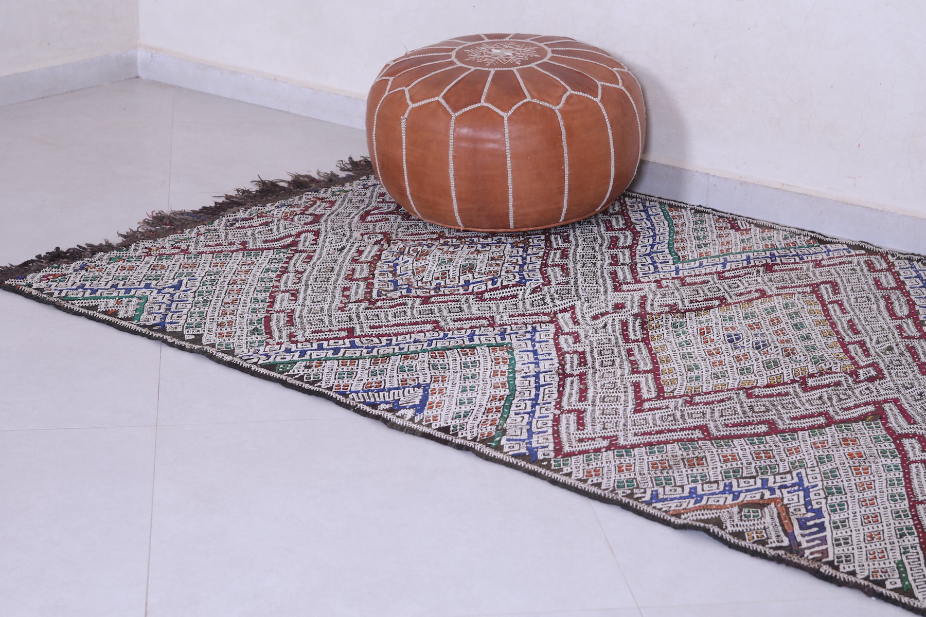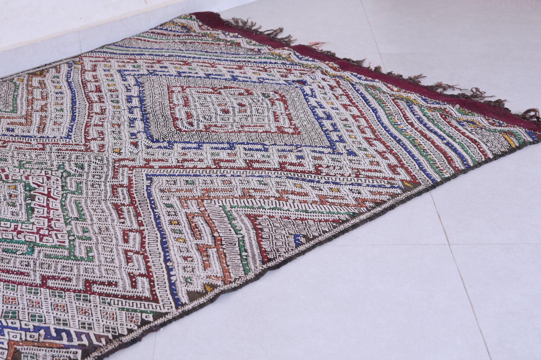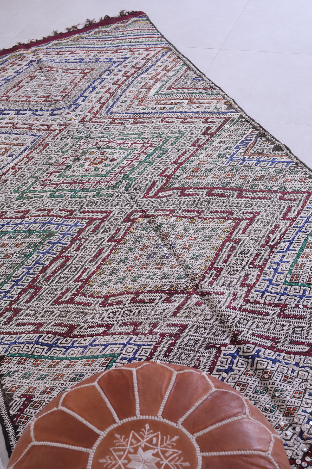 - Showcases traditional Berber motifs with multicolored accents.