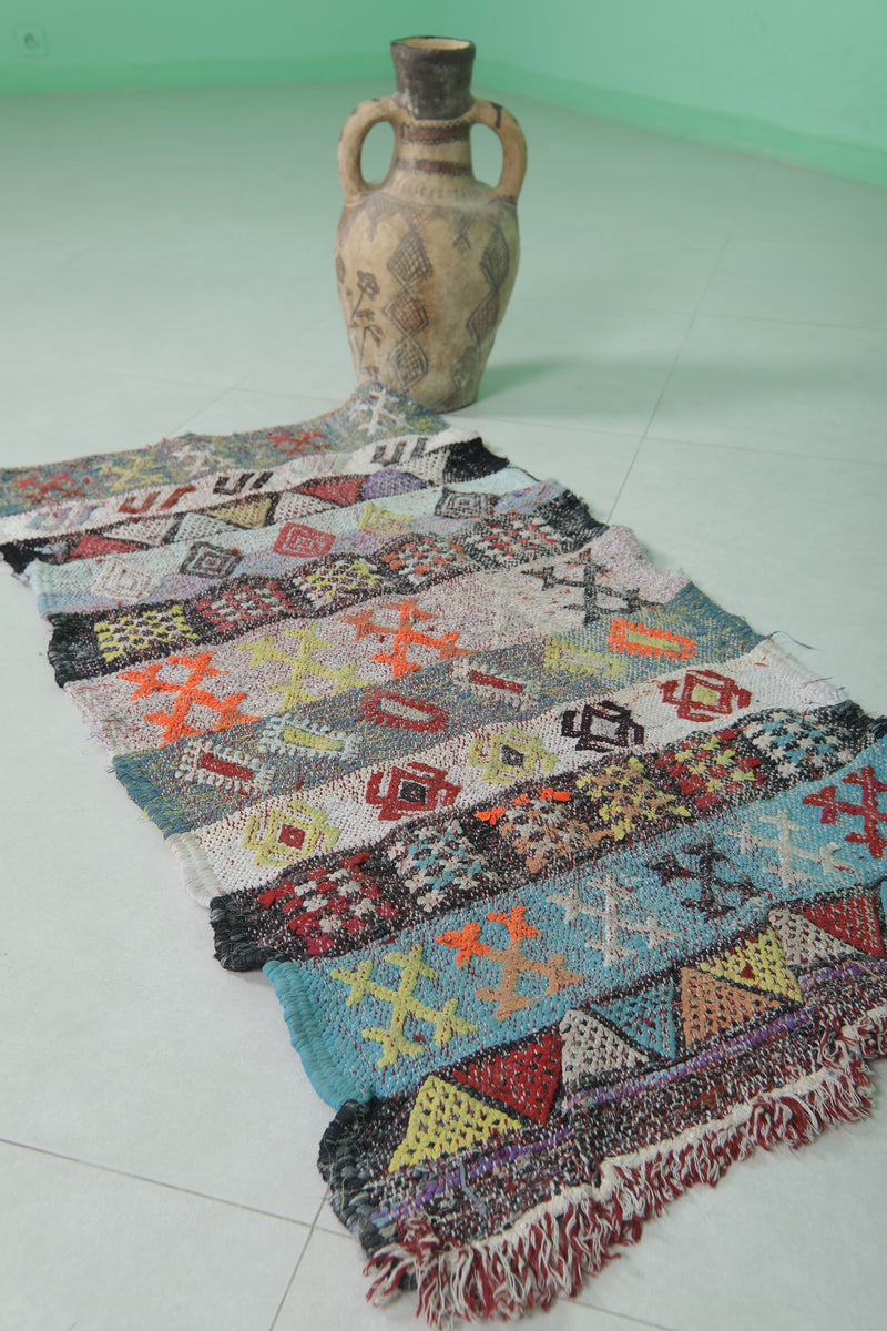 Vibrant Handwoven Kilim Hallway Rug – 1.9 FT x 3.8 FT