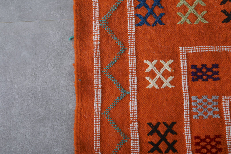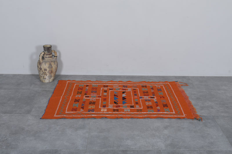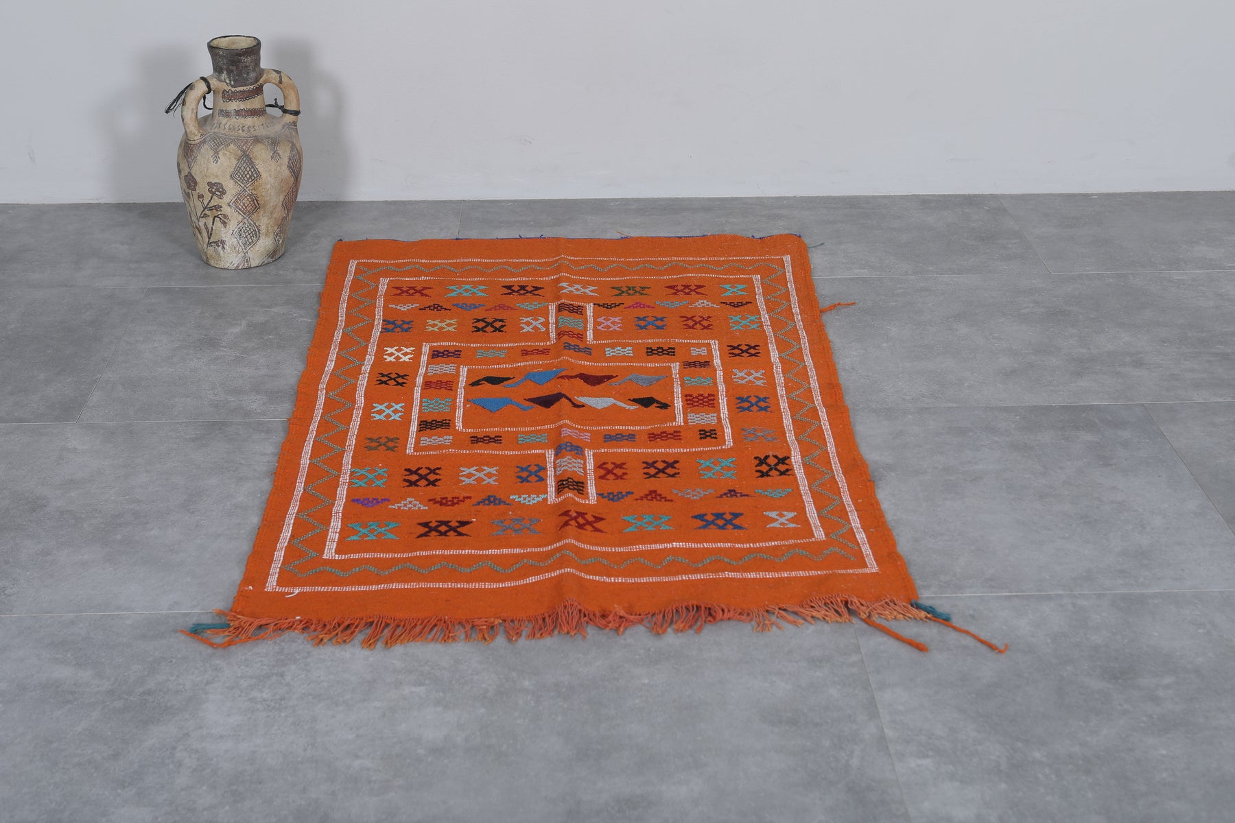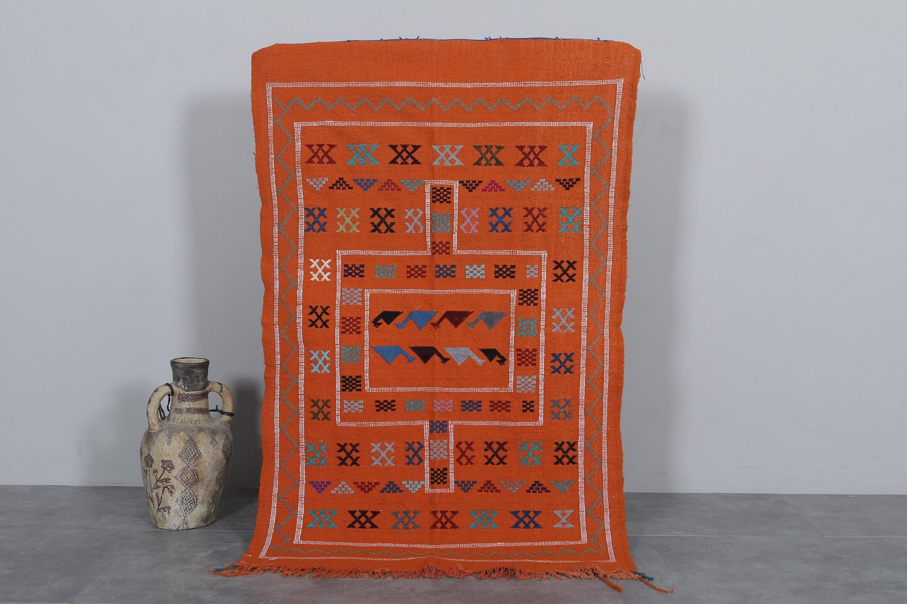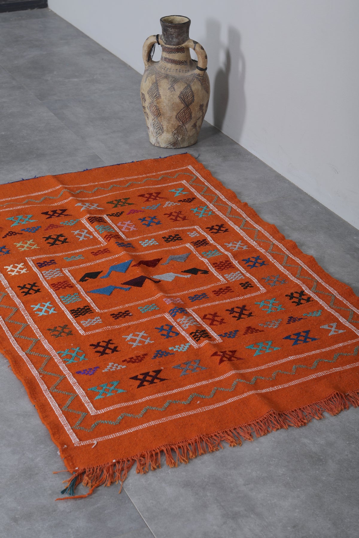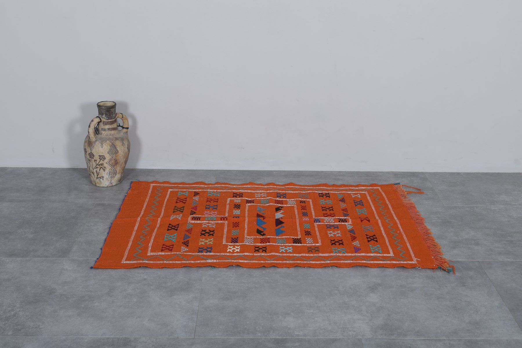 Vibrant Handwoven Kilim Rug - Orange Geometric Pattern | 3 FT X 4.9 FT