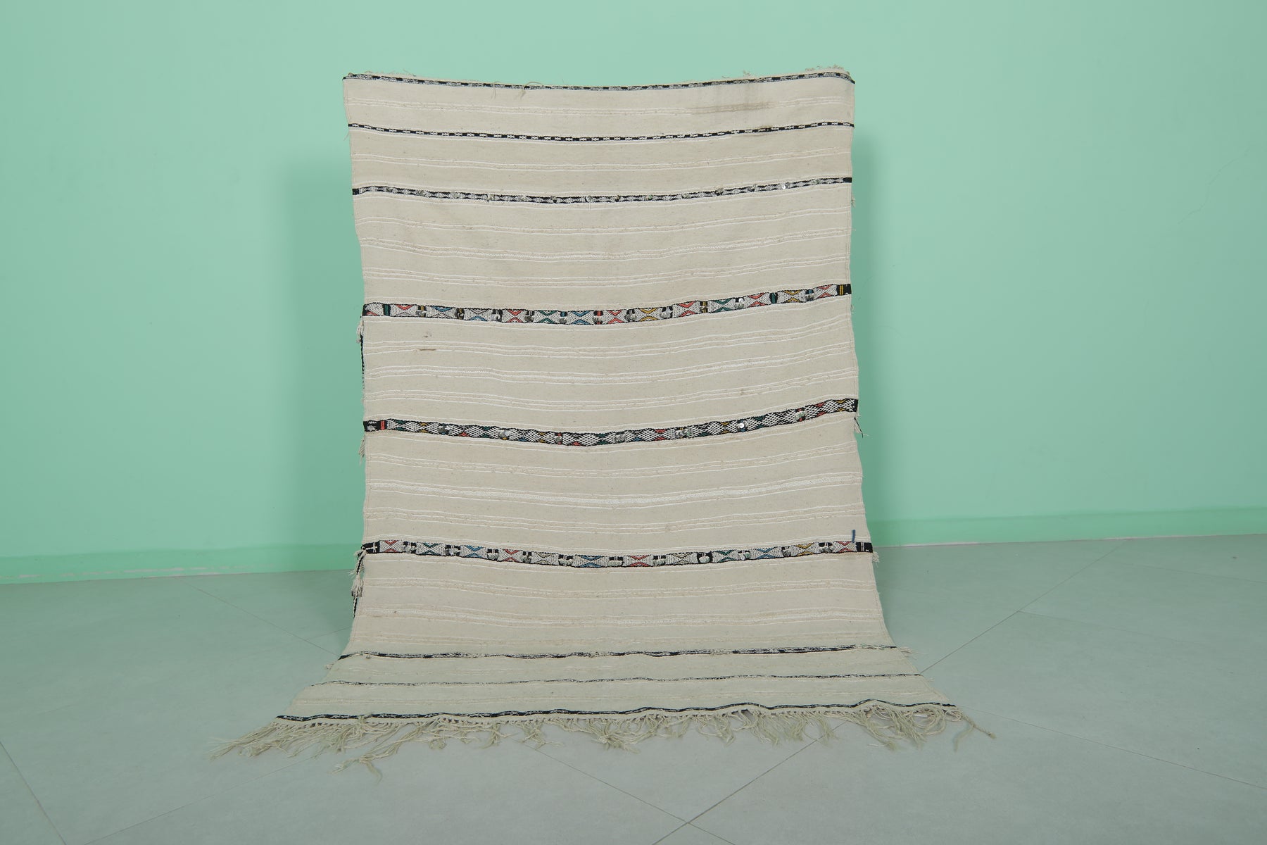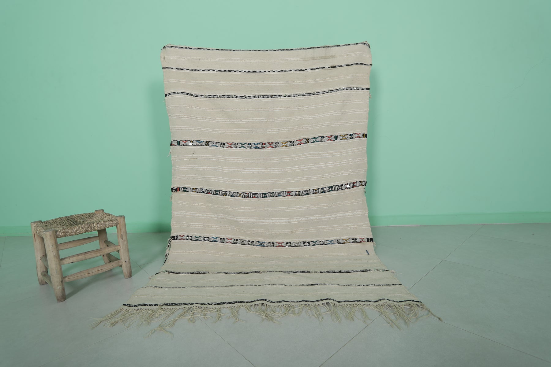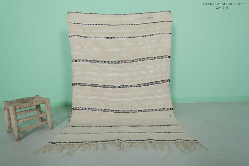 Vintage Berber Blanket Rug 3.8 x 5.6 ft | Handwoven Moroccan Textile