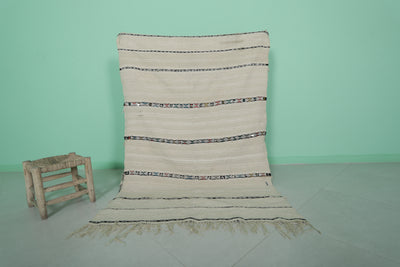 Add a timeless touch to your space with this Vintage Berber Blanket Rug. Measuring 3.8 FT x 5.6 FT, this handwoven Moroccan textile blends traditional craftsmanship with understated elegance—perfect for use as a throw, wall hanging, or cozy accent piece.