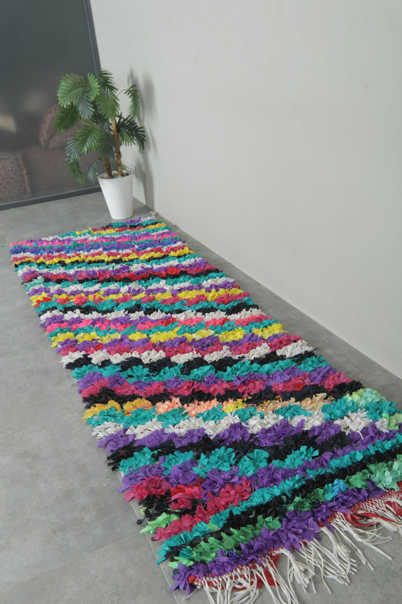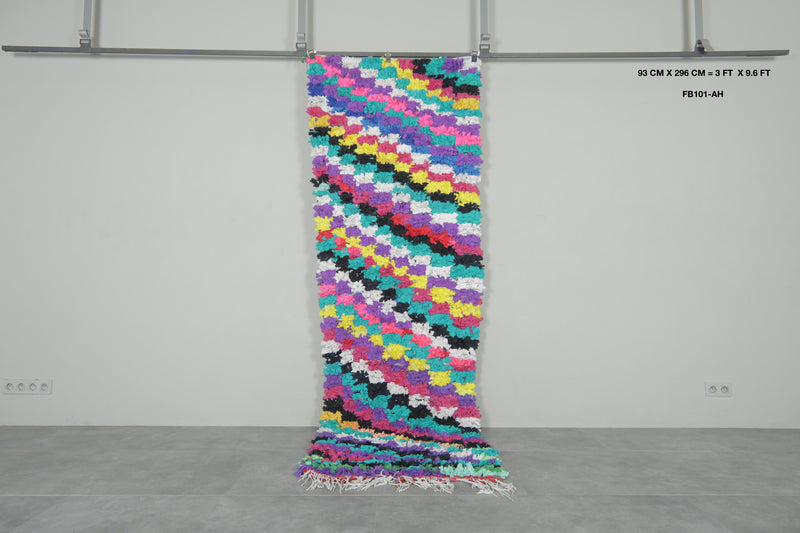 Rainbow Wave Boucherouite Runner – 3 x 9.6 ft Handwoven Moroccan rug