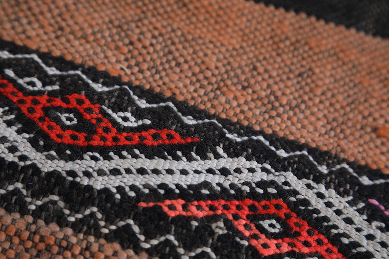 This 5 FT x 8.6 FT Vintage Berber Kilim Rug showcases traditional Moroccan artistry with bold colors and timeless patterns. Handwoven with care, it’s the perfect piece to elevate your living room, hallway, or bedroom.