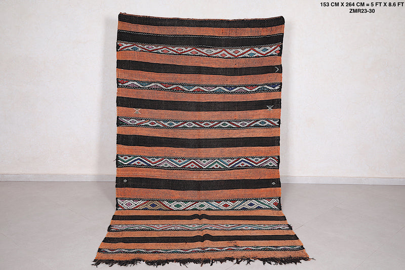 Vintage Berber Kilim Rug - Handwoven Moroccan Beauty | 5ft x 8.6ft