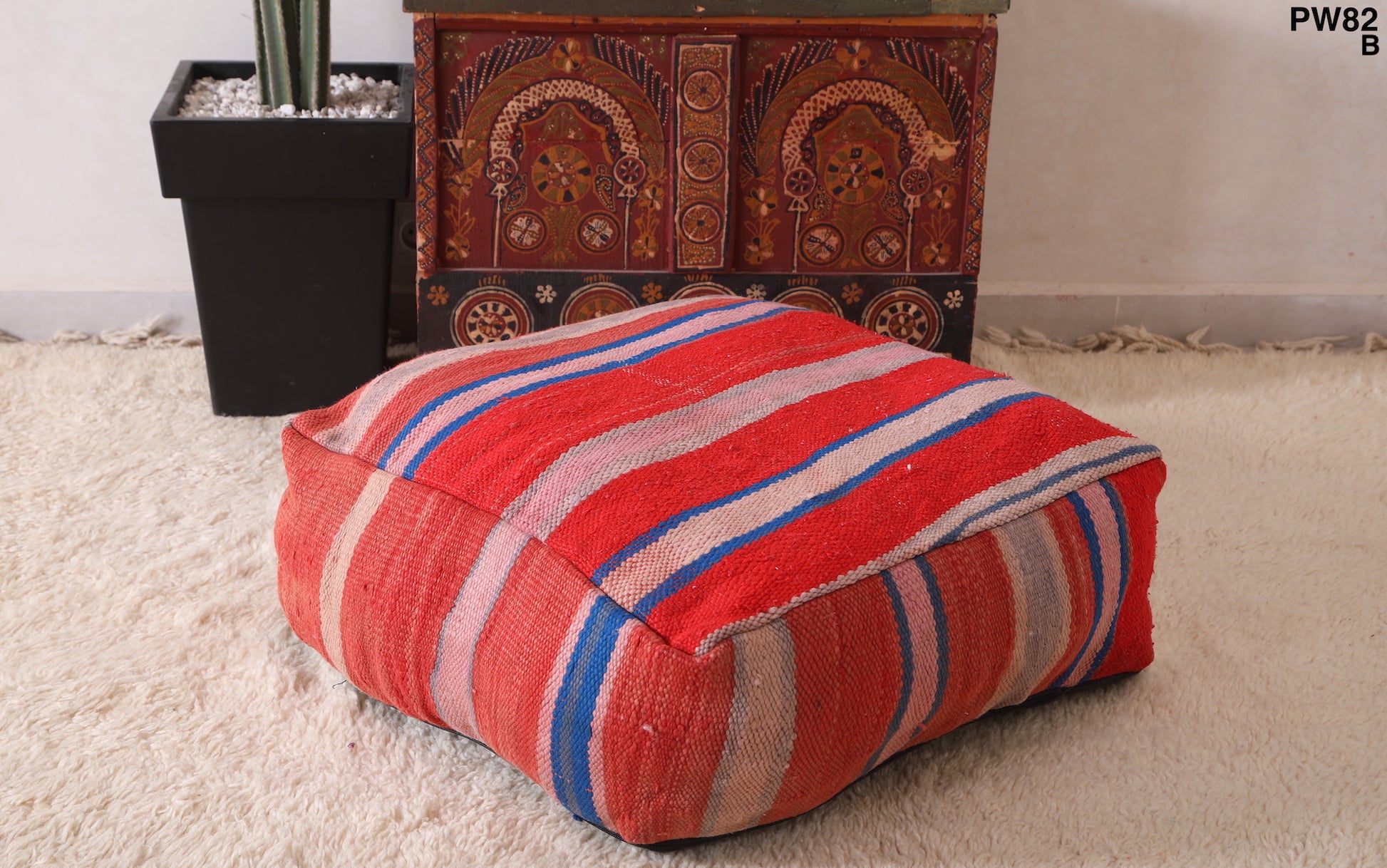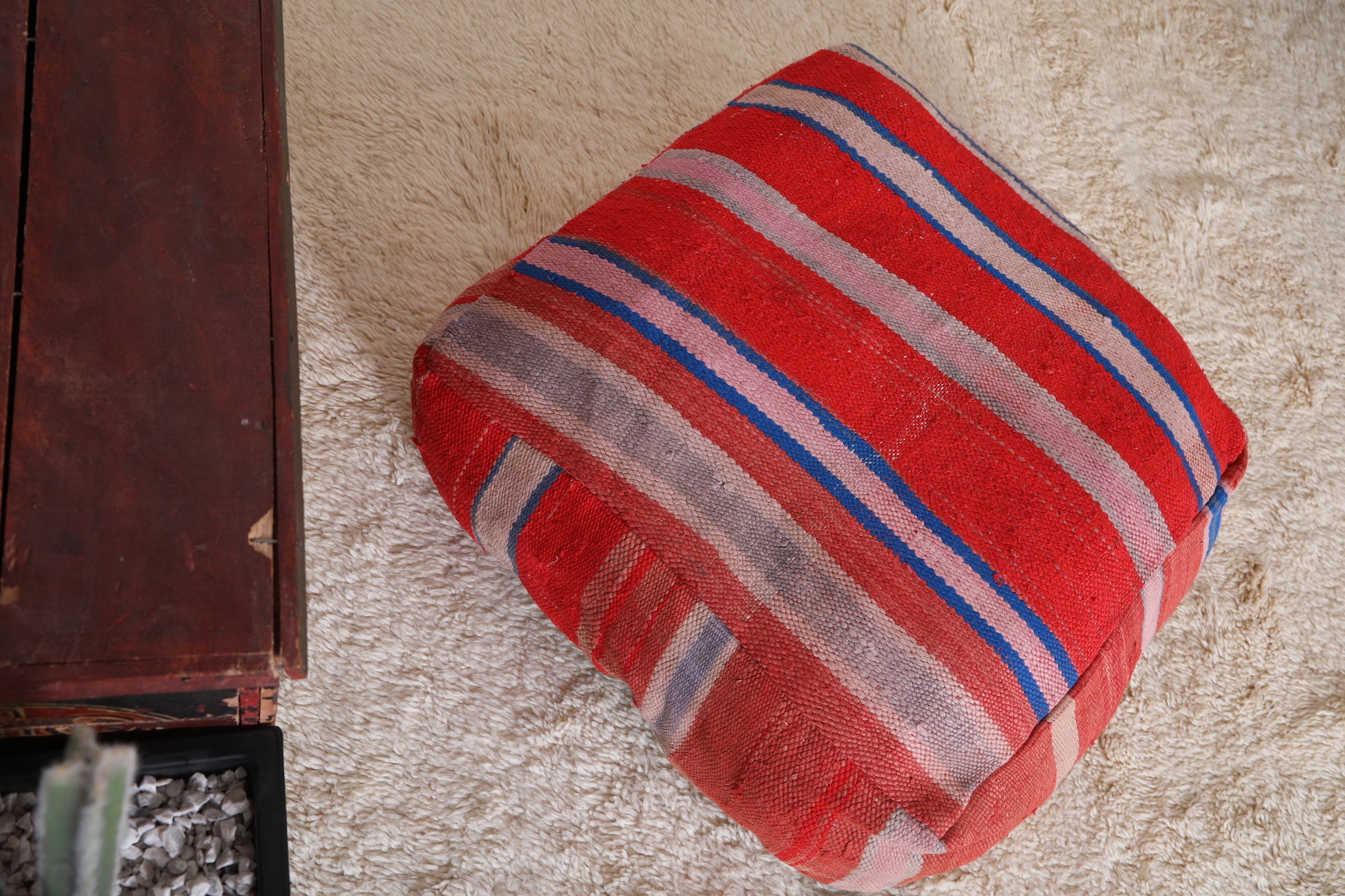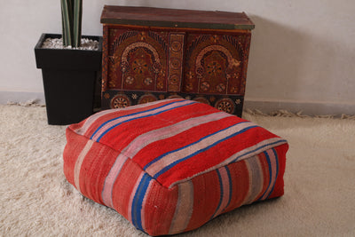 This vintage Moroccan red rug pouf is made from a Very Old Moroccan rug.