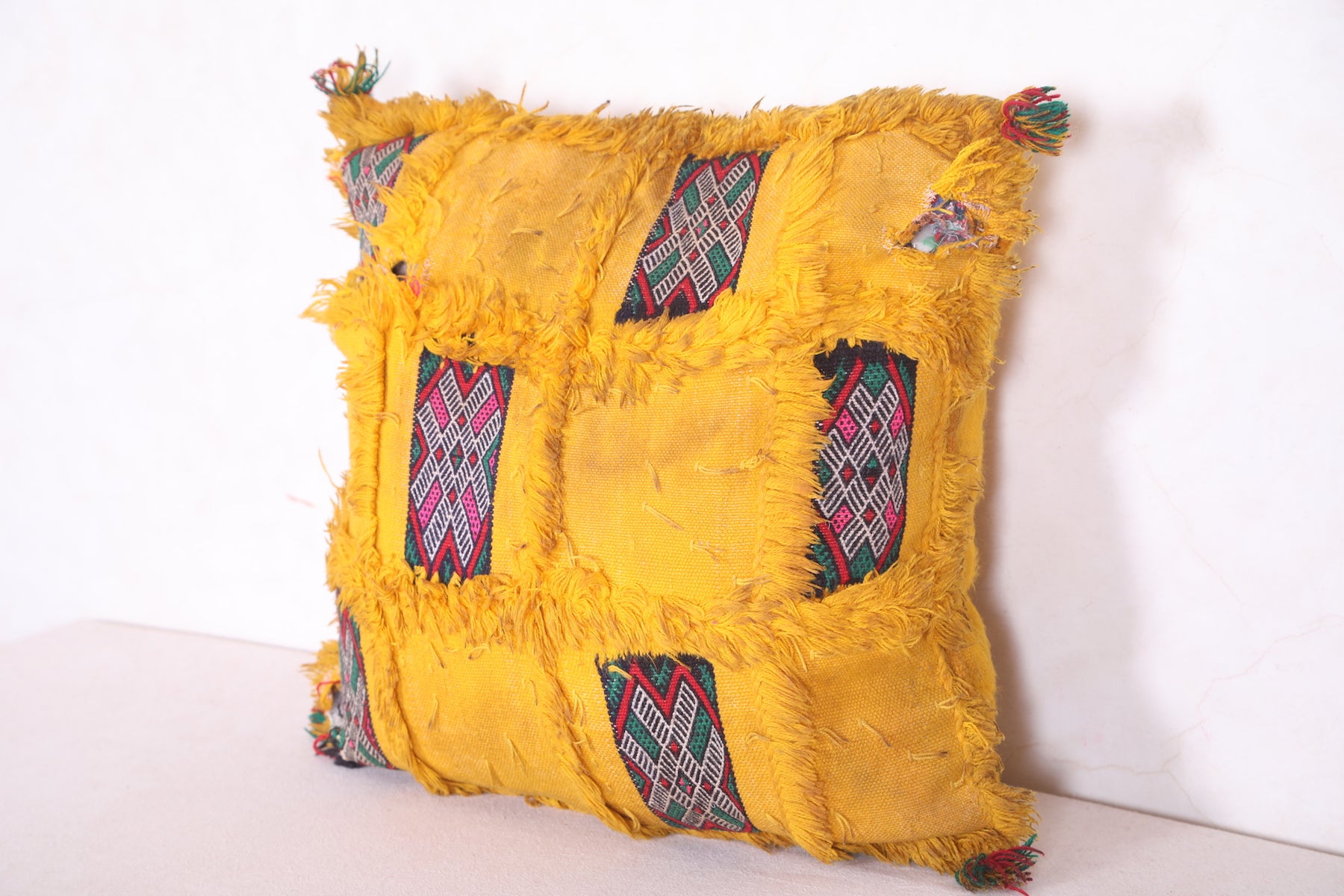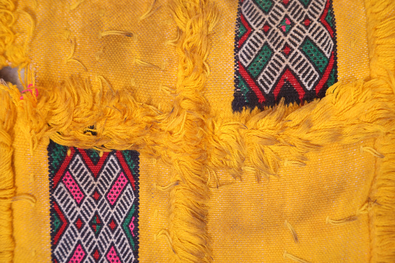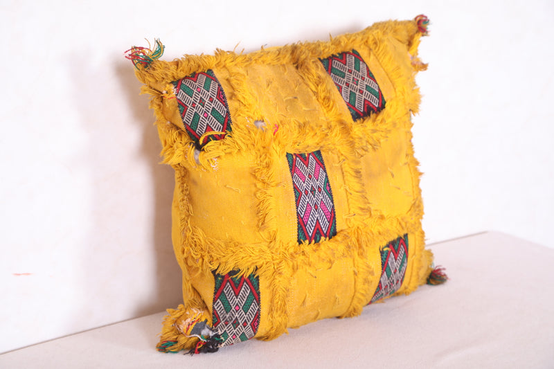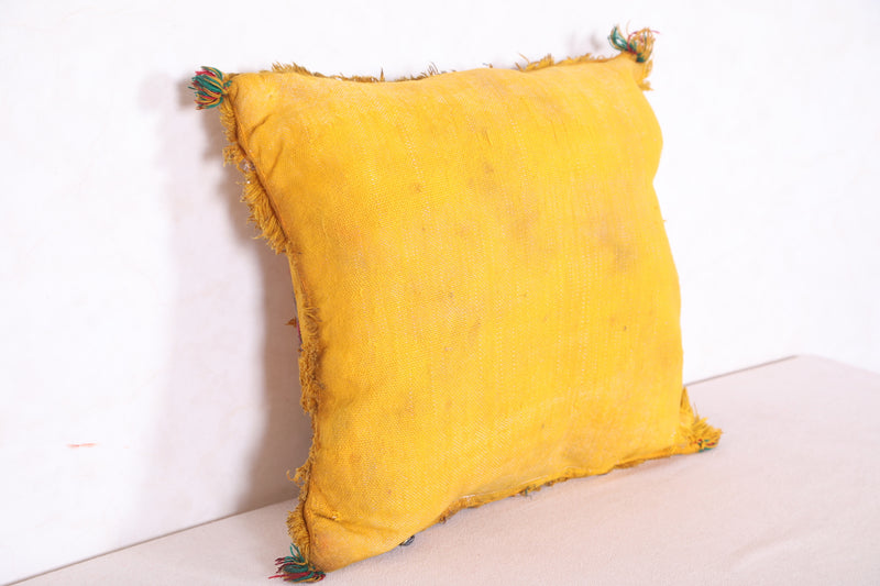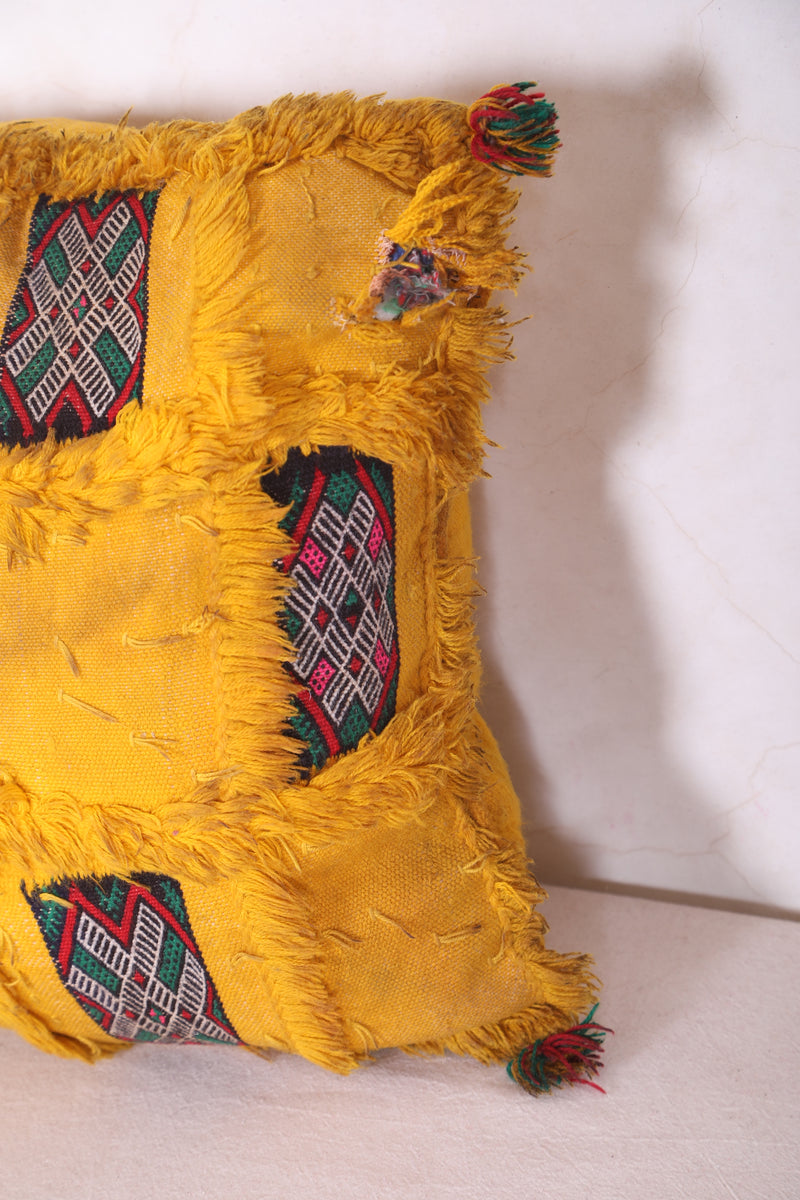 Vintage berber pillow yellow cover sqaure 47 CM X 48 CM = 18.5 INCHES X 18.8 INCHES