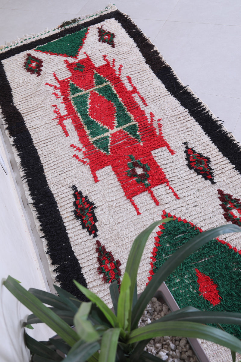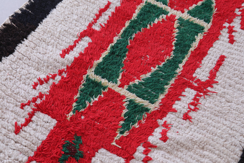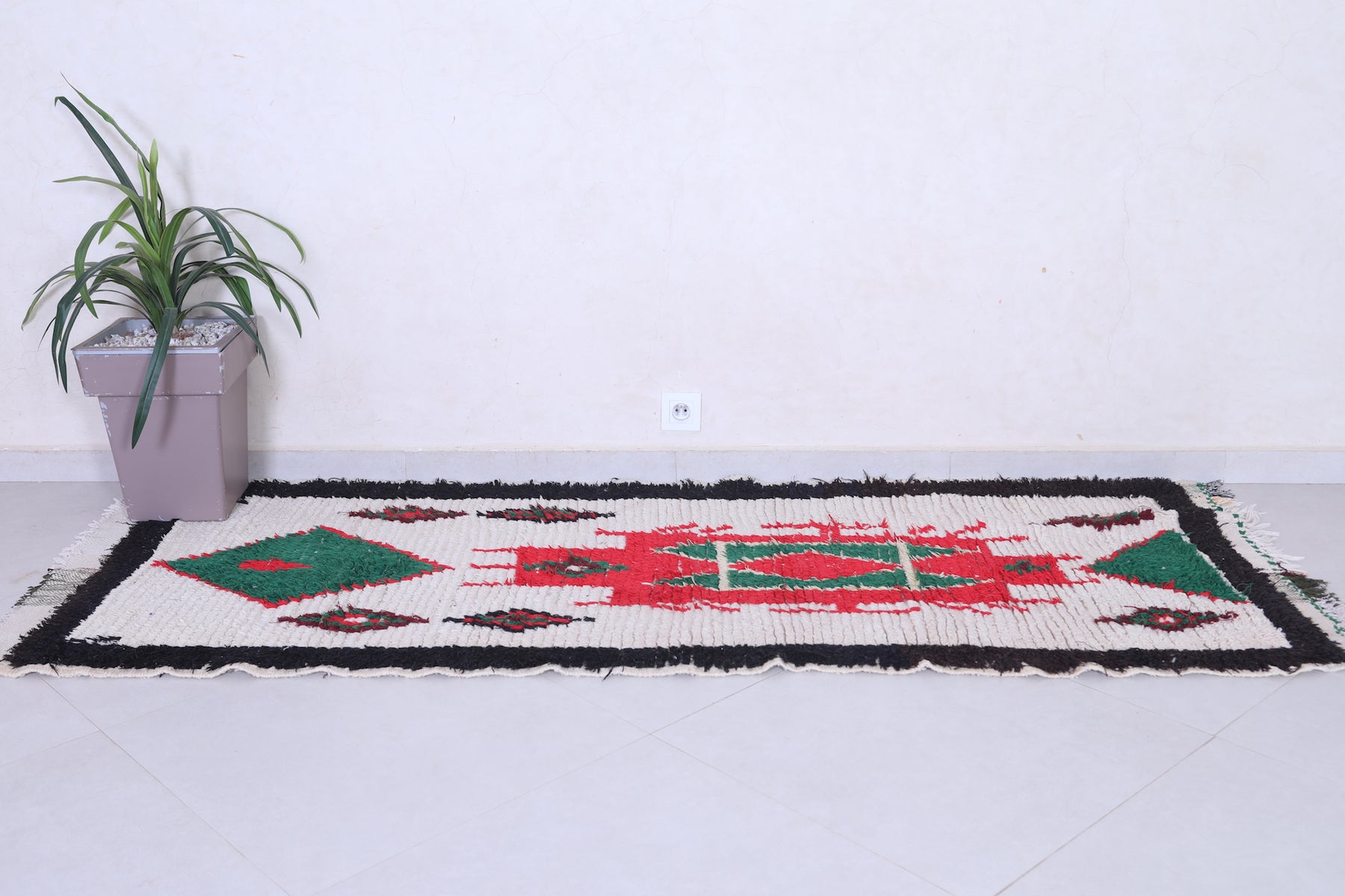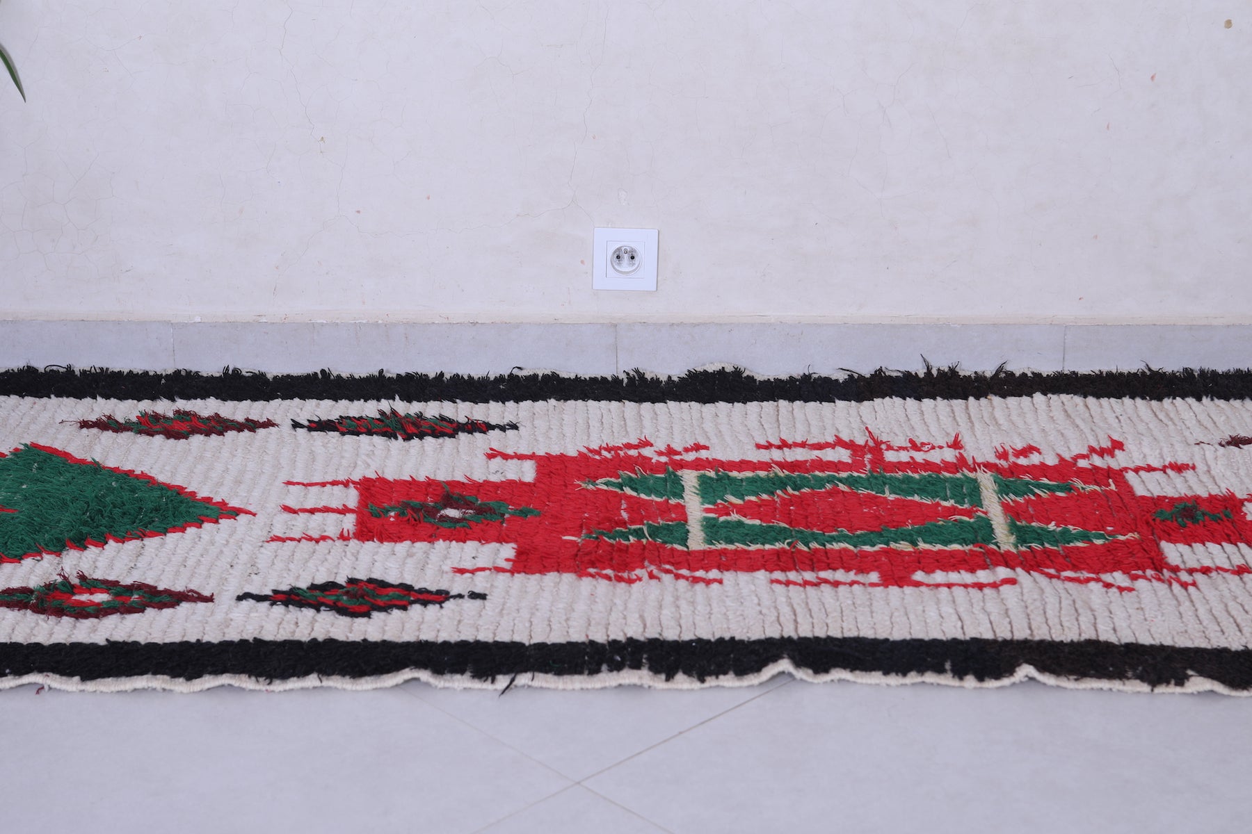 Add a statement touch to your space with this vintage Moroccan runner rug, featuring a bold geometric tribal design. At 2.8 x 7.6 FT, it's ideal for long, narrow spaces like hallways or entryways. The vivid red and green patterns on a neutral base bring culture, color, and authenticity to your interior.