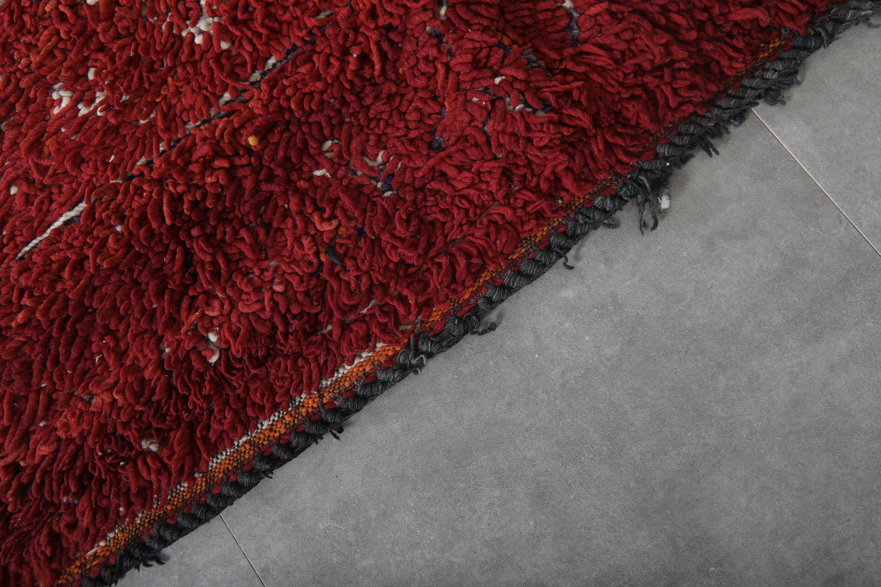 This 5.9 x 10.2 feet vintage Berber rug exudes timeless Moroccan charm with its deep red hue and subtle handmade details. Handwoven by skilled artisans, this piece boasts a rich texture that seamlessly complements both traditional and contemporary interiors. Its generous size makes it ideal for living rooms, dining areas, or bedrooms, creating a warm and inviting ambiance. Durable and stylish, this rug transforms any space into a cozy and sophisticated haven.