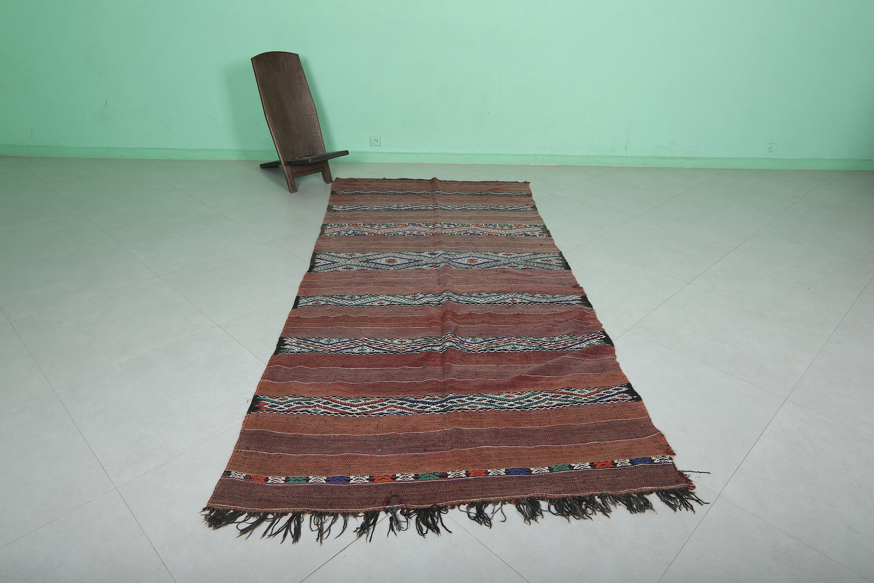 Vintage Berber Rug Runner - 4.2 FT × 9.2 FT | Moroccan Style - Handwoven Kilim