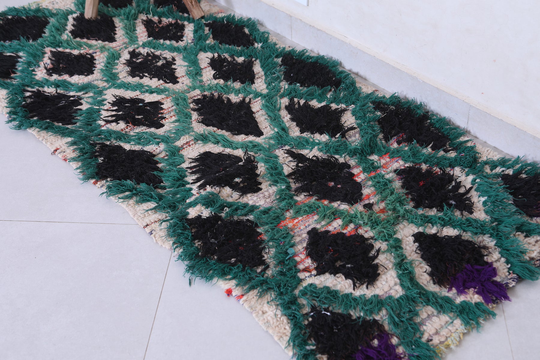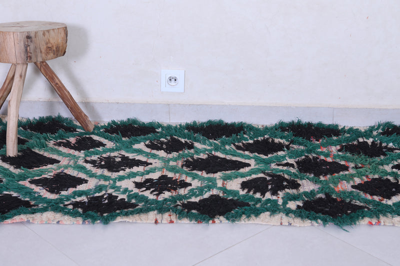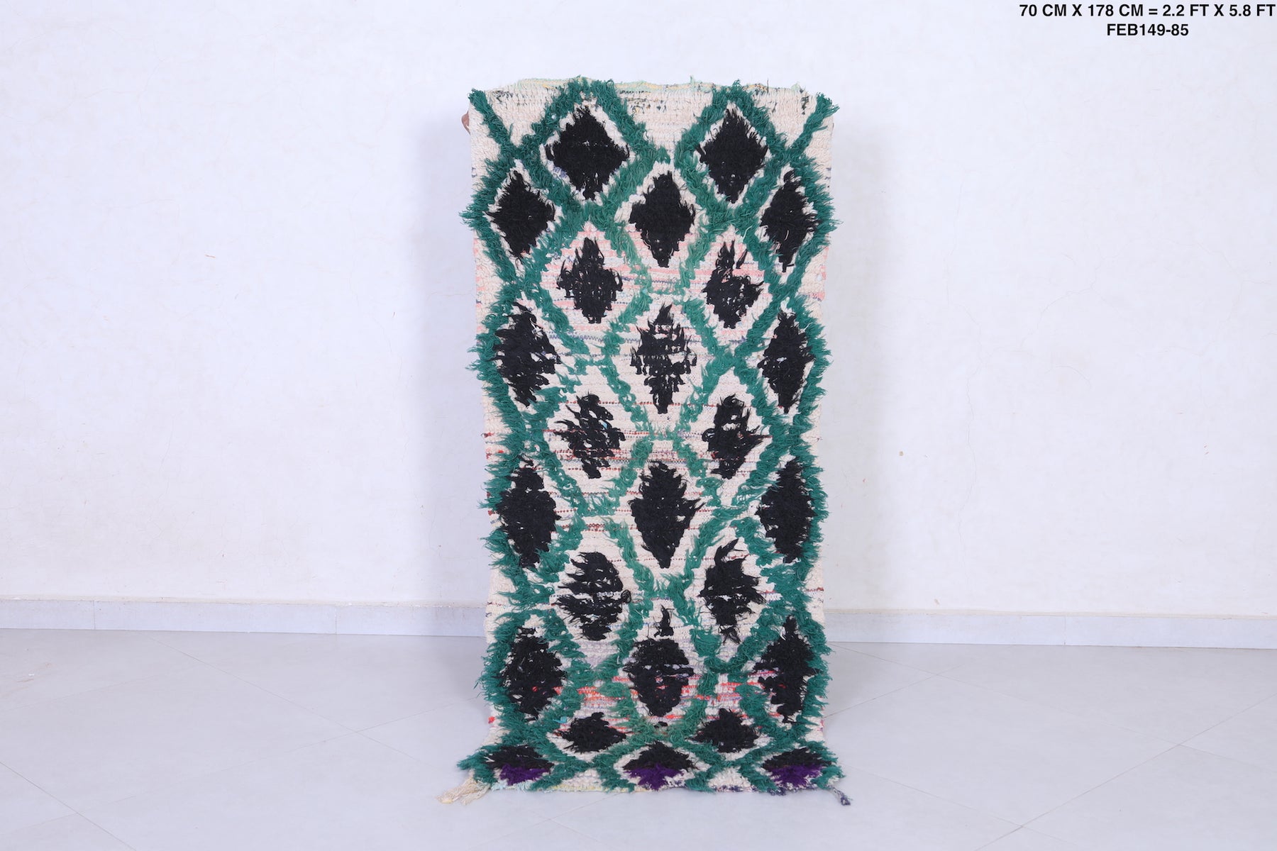 Bring bold elegance to your interiors with this vintage Berber runner rug. Handmade in Moroccan tradition, it showcases striking diamond patterns in deep emerald, black, and cream. Measuring 2.2 x 5.8 FT, it’s the perfect piece to elevate entryways, hallways, or any narrow space with bohemian flair.