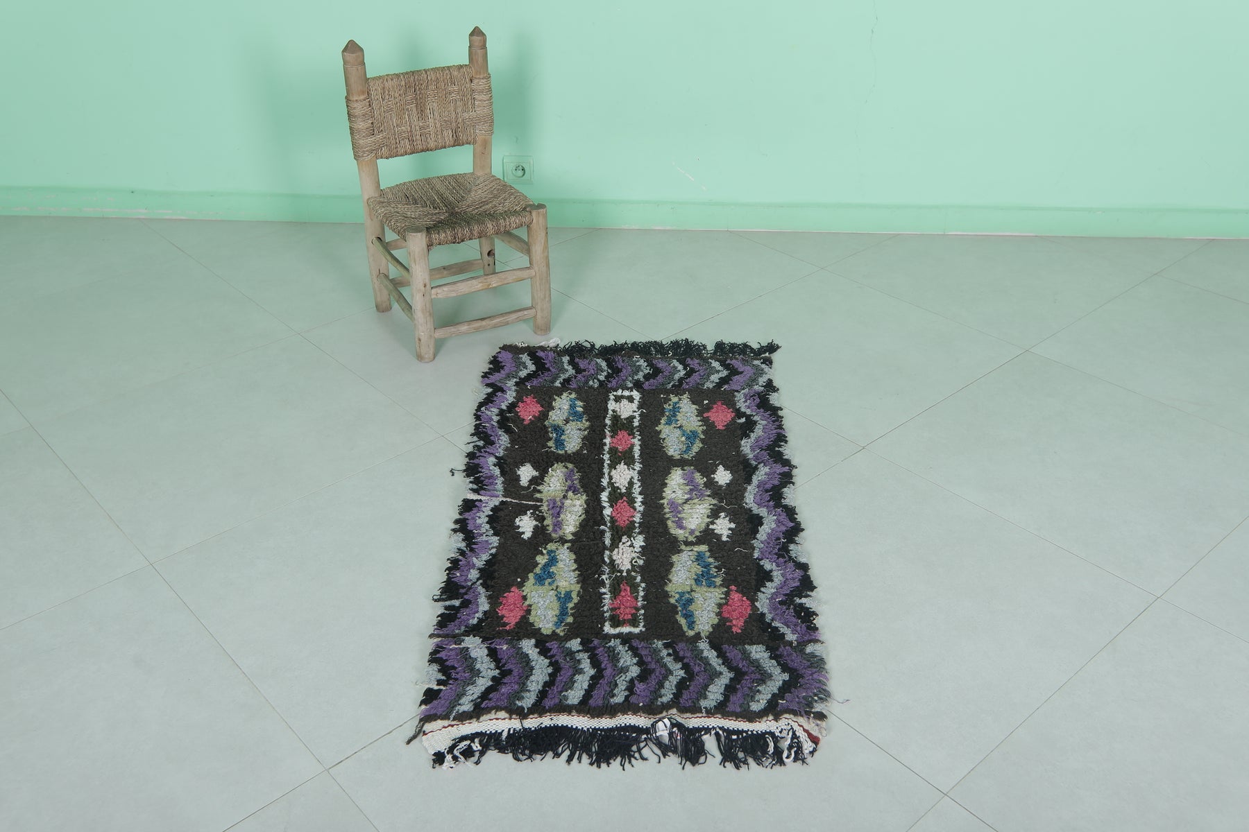 • Central tribal motifs with a bold, colorful border in classic Berber style.