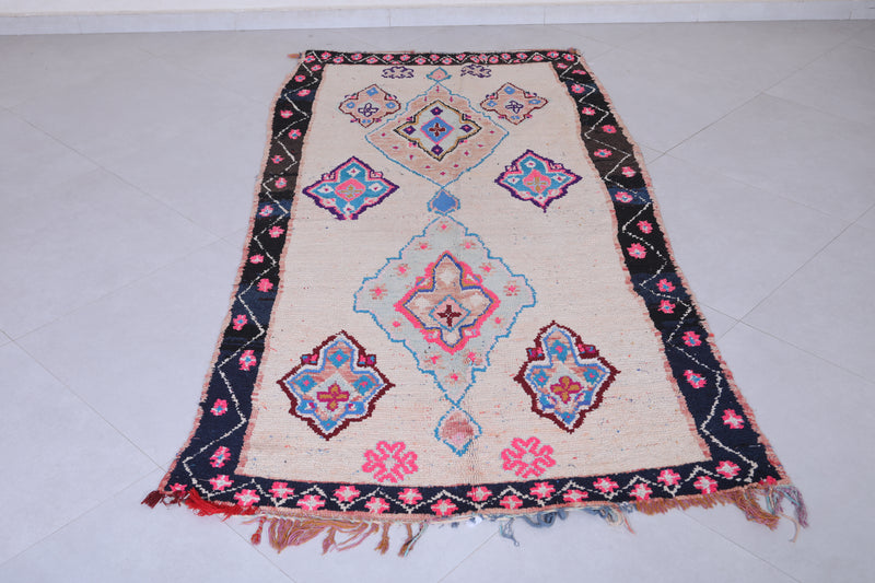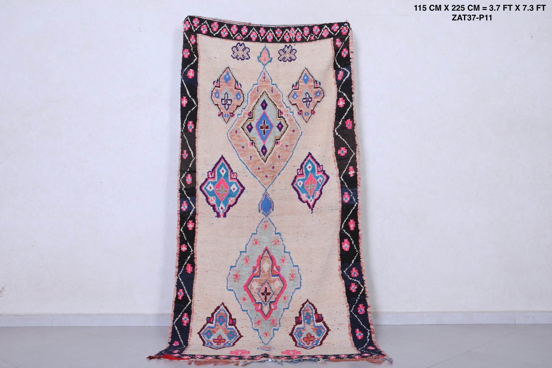 Vintage handmade moroccan berber rug 3.7 FT X 7.3 FT
