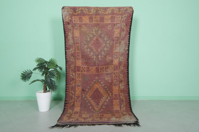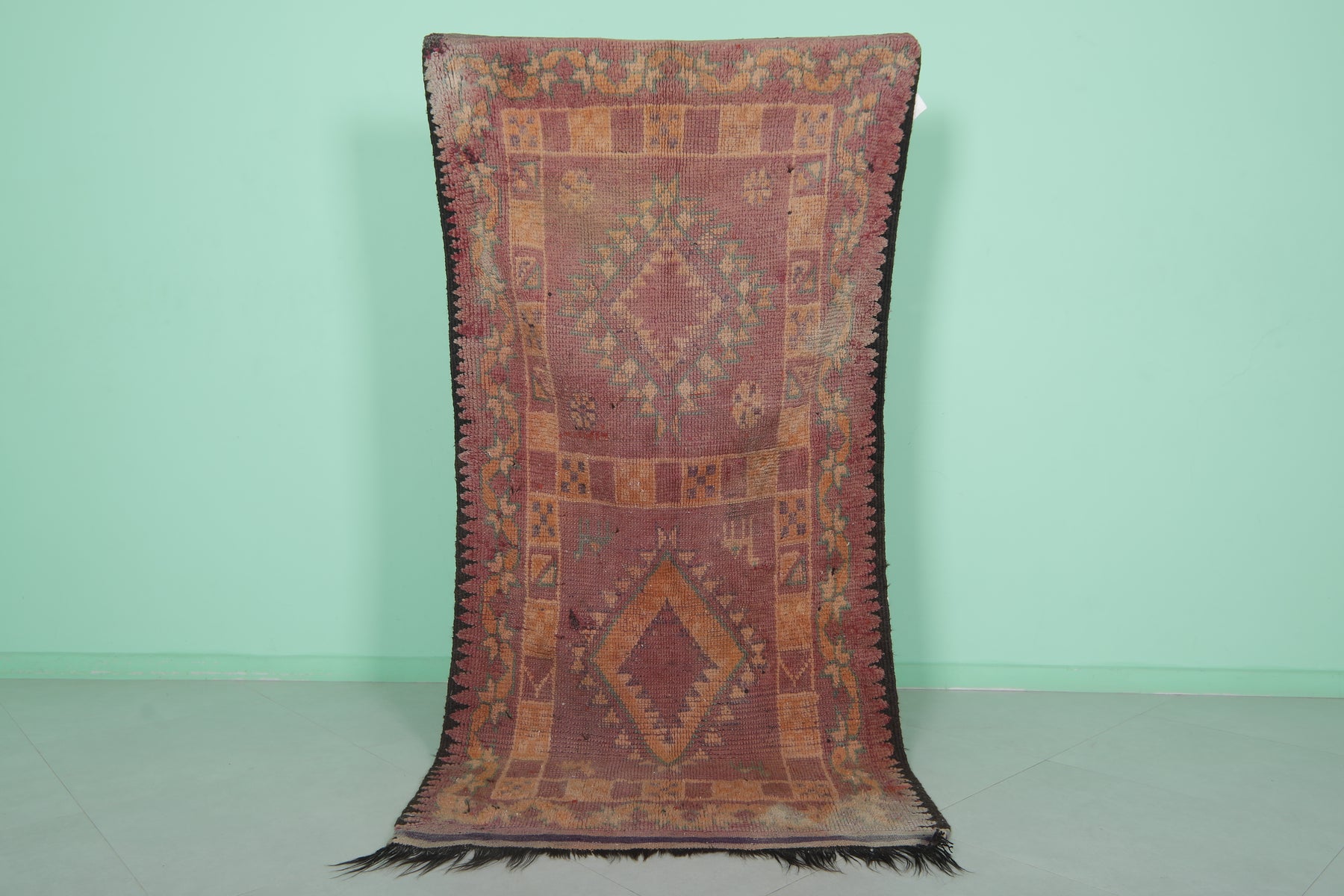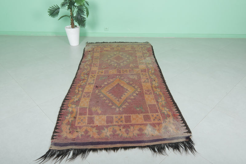Vintage Handmade Moroccan Berber rug 3.7 X 8.2 Feet