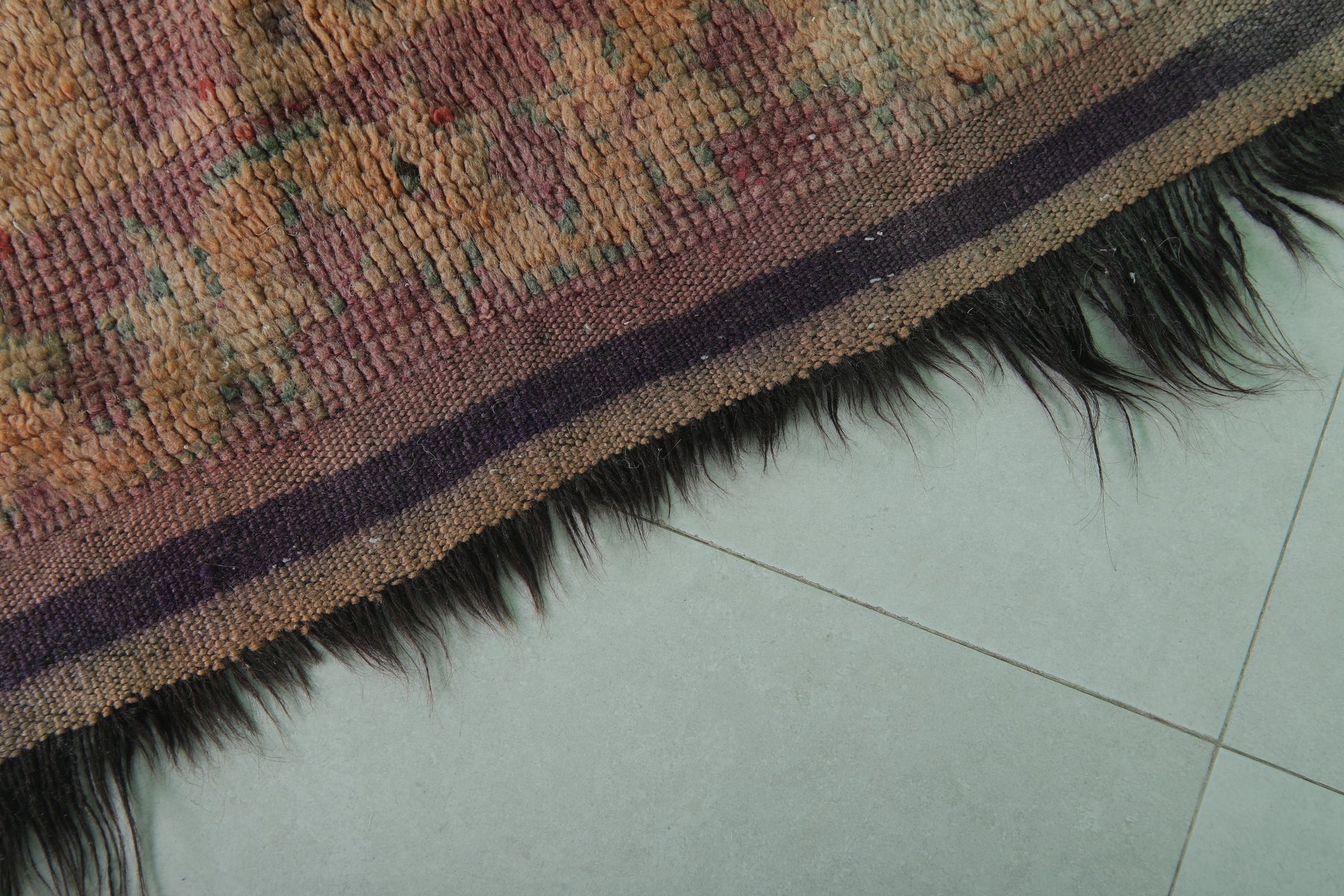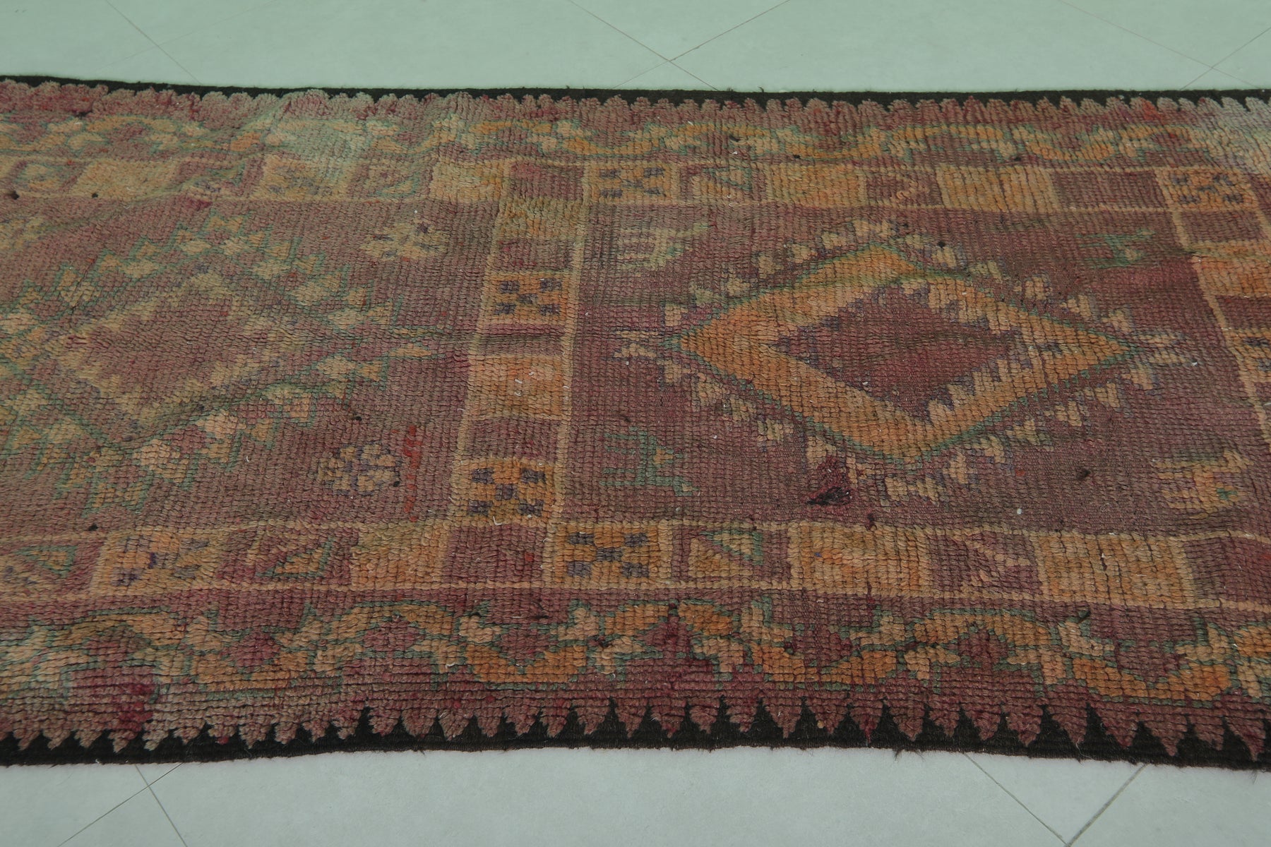 Infuse your home with warmth and heritage with this Vintage Handmade Moroccan Berber Rug, measuring 3.7 x 8.2 feet. Handwoven by skilled artisans in Morocco, this one-of-a-kind runner features rich earthy tones and symbolic Berber motifs that tell a story of tradition and culture. Its soft texture and vintage appeal make it the perfect accent for hallways, living rooms, or entryways seeking a rustic, timeless vibe.